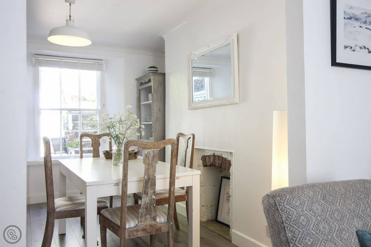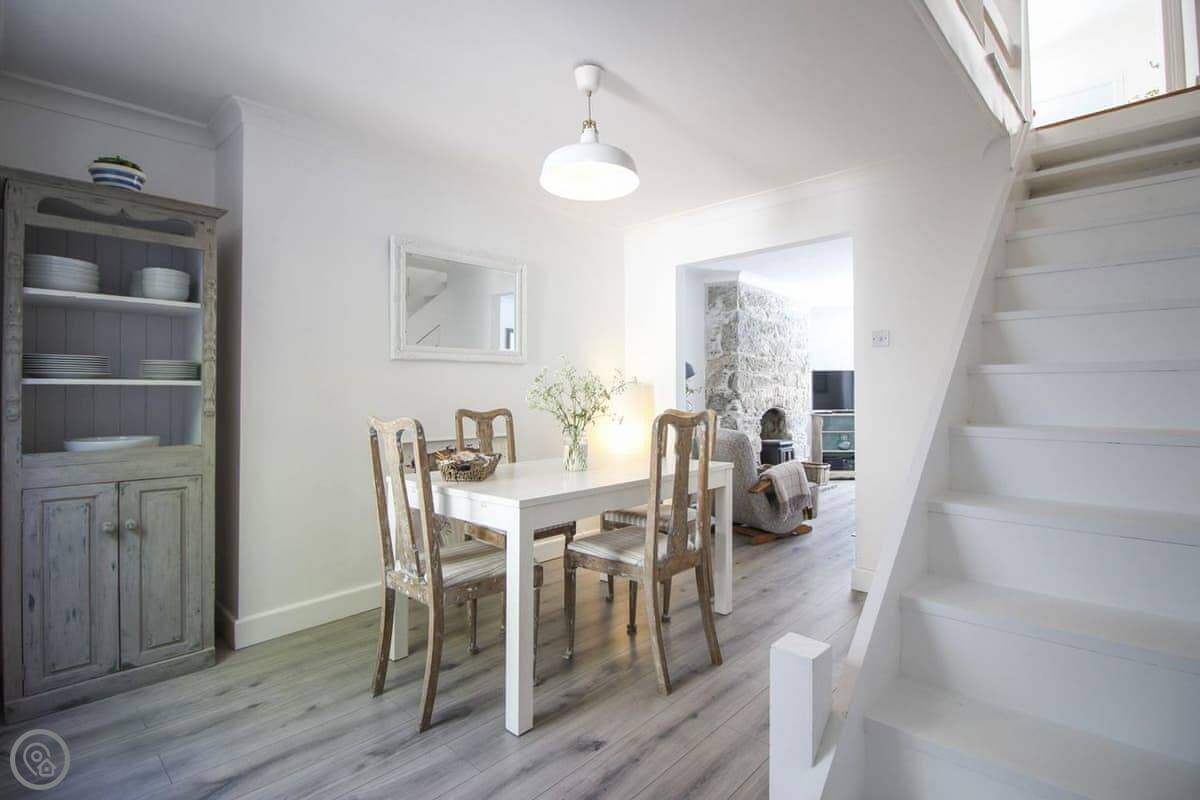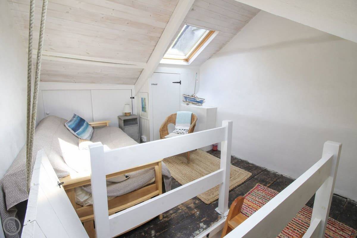 This lovely cottage is set out over three floors. Trevennen cottage is full of character with a large stone fireplace in the living room with an inset wood burner to keep you cosy and warm on even the wildest Cornish stormy nights. There is a dining room to the rear with quite a small, but functional galley kitchen. To the rear is a pretty little courtyard garden which is a real sun trap. There is access via a set of steep stairs up to the top garden where you can sit and enjoy the views over the river. Upstairs on the first floor are two bedrooms and the family bathroom on the second floor there is a third bedroom which is access by a steep ladder.