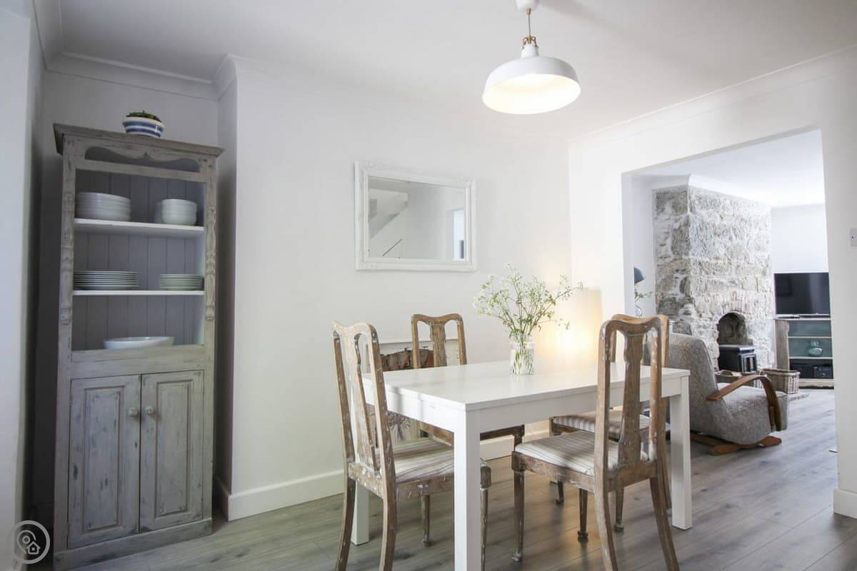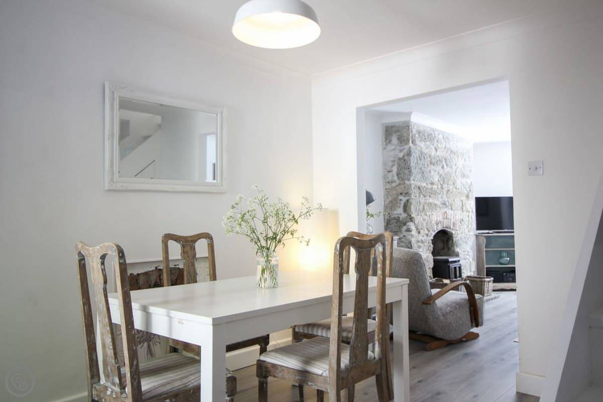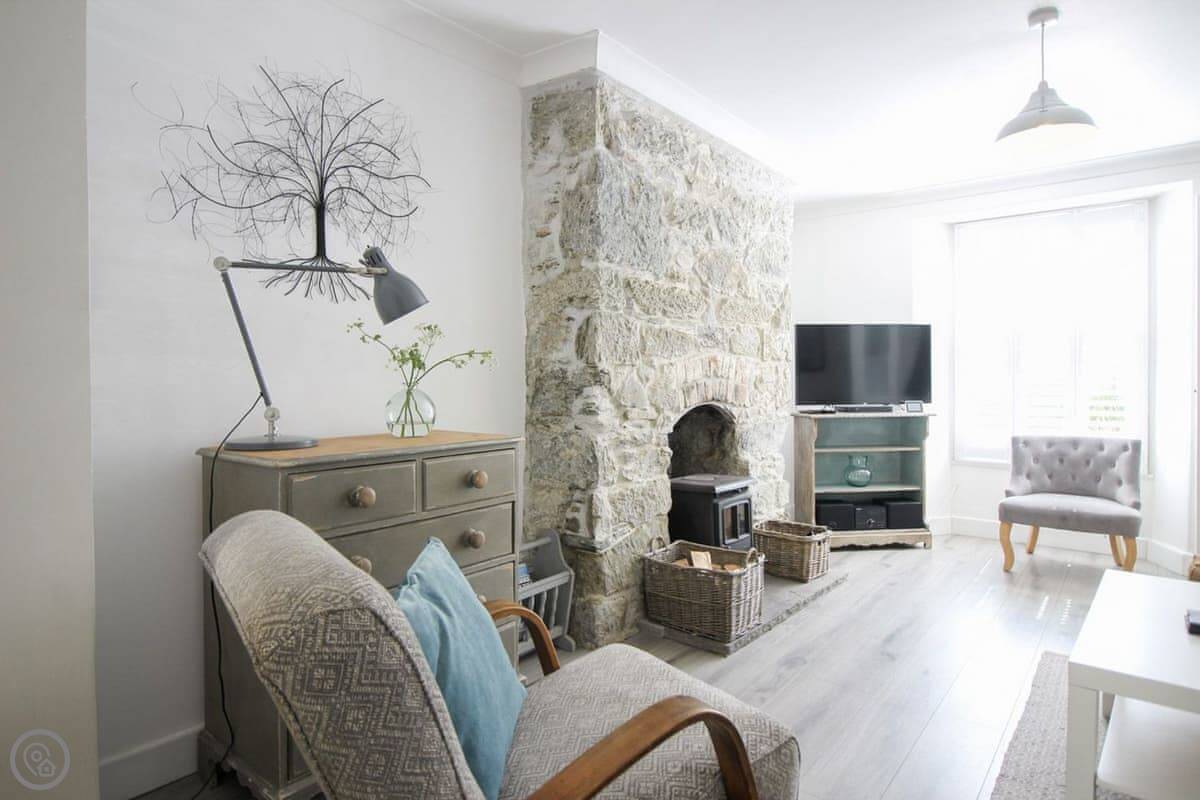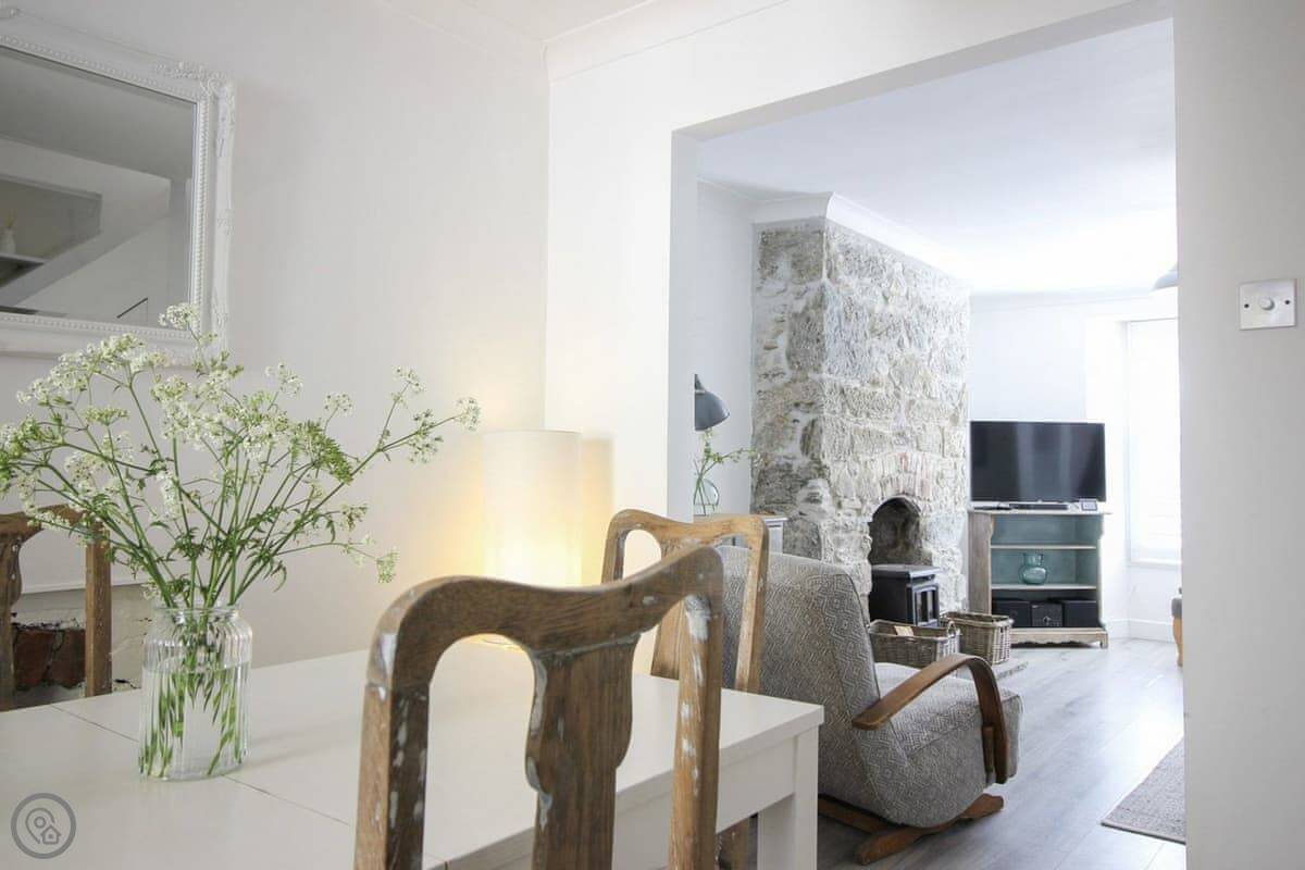 This lovely cottage is set out over three floors. Trevennen cottage is full of character with a large stone fireplace in the living room with an inset wood burner to keep you cosy and warm on even the wildest Cornish stormy nights. There is a dining room to the rear with quite a small, but functional galley kitchen. To the rear is a pretty little courtyard garden which is a real sun trap. There is access via a set of steep stairs up to the top garden where you can sit and enjoy the views over the river. Upstairs on the first floor are two bedrooms and the family bathroom on the second floor there is a third bedroom which is access by a steep ladder.