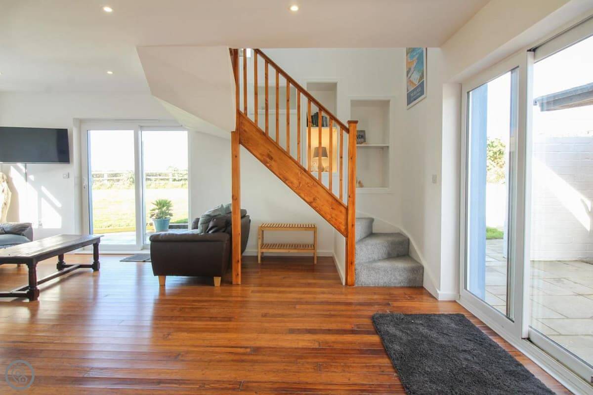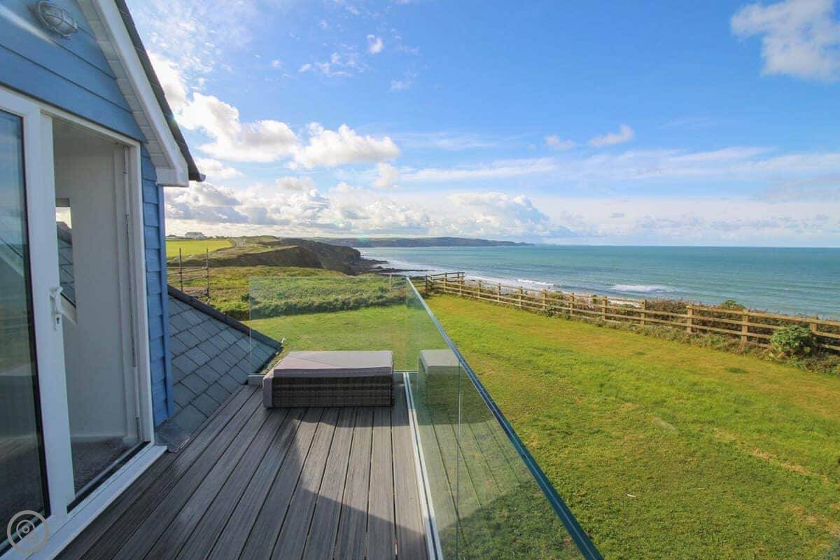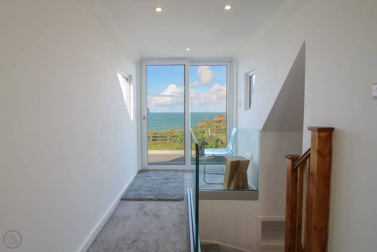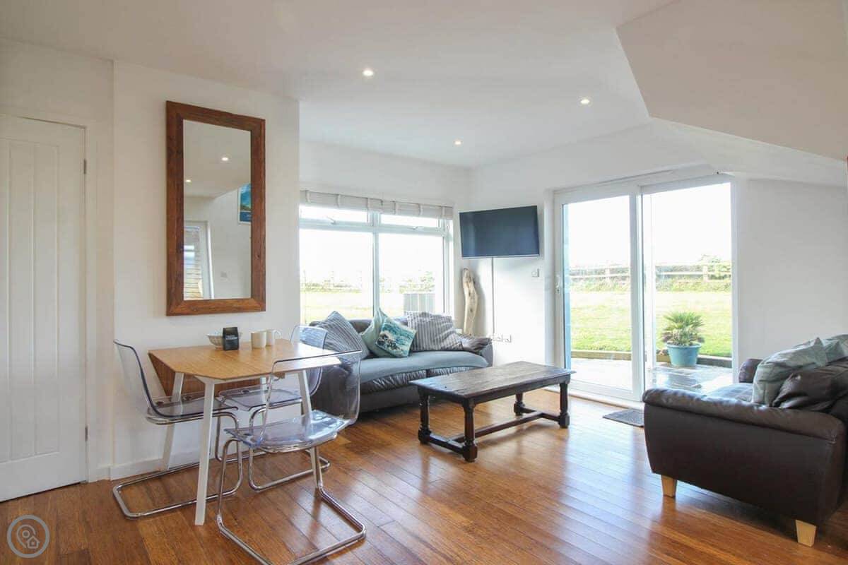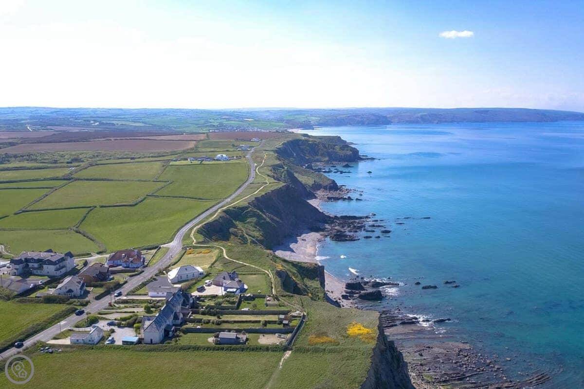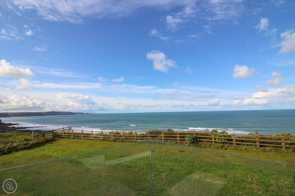 You've got your own bit of garden. There's a gate from it that leads straight onto the coastal footpath. You can walk down a cliff path to Upton beach from there. It's a shingle beach with rock pools. When the tide's out, there's some sand. It's not a lifeguarded beach, but people surf there. For safer swimming, Widemouth Bay or Summerleaze in Bude are both close. They're sandy.