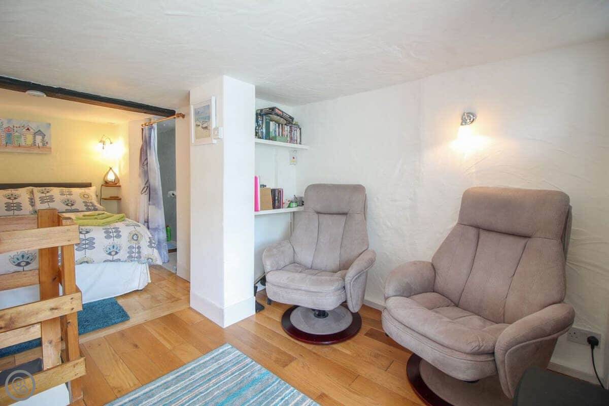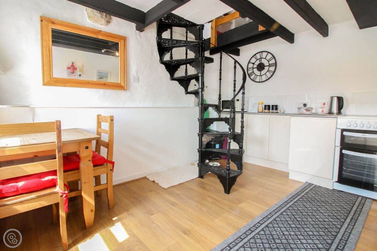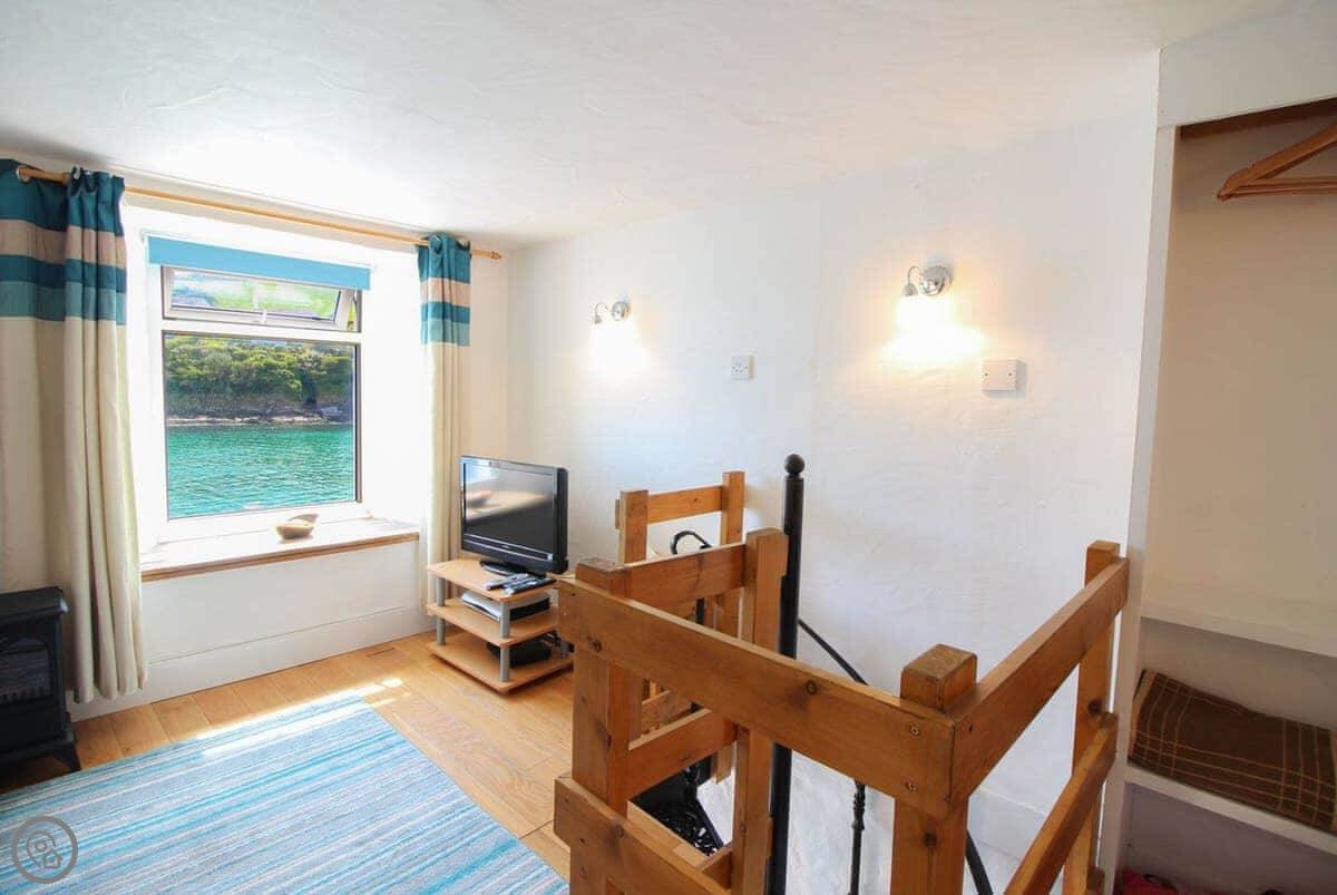 Chy Rani is a traditional fishing cottage perched high on the rocks above Portmellon beach, with a kitchen dining area downstairs and an open plan living area, bedroom and en-suite accessed via a spiral staircase on the floor above with stunning views of the beach, sea and cove. The owners take great pride in supplying their guests with a perfect, convivial environment, from arrival treats for any guest dogs, home baked welcome cakes and even packing a beach bag just in case you have left something behind! One thing is certain this will be a memorable holiday destination for all the right reasons!