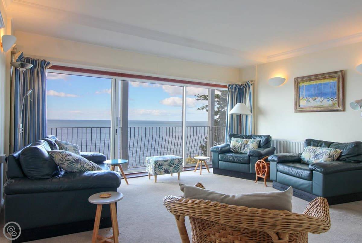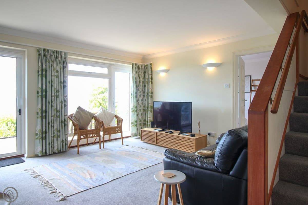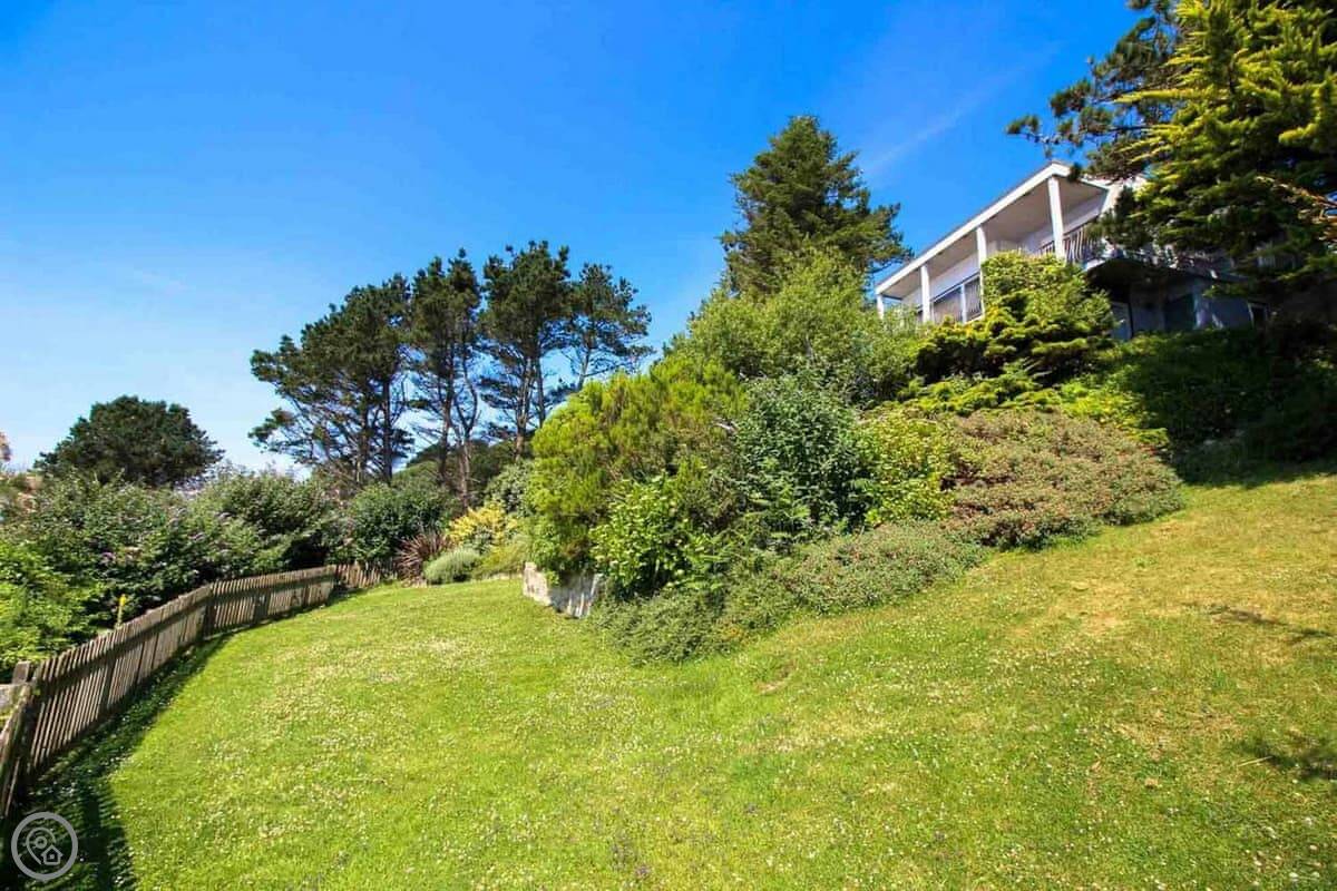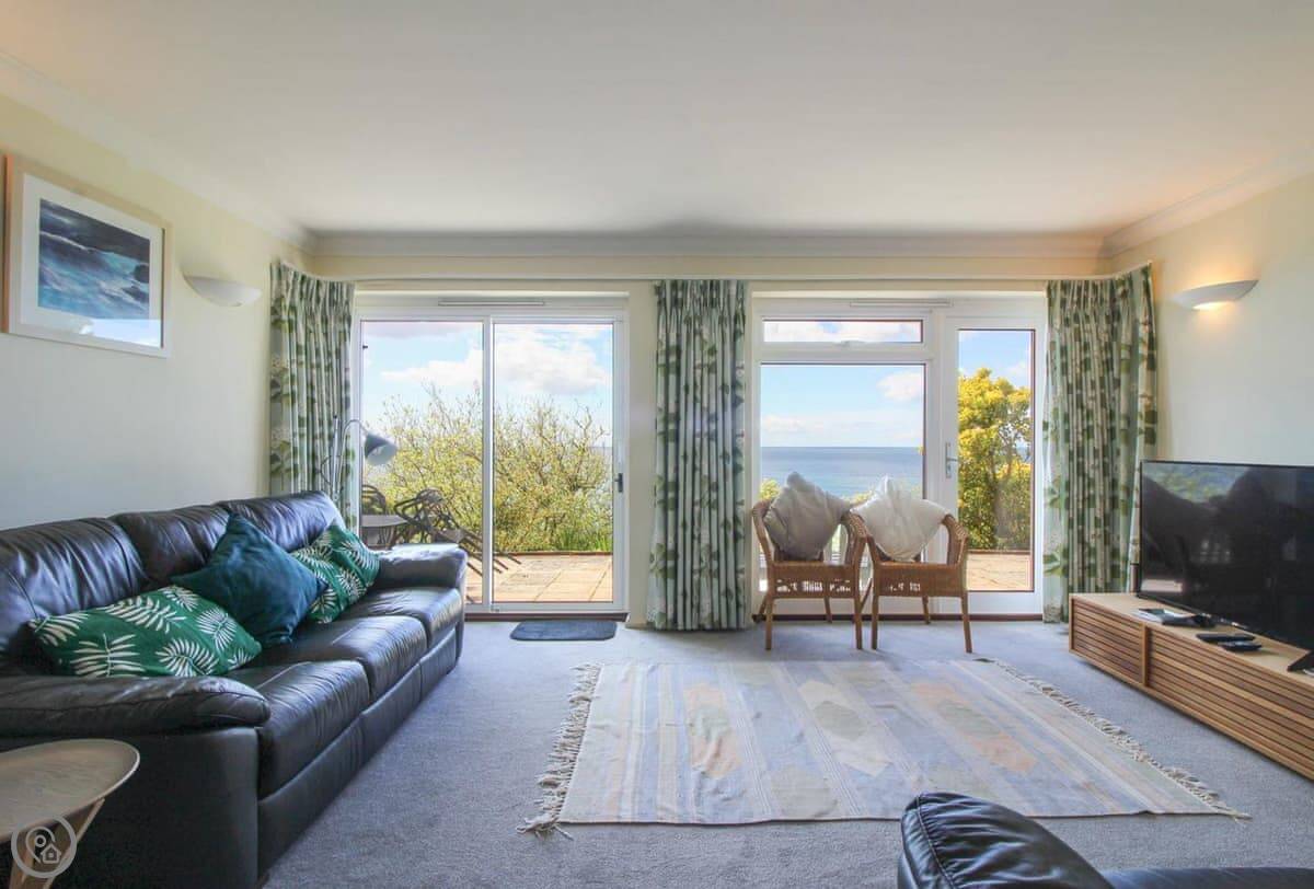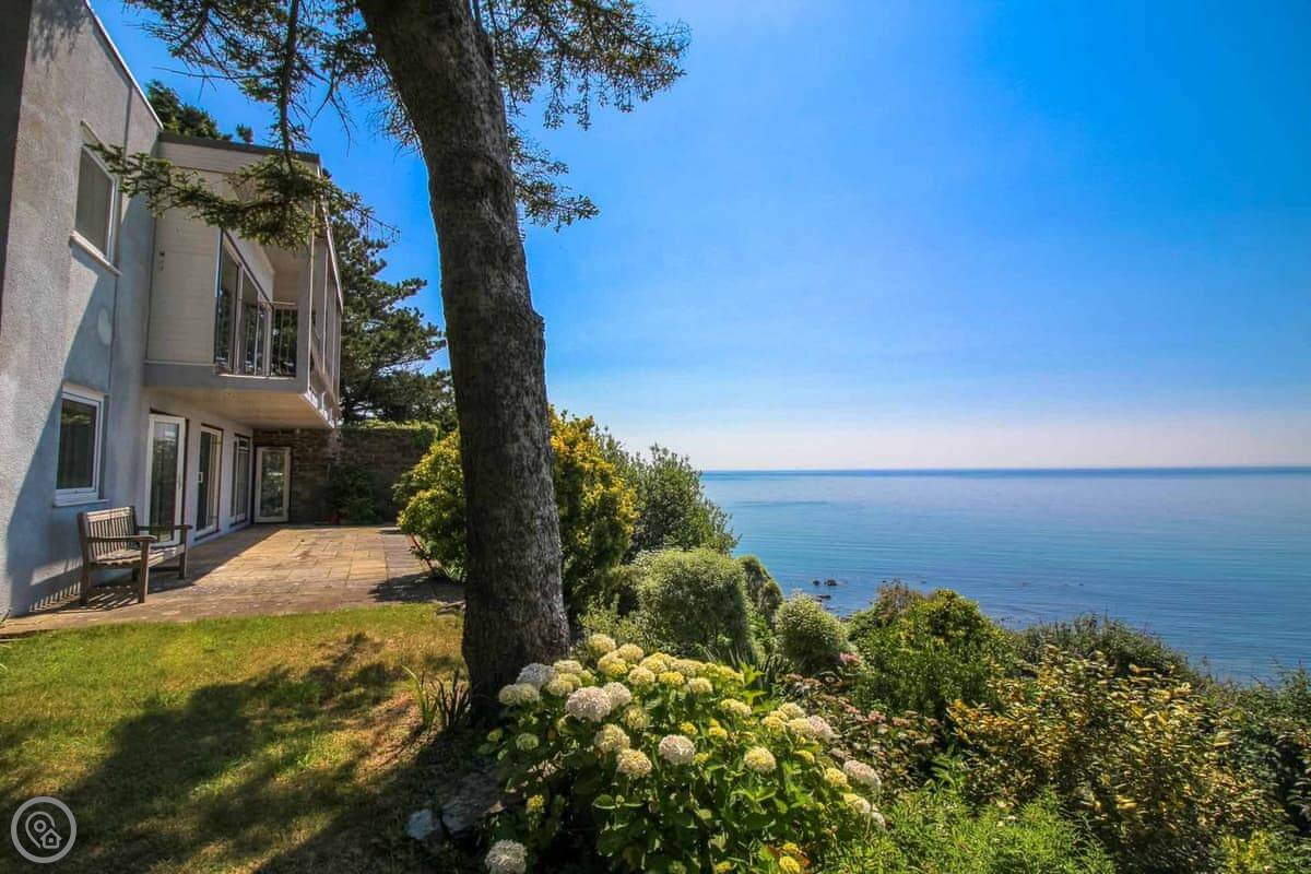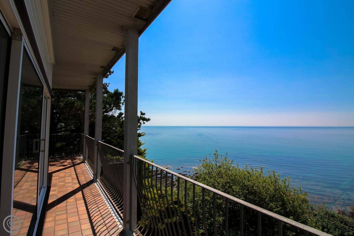 The main thing about it is the view. You get a full, wide sea view across to Looe Island and beyond. The house faces south, so the garden and balconies get the sun all day. It's quite private.