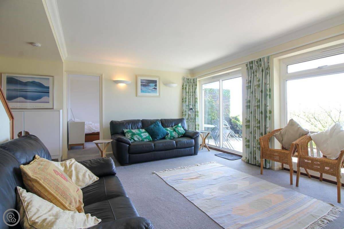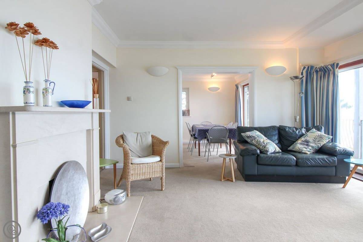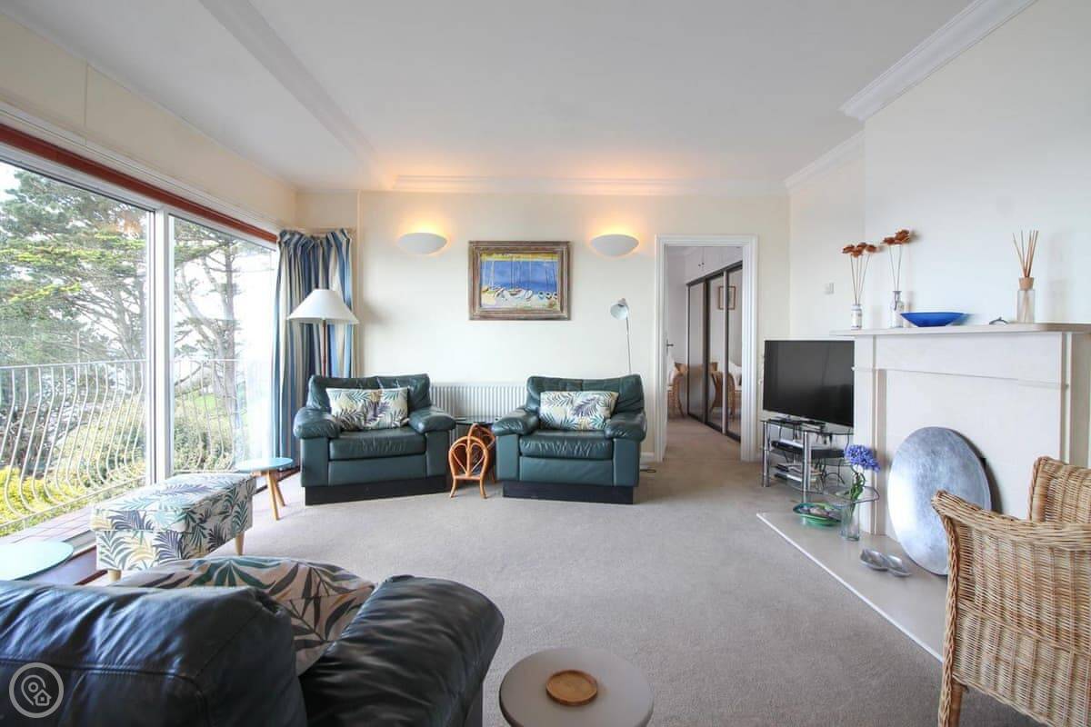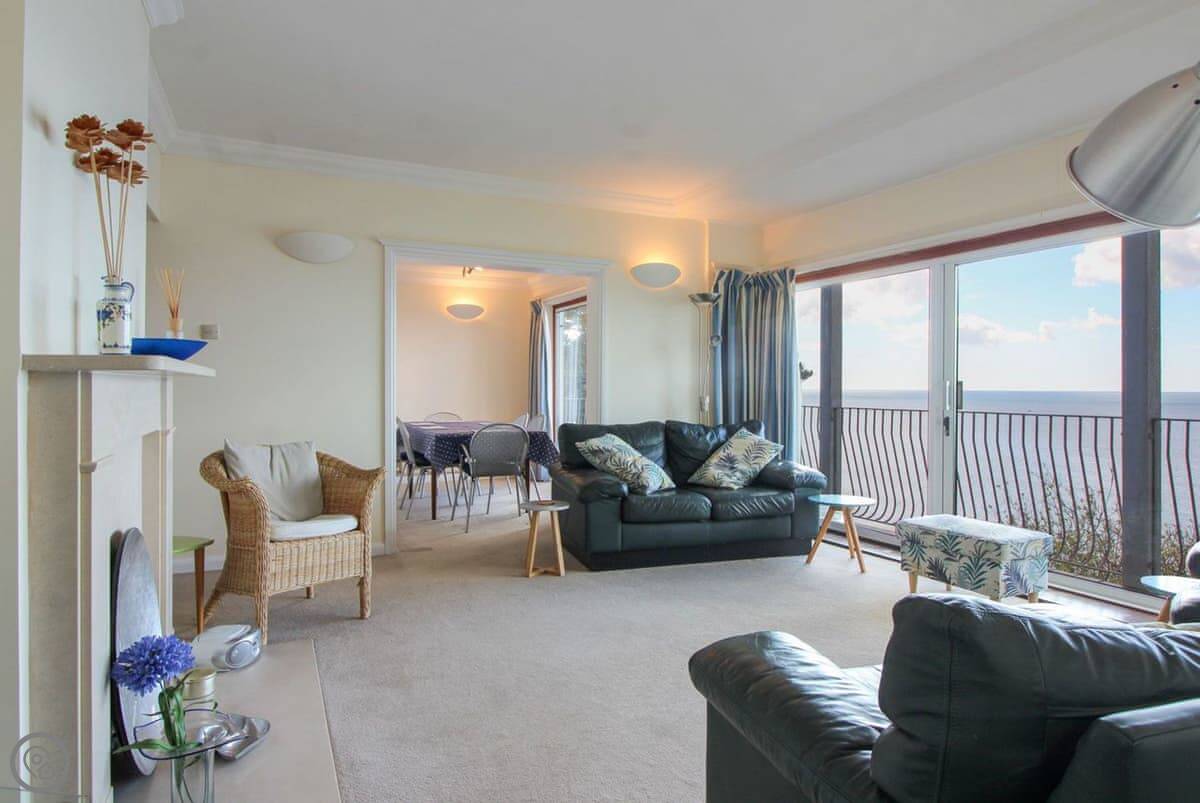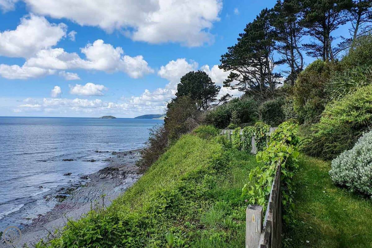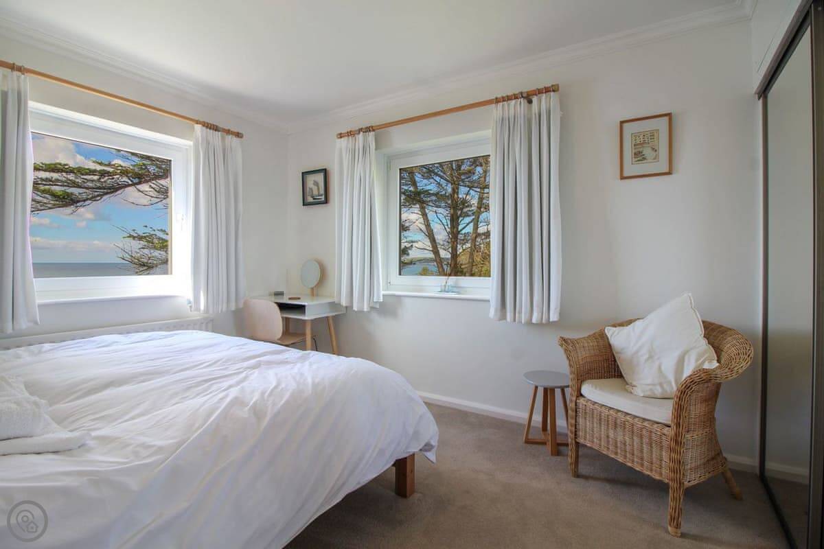 The main thing about it is the view. You get a full, wide sea view across to Looe Island and beyond. The house faces south, so the garden and balconies get the sun all day. It's quite private.