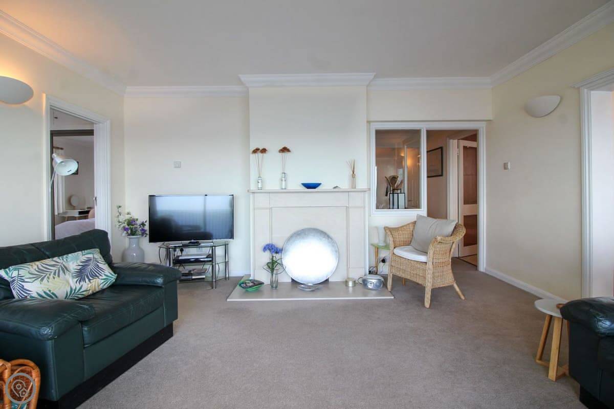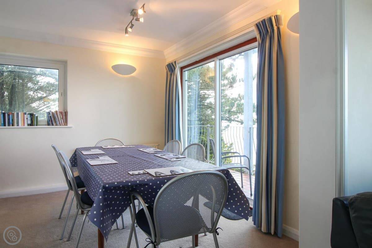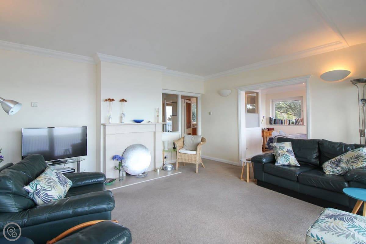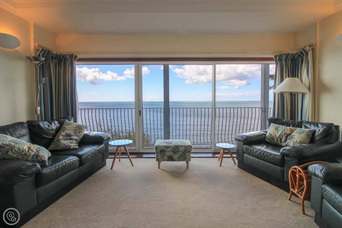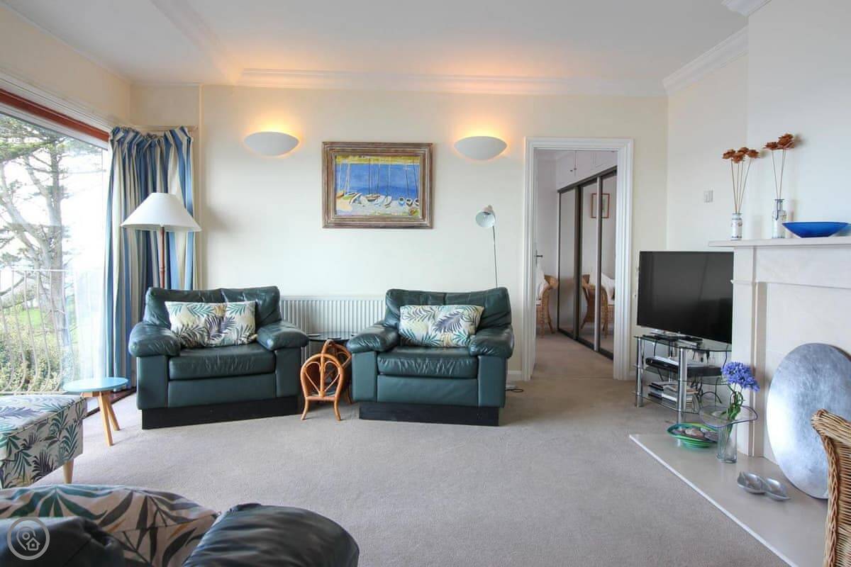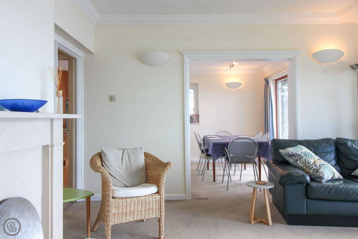 The main thing about it is the view. You get a full, wide sea view across to Looe Island and beyond. The house faces south, so the garden and balconies get the sun all day. It's quite private.