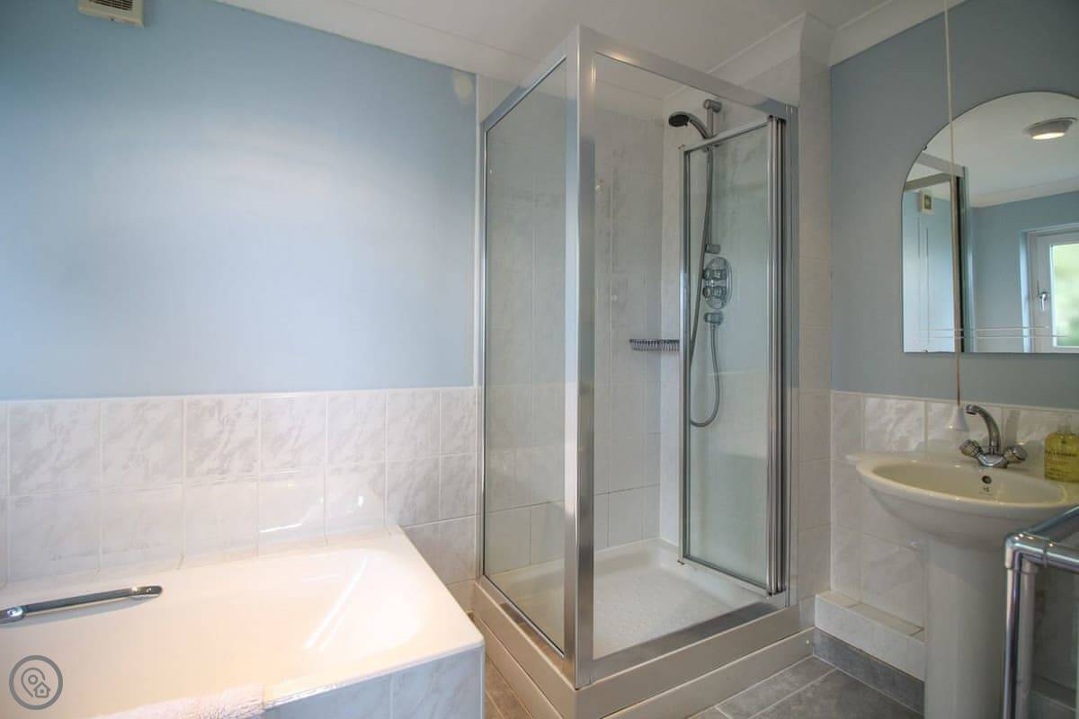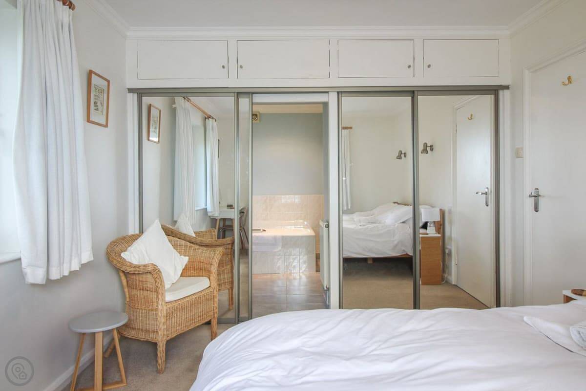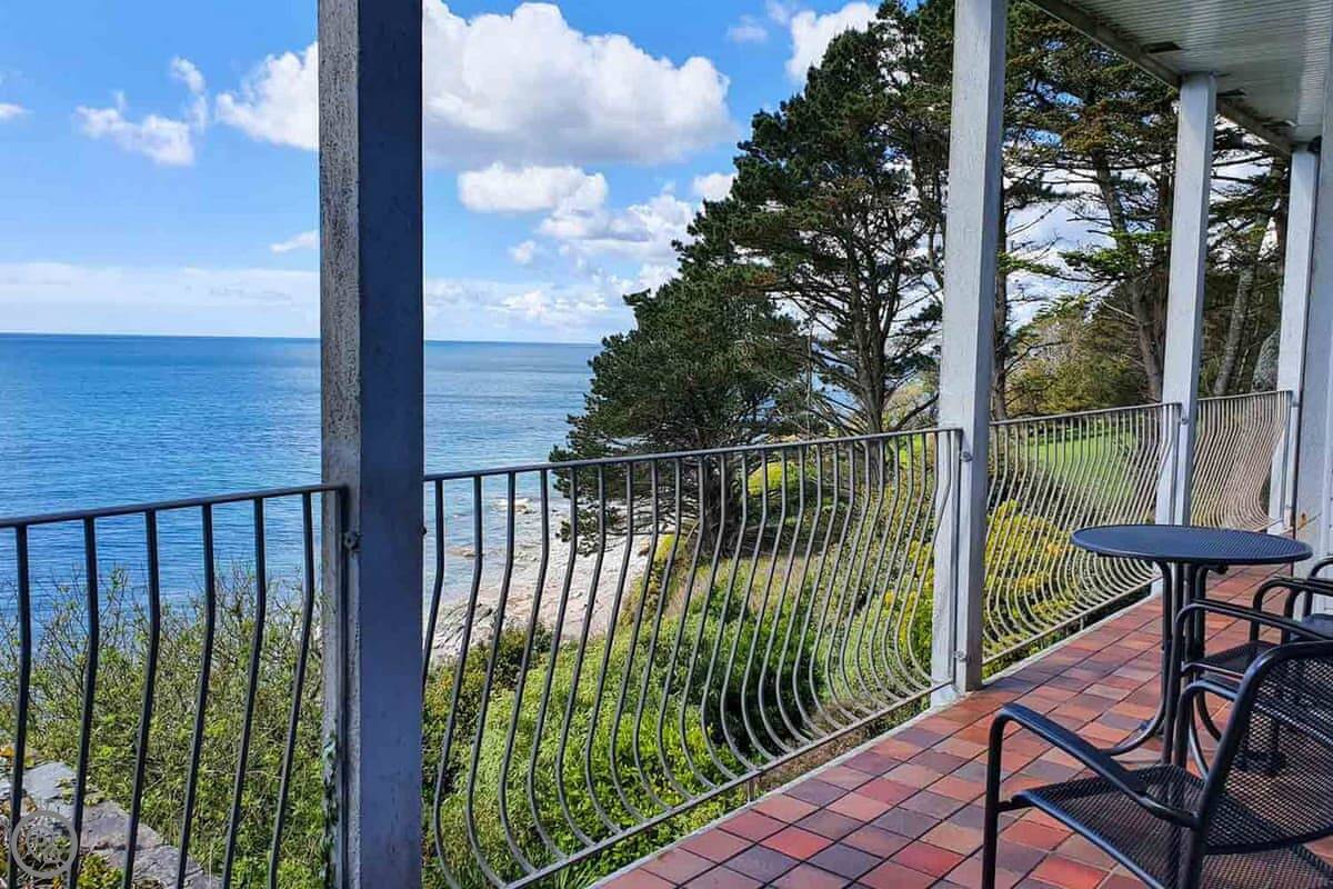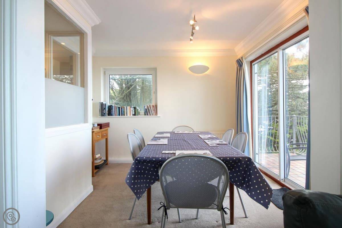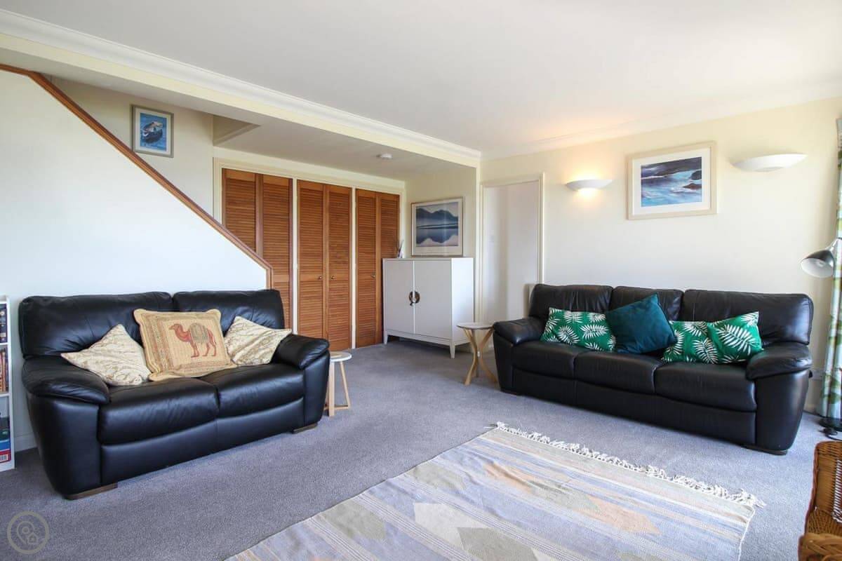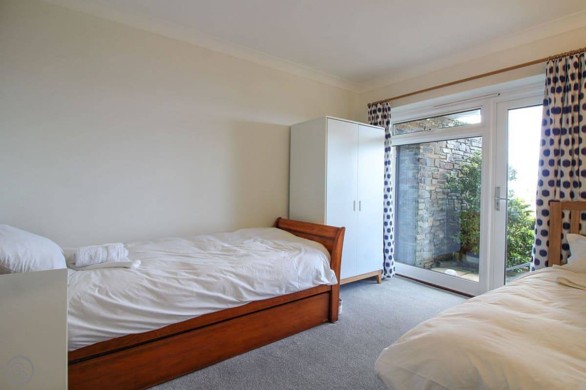 The main thing about it is the view. You get a full, wide sea view across to Looe Island and beyond. The house faces south, so the garden and balconies get the sun all day. It's quite private.