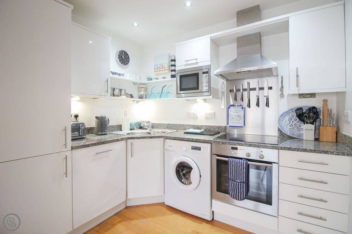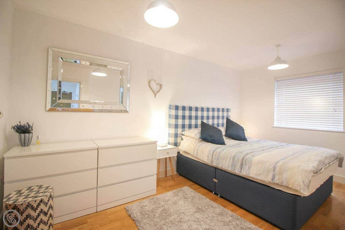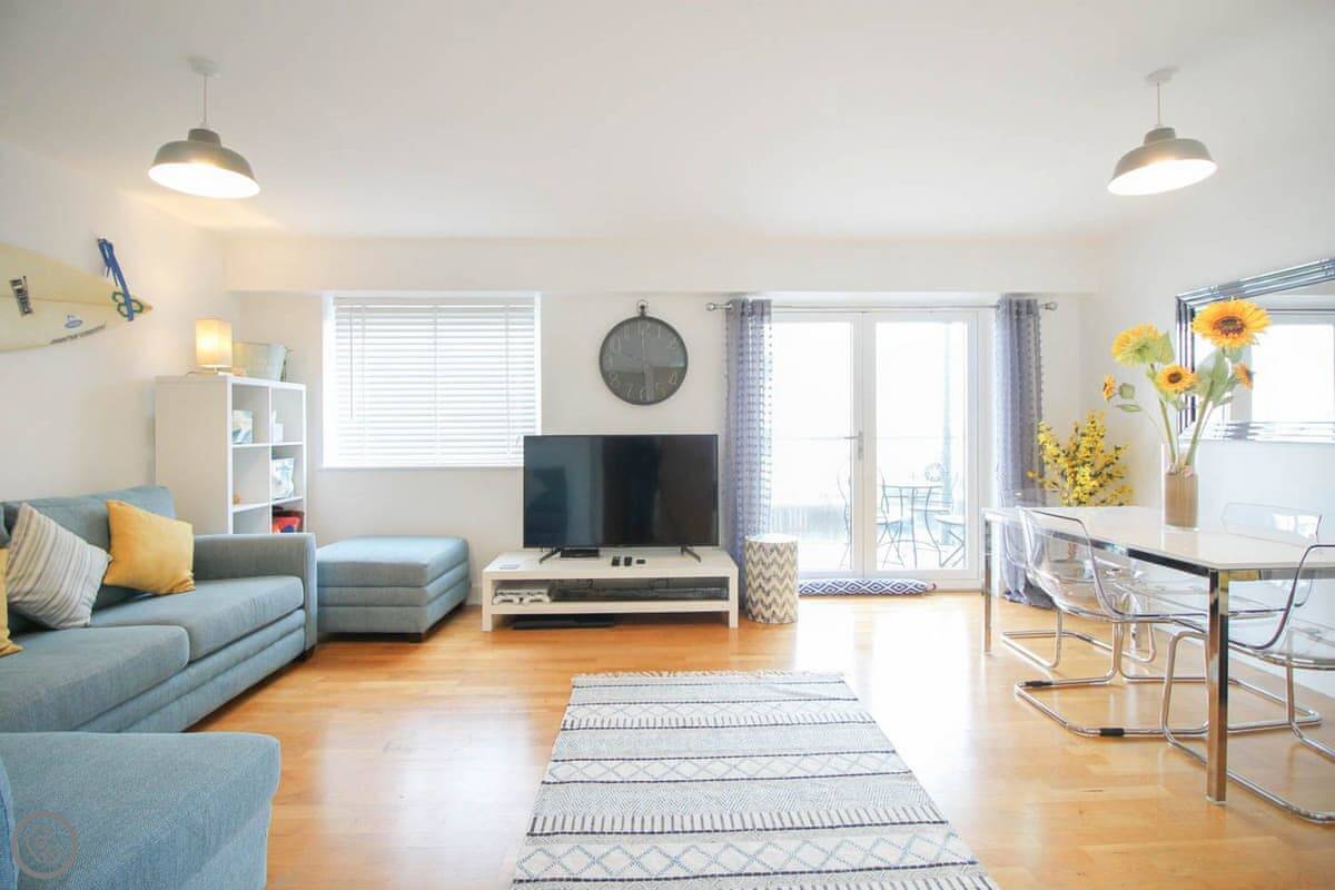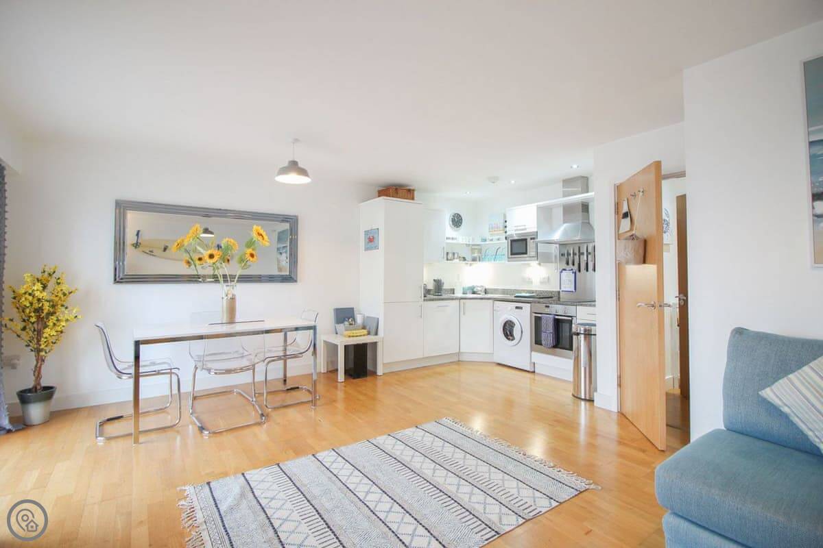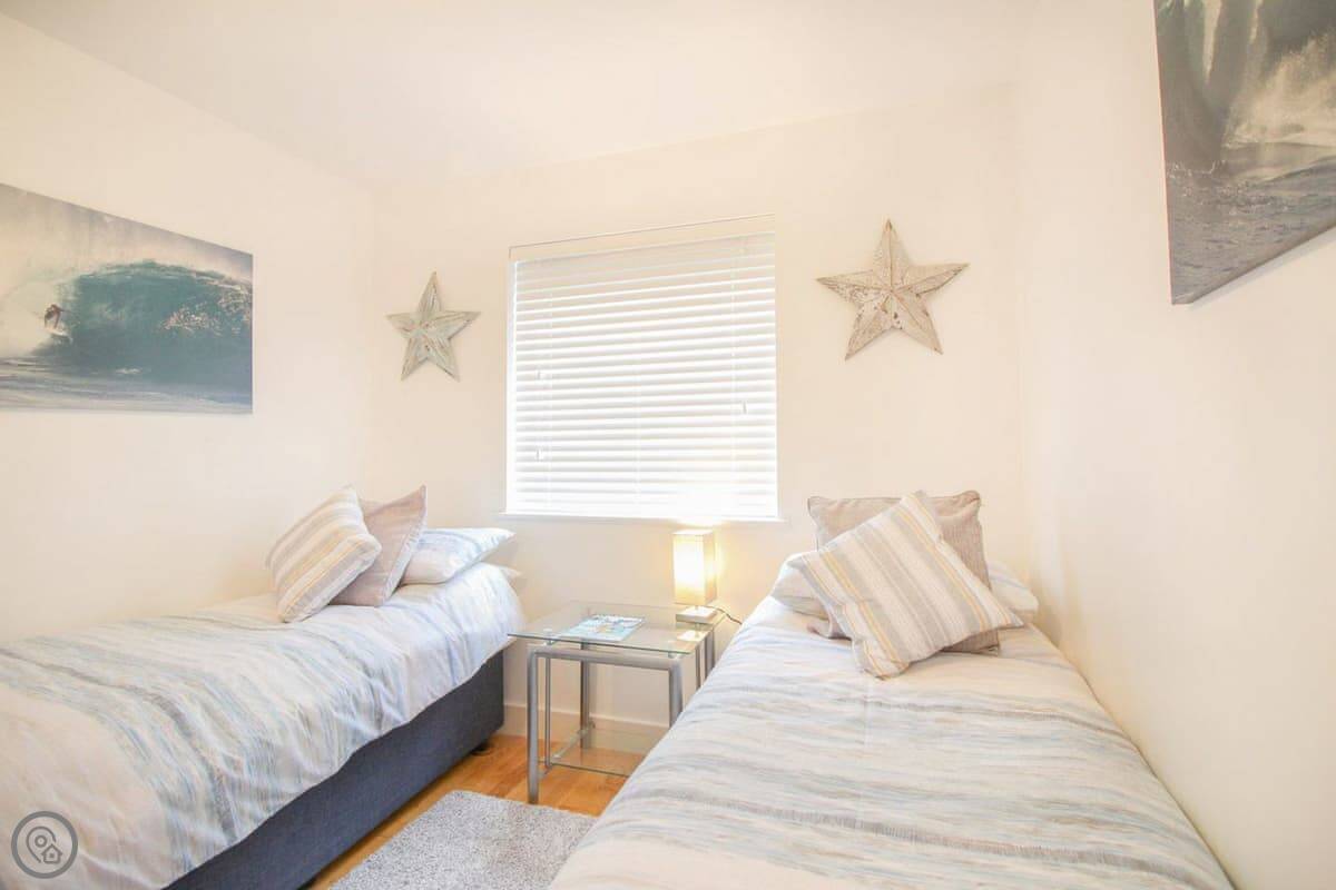 Oceans 9 is an apartment on the Pentire headland in Newquay. It's a ground floor place, sleeps four, with two bedrooms and two bathrooms. Both bedrooms are en-suite. It's got a 4 Star rating, so it's well-finished. There's underfloor heating.