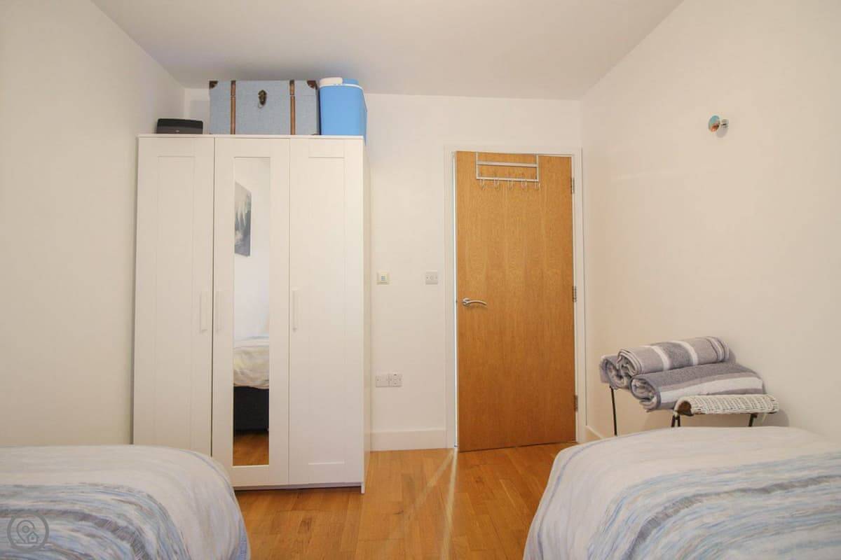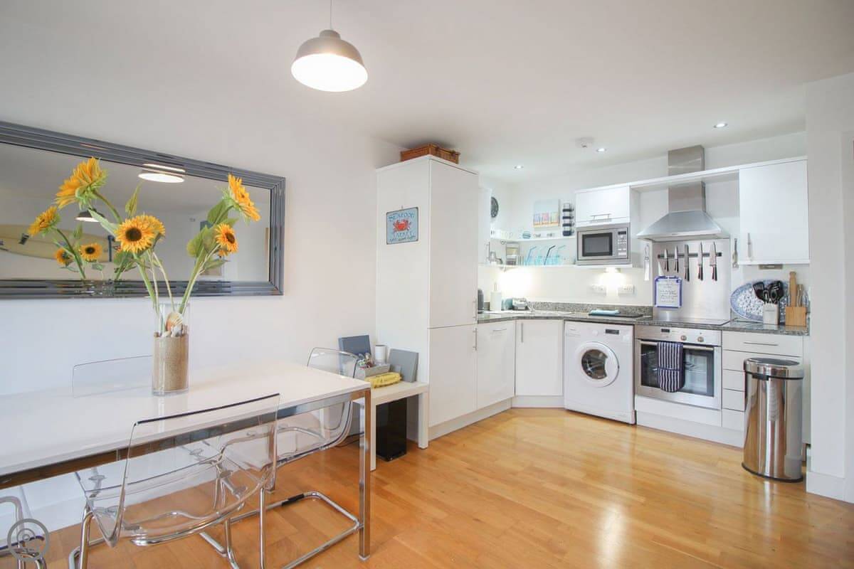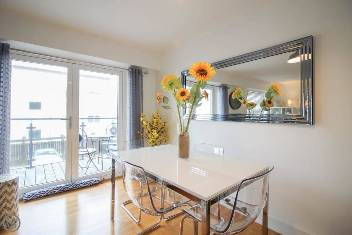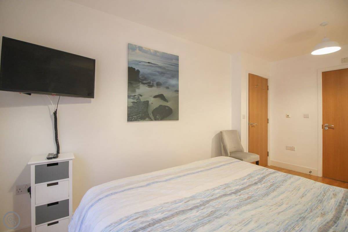 Oceans 9 is an apartment on the Pentire headland in Newquay. It's a ground floor place, sleeps four, with two bedrooms and two bathrooms. Both bedrooms are en-suite. It's got a 4 Star rating, so it's well-finished. There's underfloor heating.