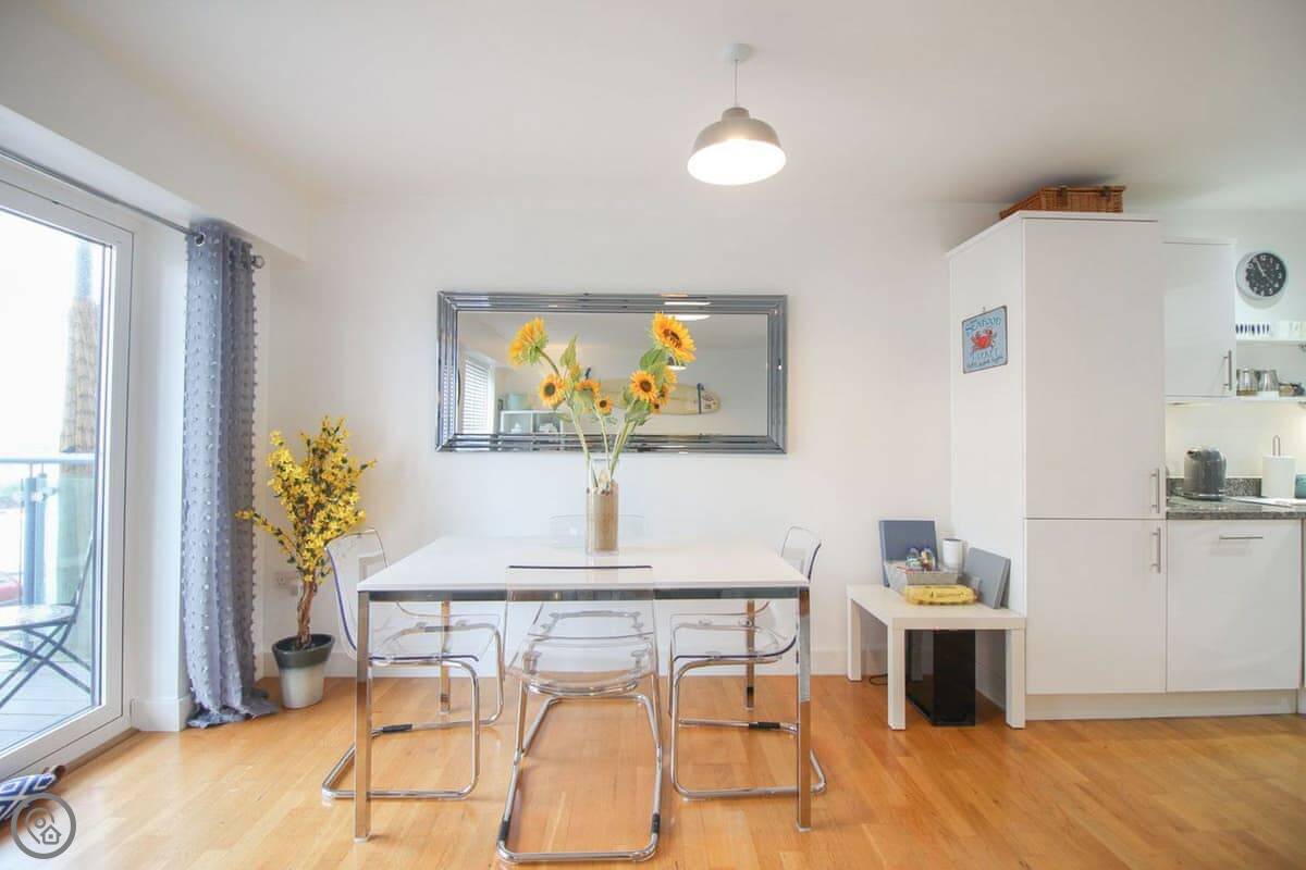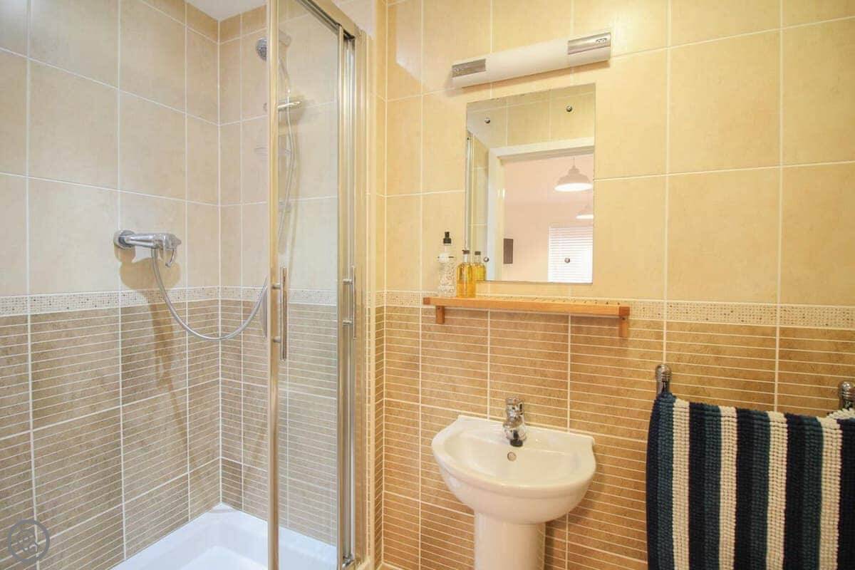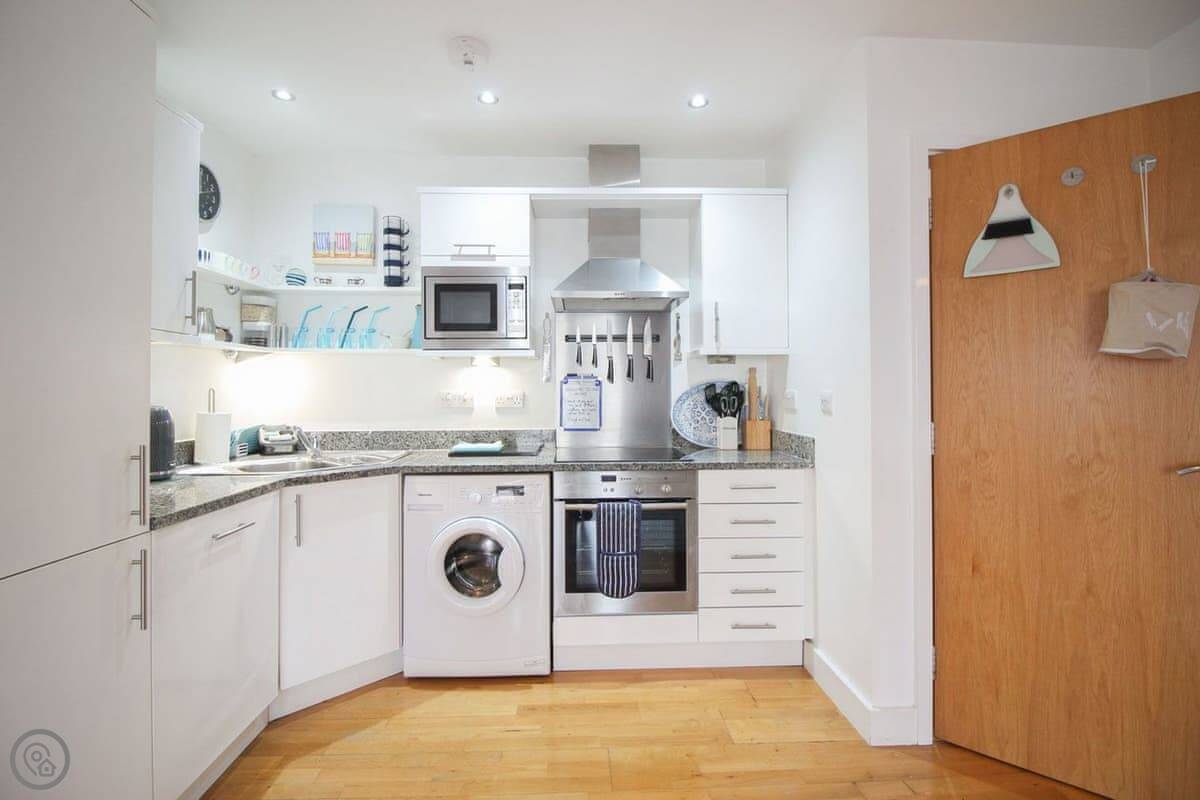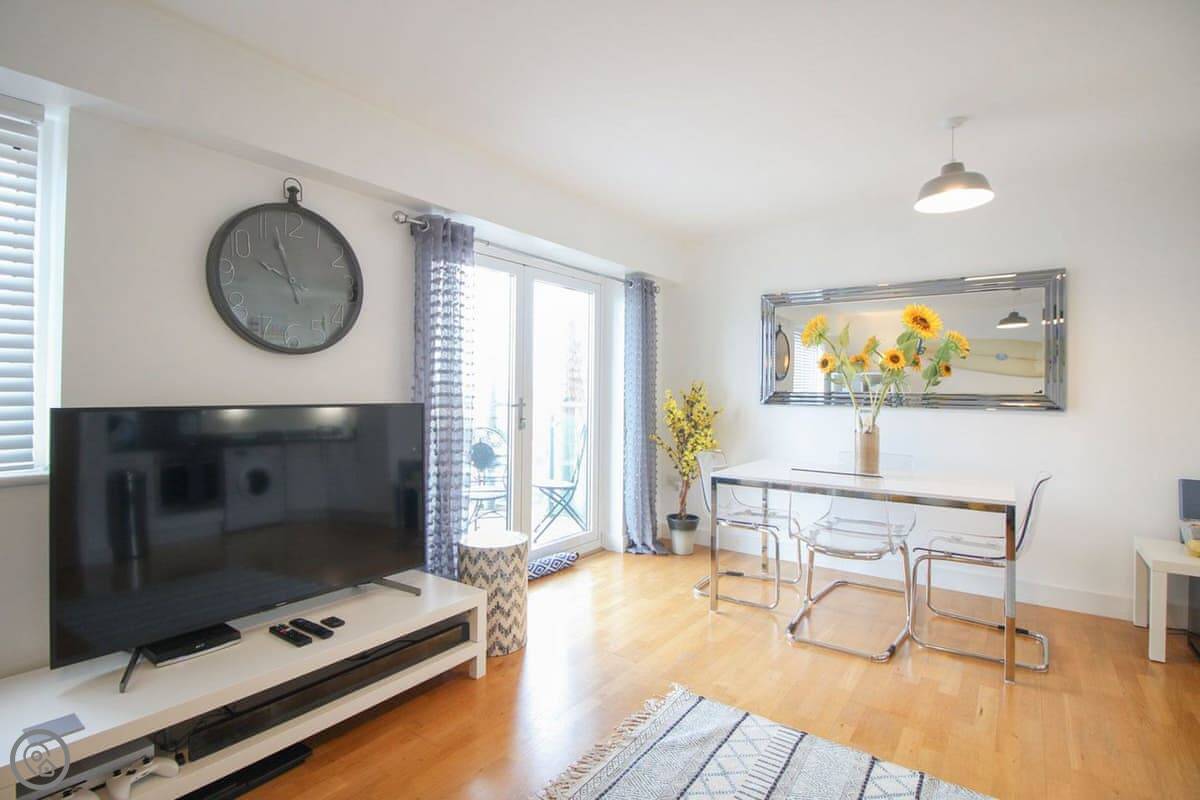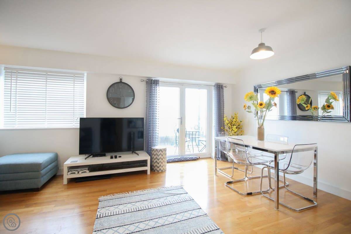 Oceans 9 is an apartment on the Pentire headland in Newquay. It's a ground floor place, sleeps four, with two bedrooms and two bathrooms. Both bedrooms are en-suite. It's got a 4 Star rating, so it's well-finished. There's underfloor heating.