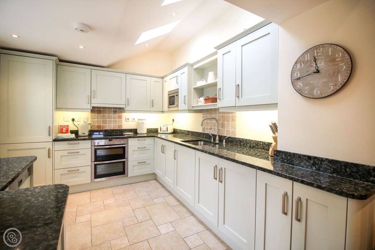 Facilities are as you’d expect for the rating: parking, washing machine, dishwasher, a cot if you need it, bedding and towels are all provided. No pets allowed.