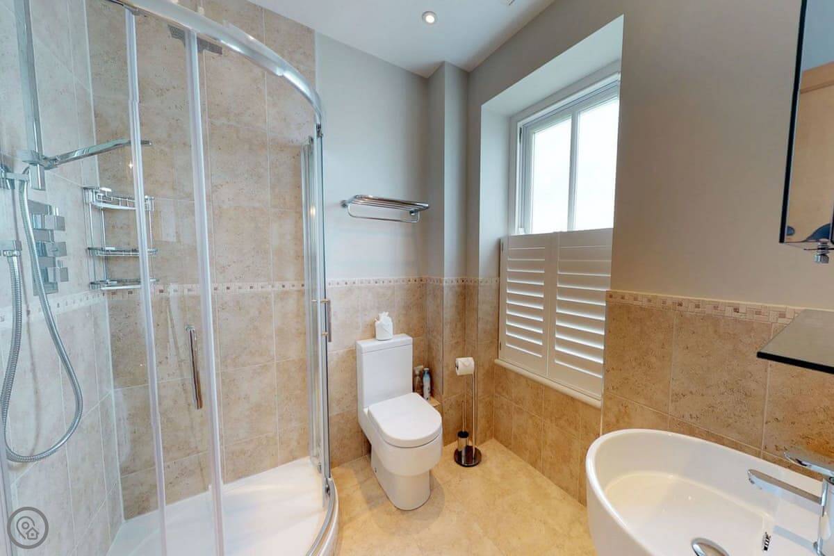 We sleep six here. Three bedrooms and three bathrooms. It’s a 5 Star rating which means it’s comfortable, well-equipped and kept to a high standard.
