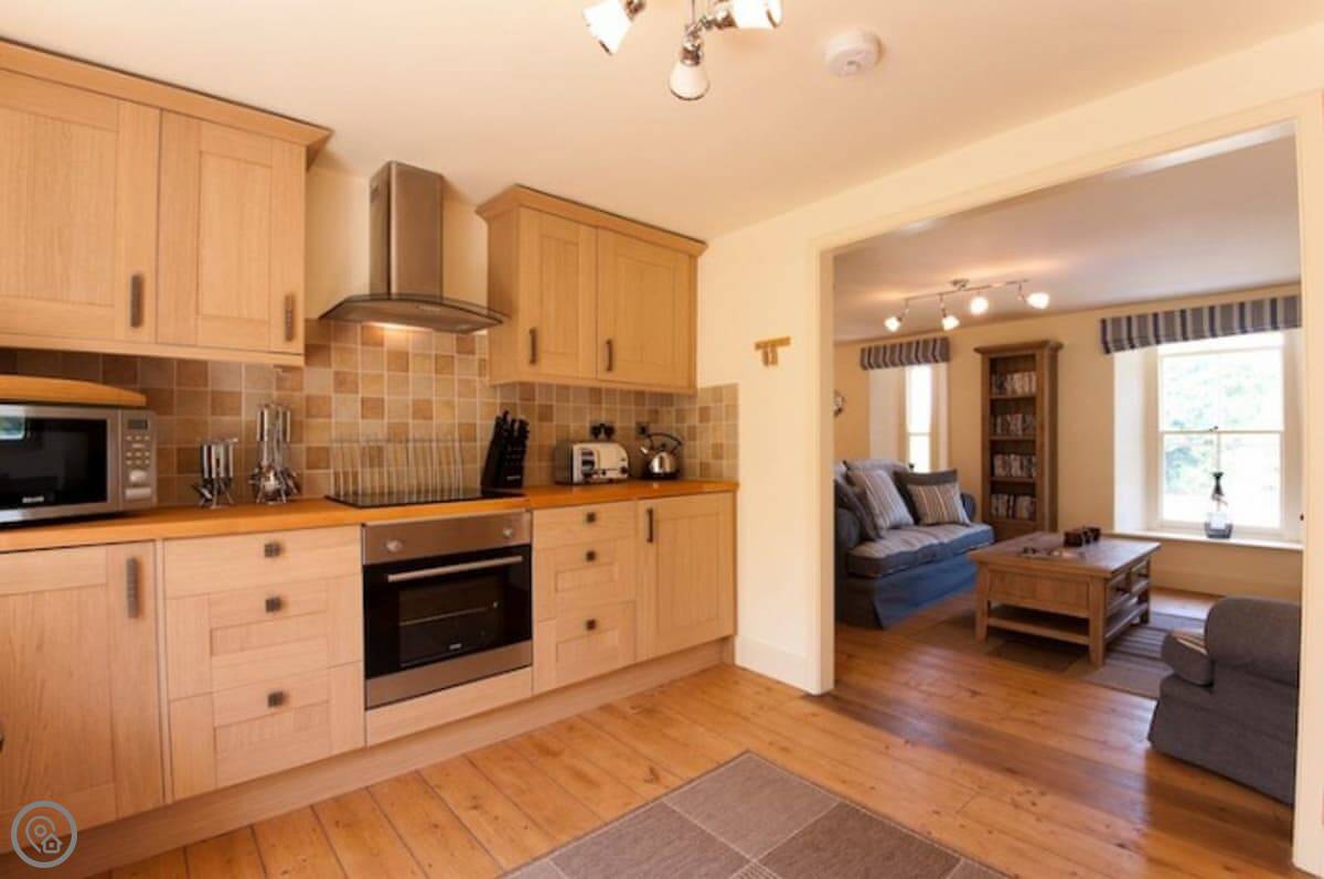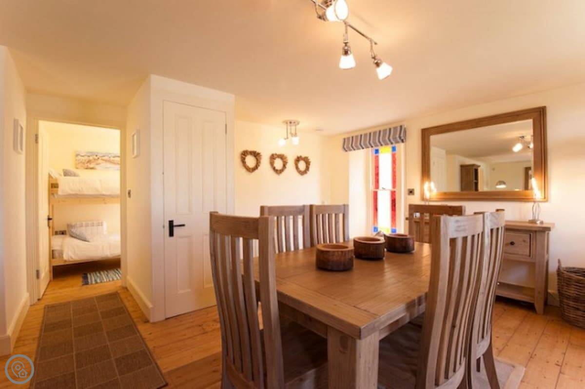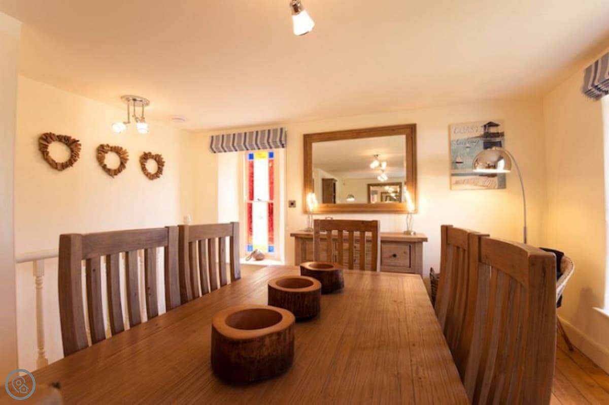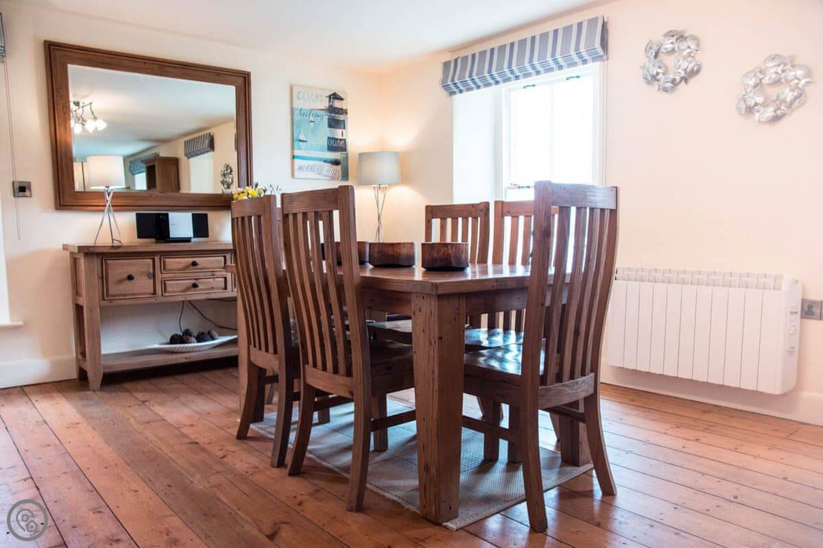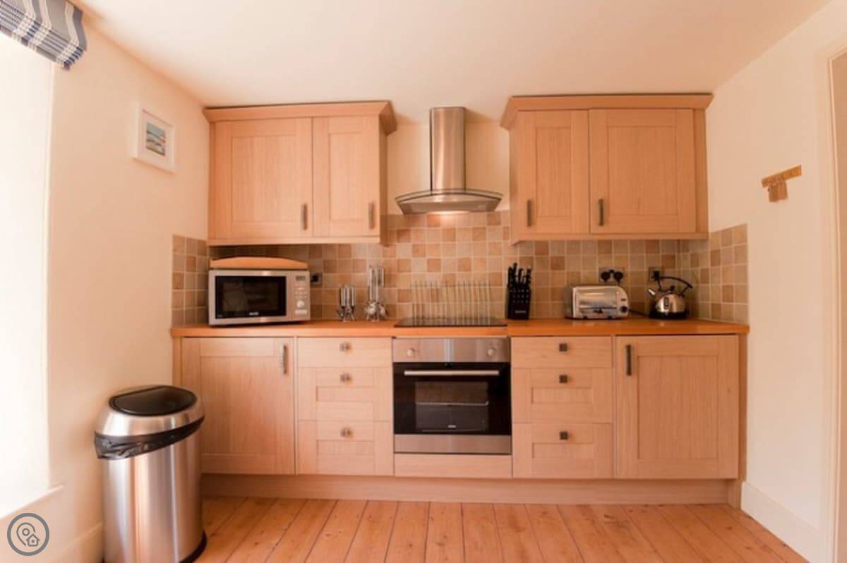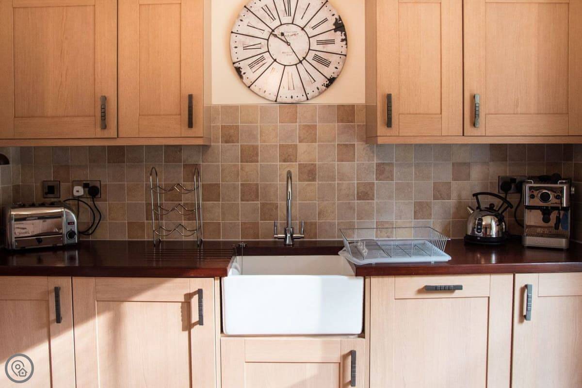 The main living area is open plan. There's a wood burner for cooler evenings. The kitchen has a dishwasher and washing machine. Outside is a patio with a table and a barbecue. The garden is enclosed, which is good if you're bringing dogs. Speaking of, you can bring up to two.