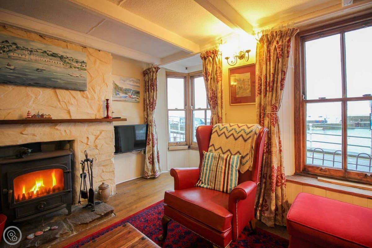 Cornerstone Cottage is in Mousehole. It's right on the harbour front. The front windows look straight out over the water.
