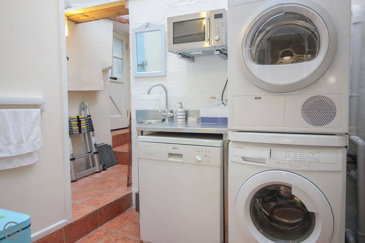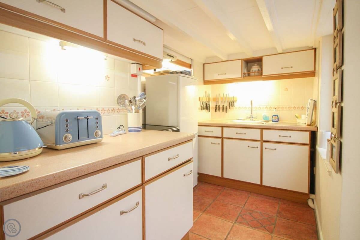 For facilities, it's got a wood burner, WiFi, a TV, and a washing machine. There's a dishwasher in the kitchen. Bedding and towels are included. We can provide a cot and highchair.