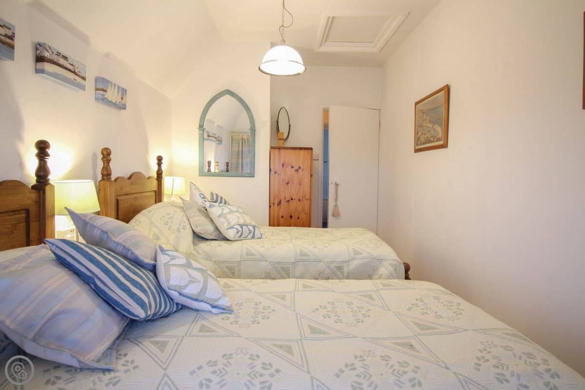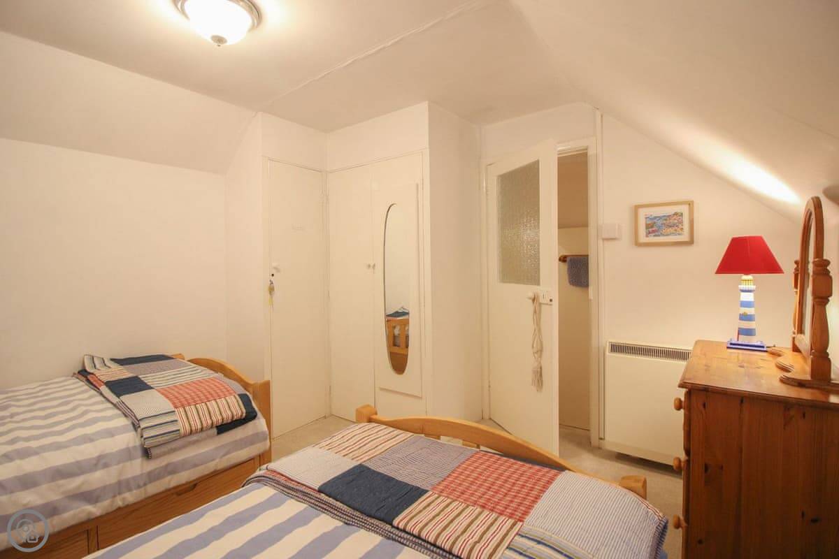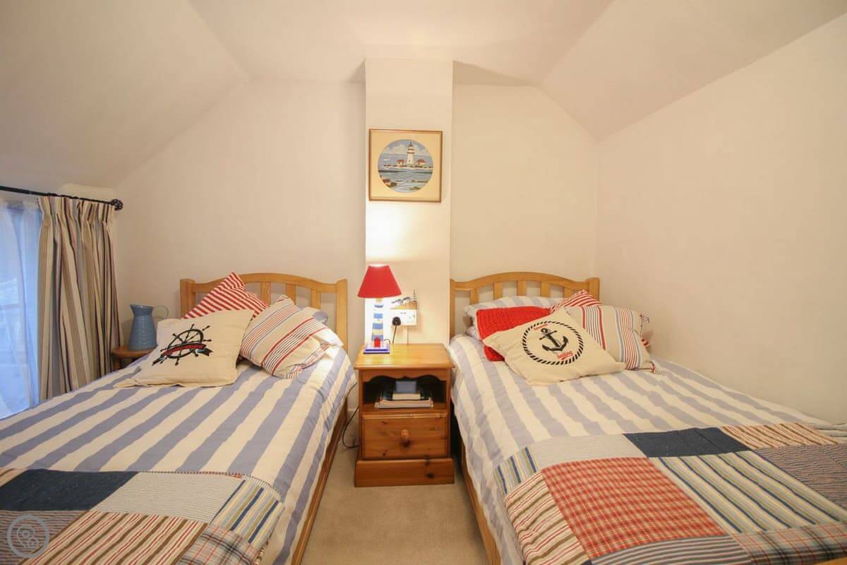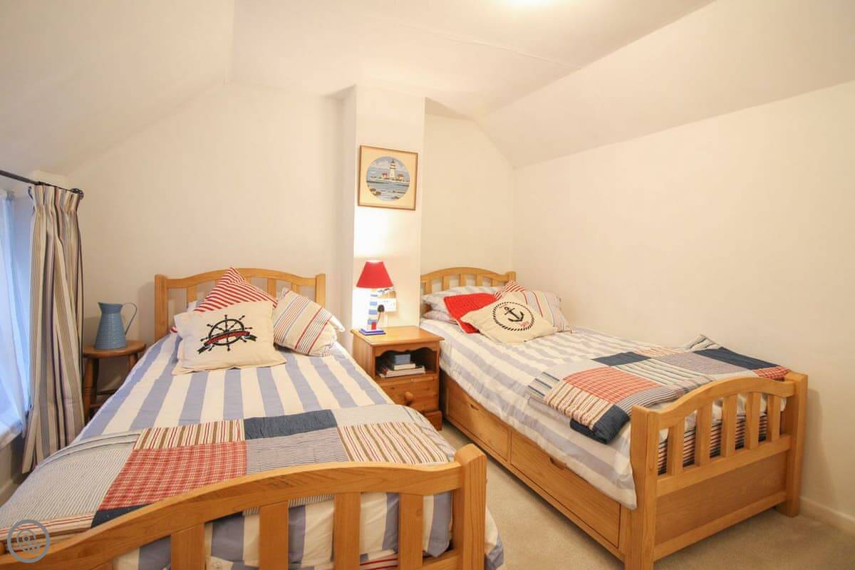 It sleeps six. Three bedrooms, two bathrooms. The rating is 4 Star. It's a fisherman's cottage, so the rooms are what you'd expect. The stairs are a bit twisty.