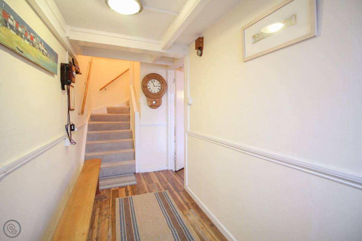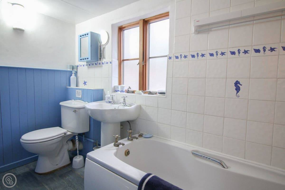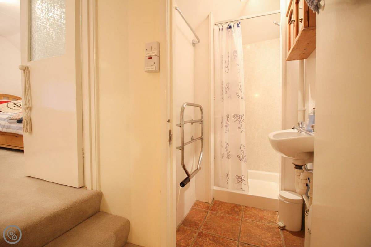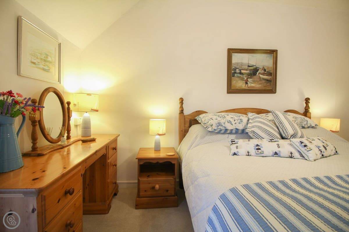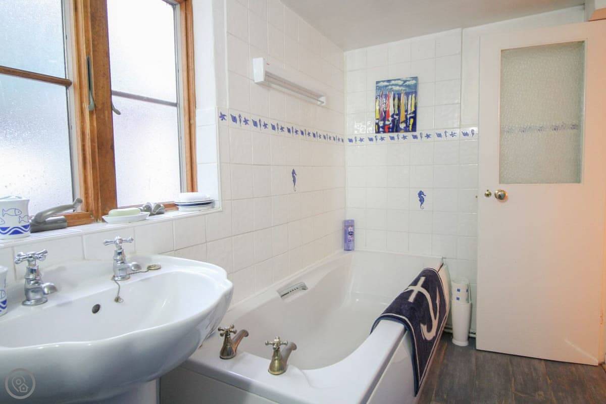 It sleeps six. Three bedrooms, two bathrooms. The rating is 4 Star. It's a fisherman's cottage, so the rooms are what you'd expect. The stairs are a bit twisty.