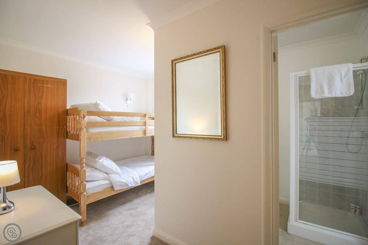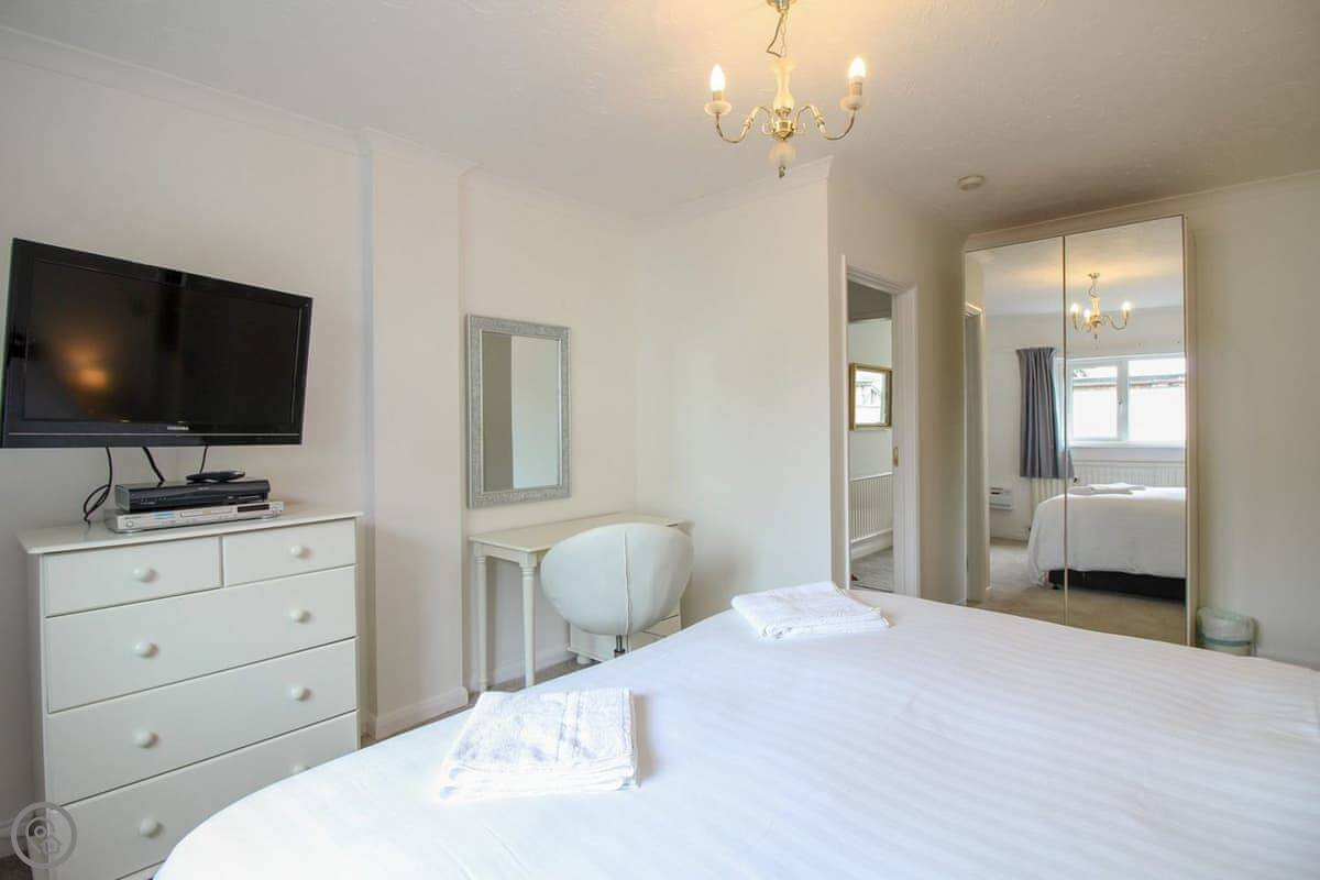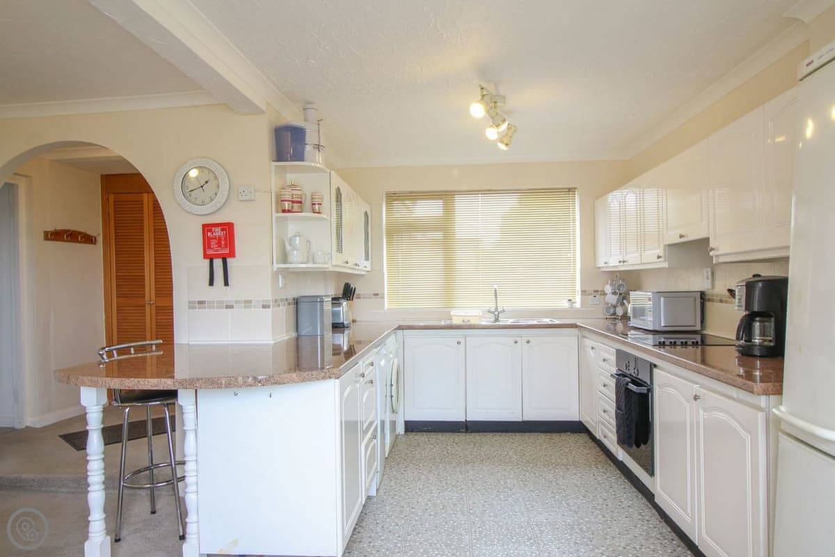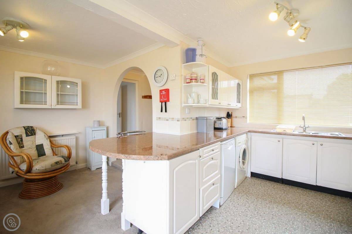For facilities, it has the things you'd expect: WiFi, TV, washing machine, dishwasher. Bedding and towels are included. There's a cot and highchair if you need them. Parking is on site. You can bring up to two dogs.
