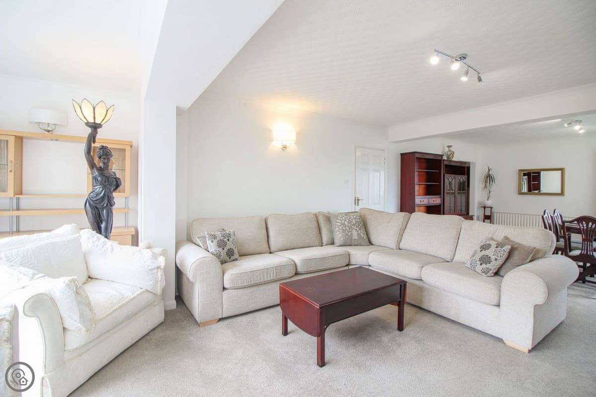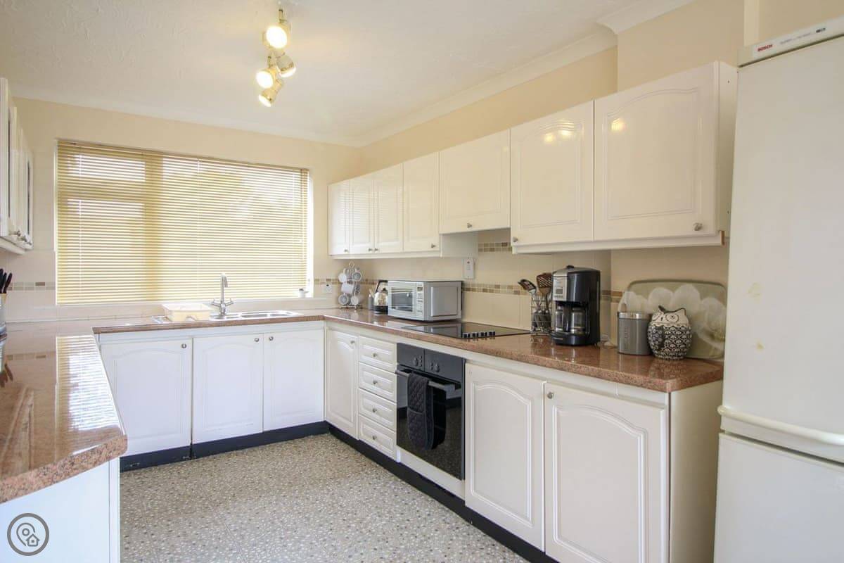 Inside, there's a decent-sized living room and a kitchen. One bedroom is on the ground floor, which is useful. The other three are upstairs.