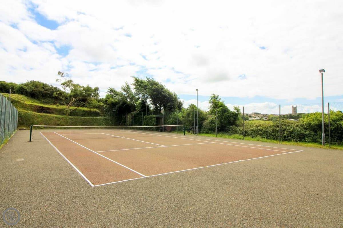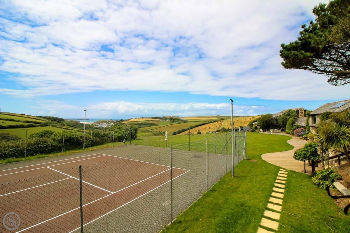 There's a tennis court right outside the lodge. You can use it whenever.