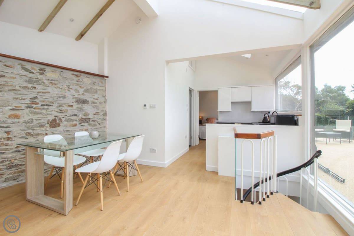 For beaches, Porth and Watergate Bay are the closest, a few minutes in the car. Watergate Bay has some good places to eat. Newquay town centre is about ten minutes away. It's busy, lots of surf shops and places to eat.