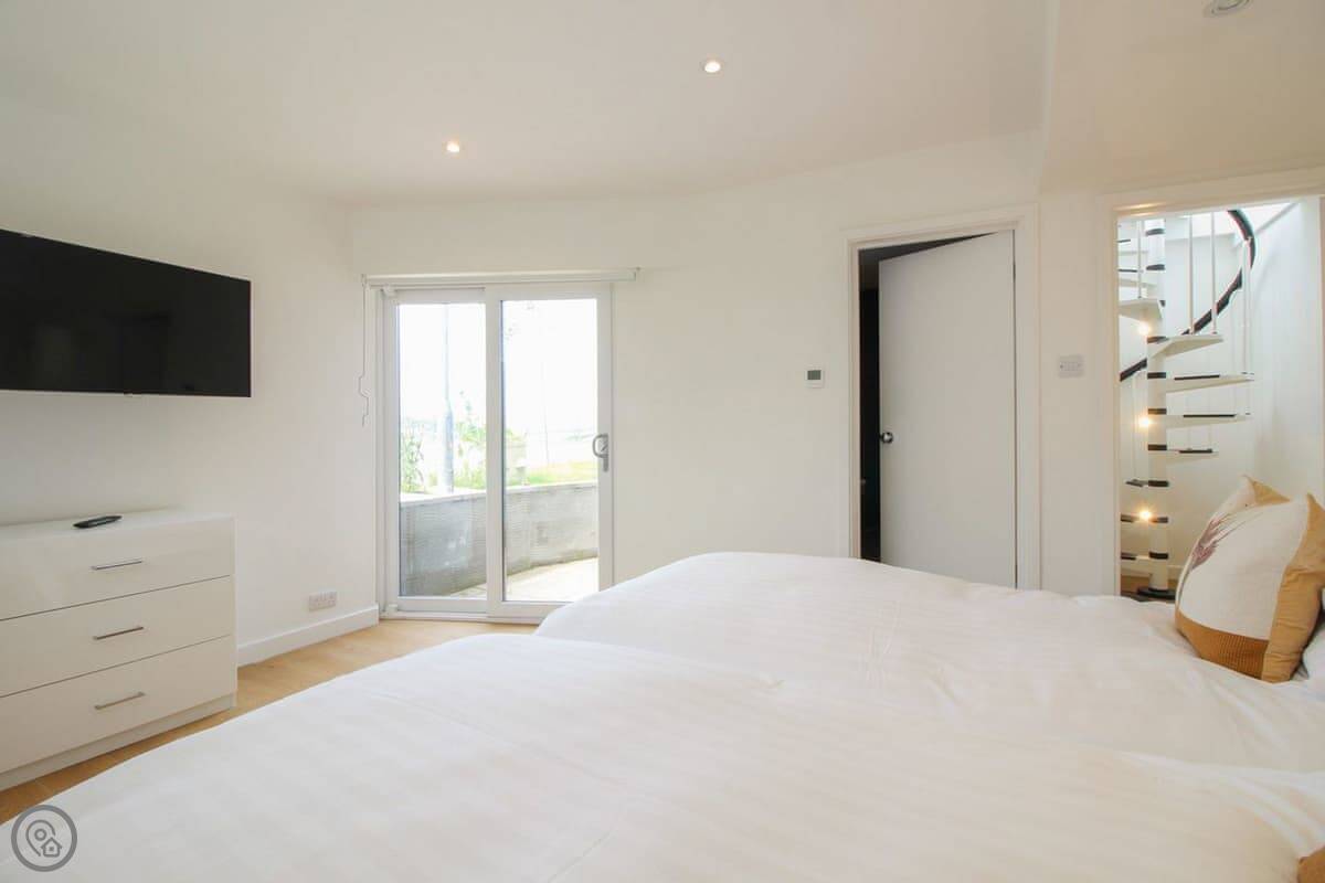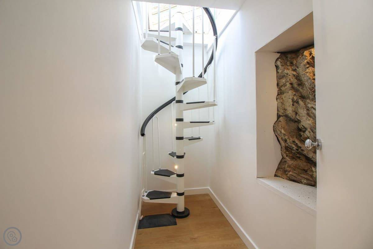 The stairs to the downstairs bedroom are a spiral staircase. They are quite narrow. Something to know if you've got big bags or if anyone has trouble with stairs.