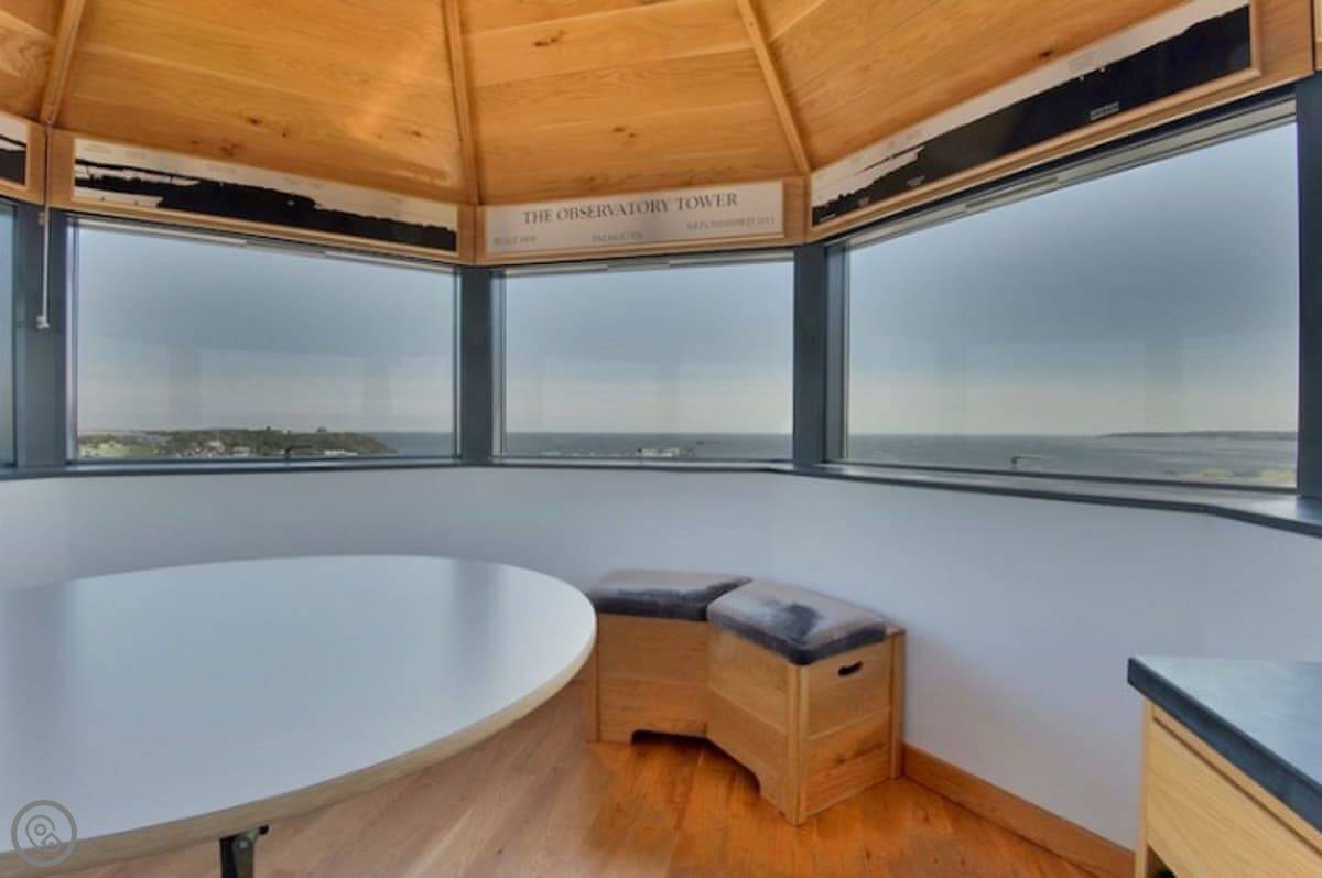 Set on a hill, overlooking town, sea and river, The Observatory Tower occupies the highest point in Falmouth. It was built in 1868, as a meteorological observatory, where people could watch and identify incoming weather. Unfortunately, The Tower went into disrepair over the years and was eventually sold at auction in 2009, when the new owners set about its complete renovation, restoring wherever possible whilst also updating it for the 21st century, to make it a sumptuous and comfortable modern holiday home with every amenity you could possibly wish for.