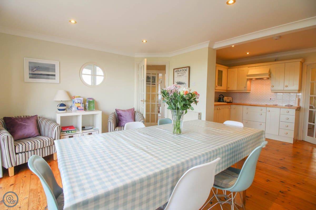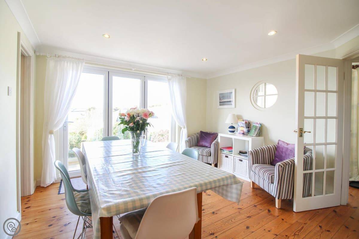 The cosy living room with wood burner creates a relaxing space even in colder months. The kitchen/dining room is great for gathering as a family and enjoying a holiday feast. With a single bedroom downstairs and three further bedrooms on the first floor there is plenty of space to spread out. Upstairs the master bedroom has a kingsize bed, its own en-suite shower room, and a private balcony where you can relax with a glass of wine and enjoy the stunning views. The family bathroom is also found on the first floor. There are dozens of fantastic walks on your doorstep, and as a dog-friendly property, even your furry friends are ensured a fabulous holiday.