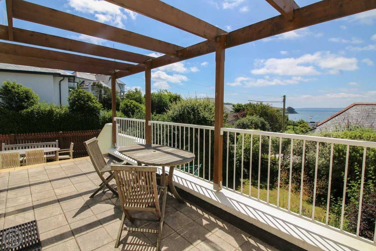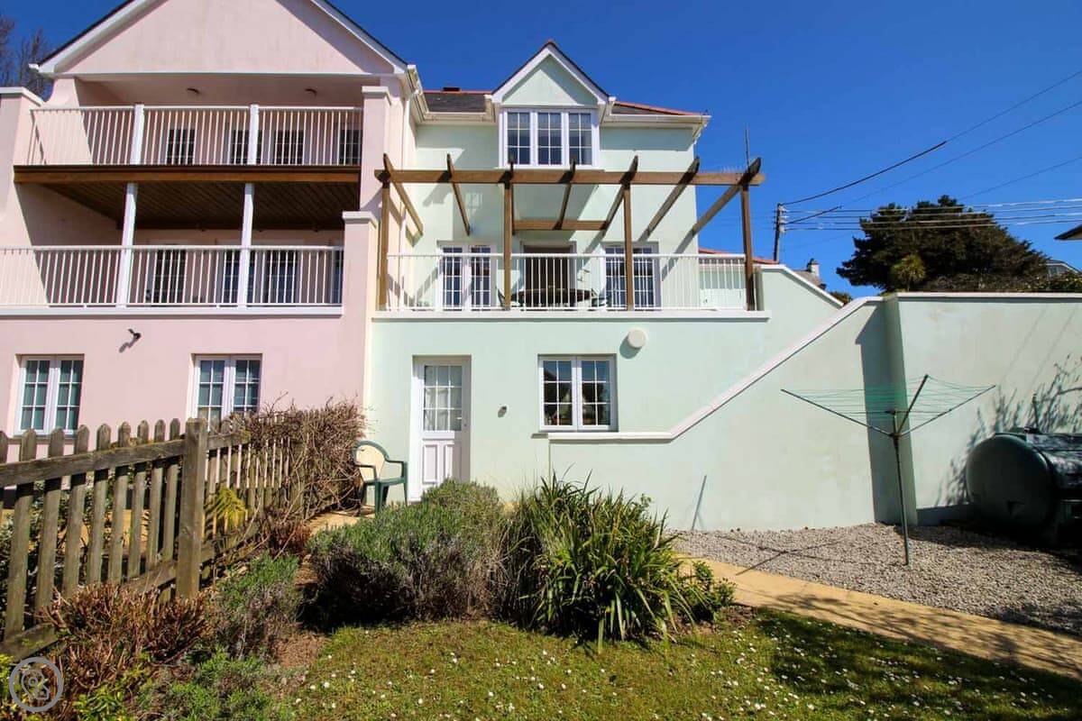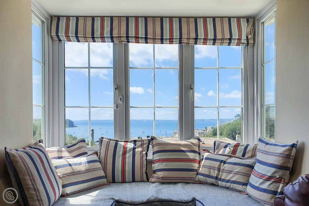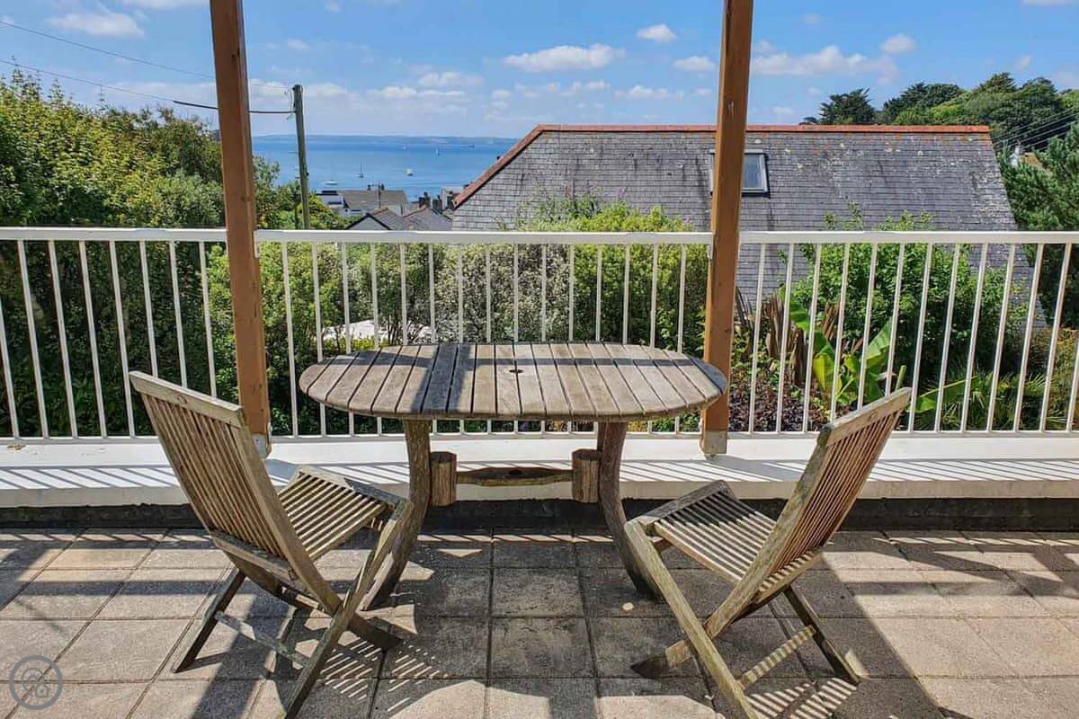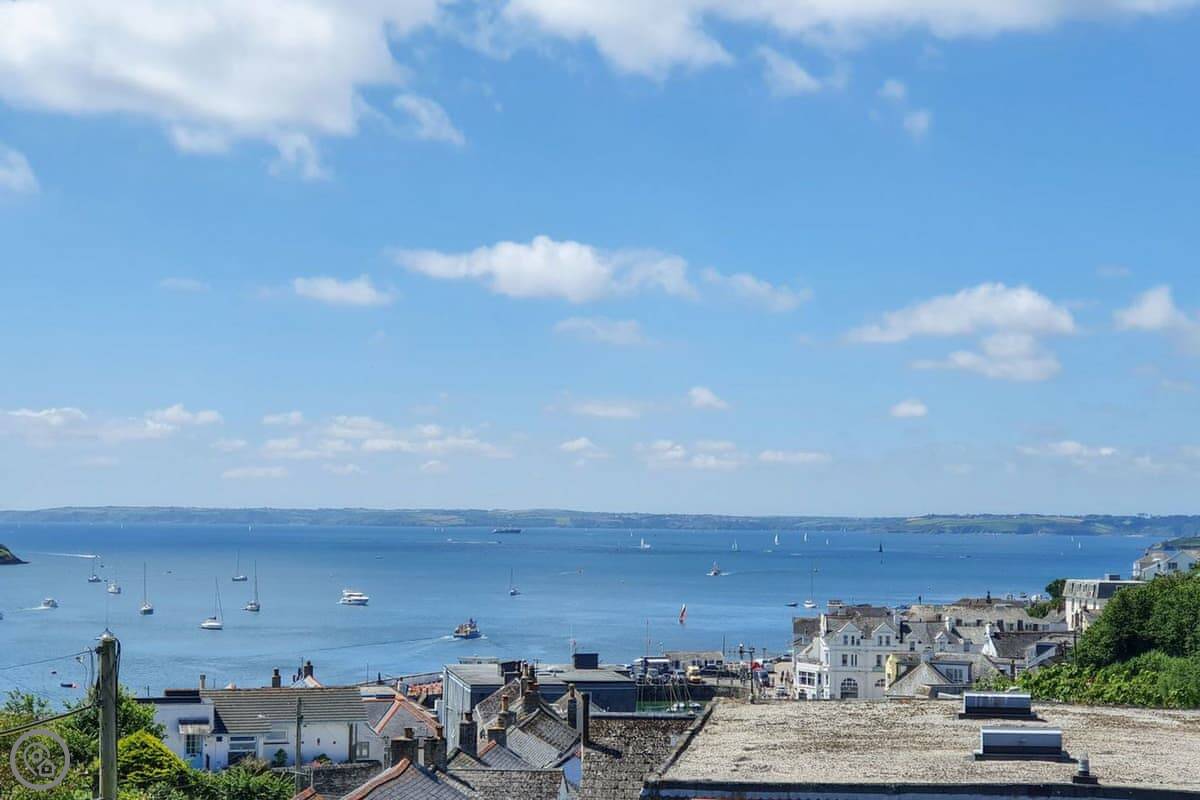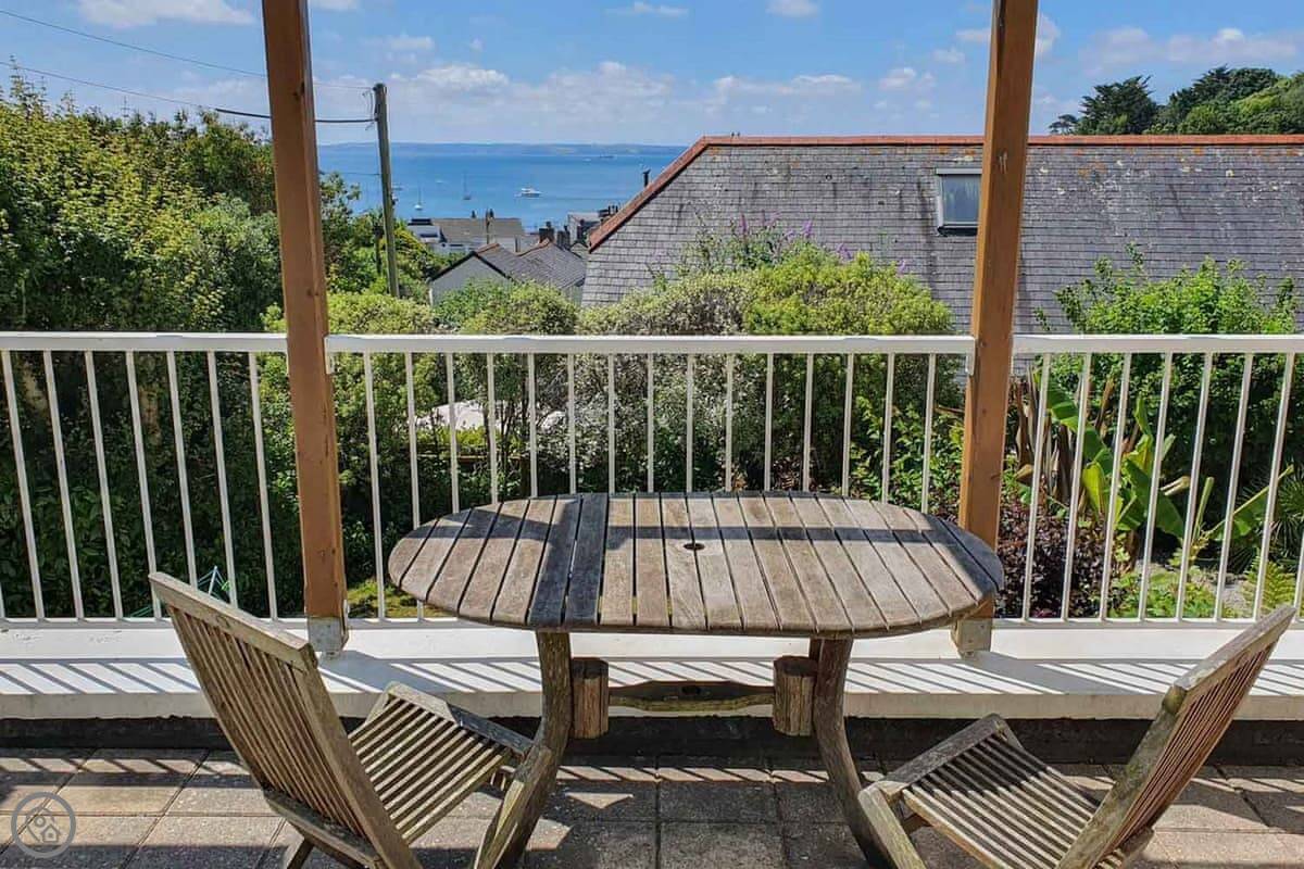 Coppers is about a five minute walk from the harbour in St Mawes. It's up a short hill, but that means the view is very good. You can see right across the bay and over to the Helford from the main living room. It's got its own parking space.
