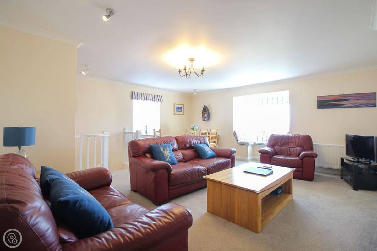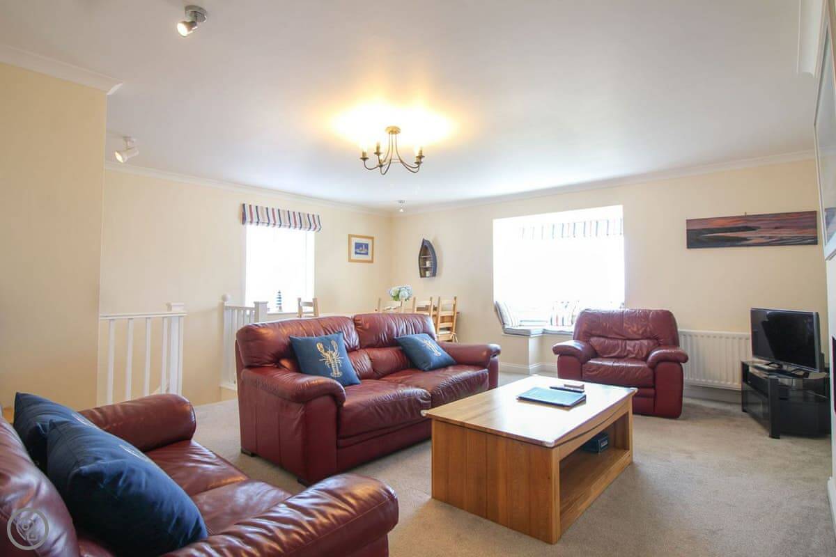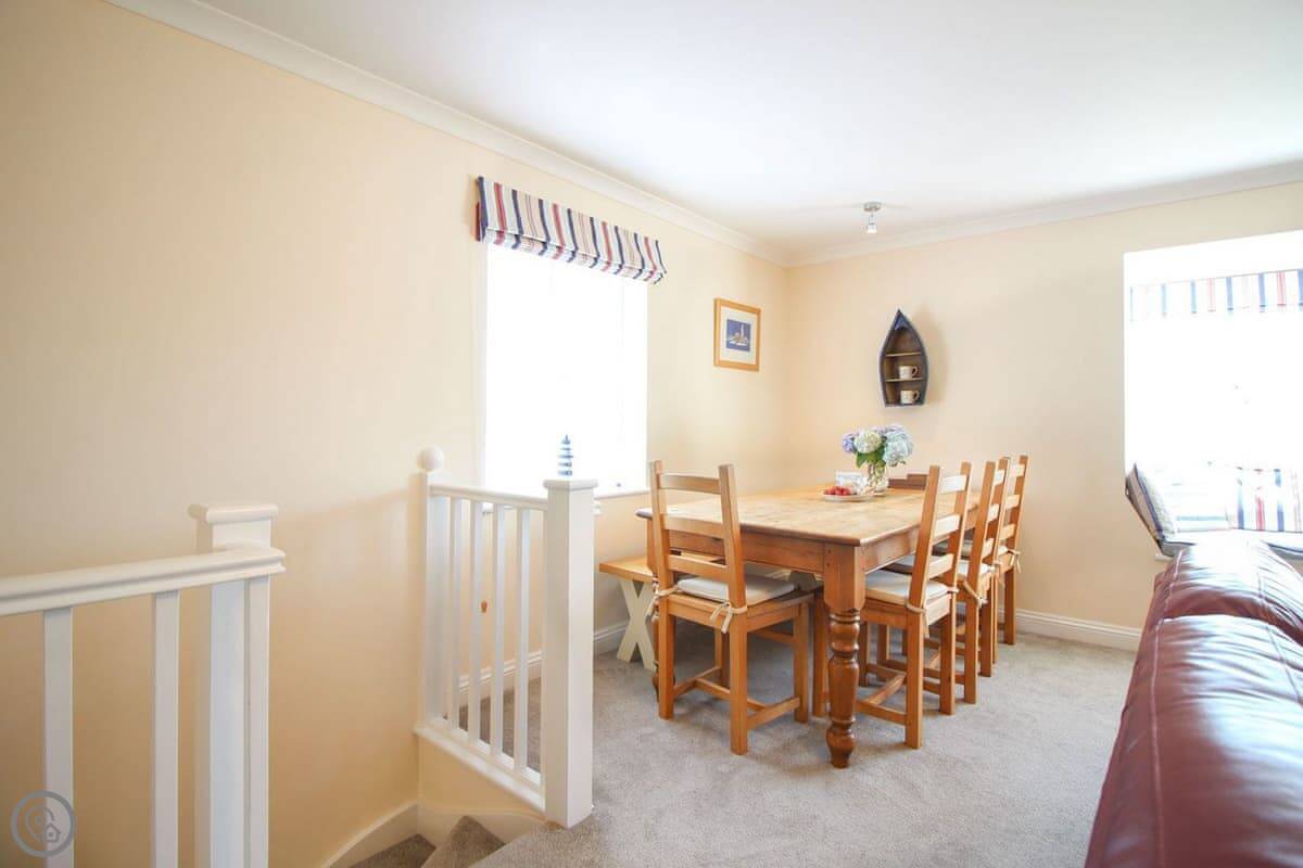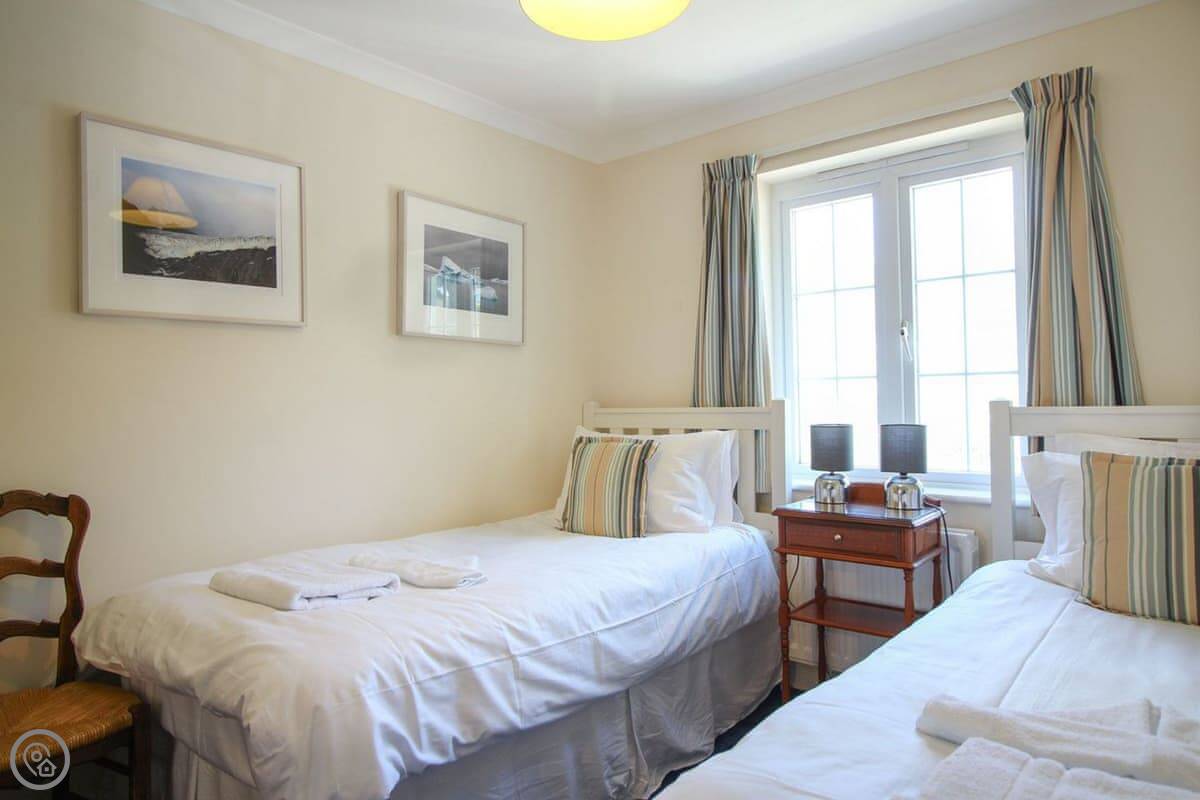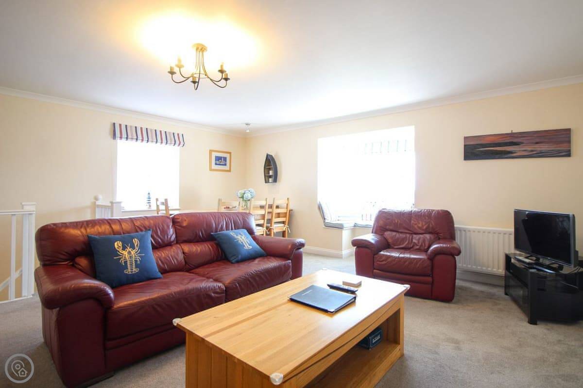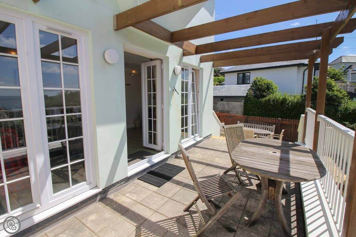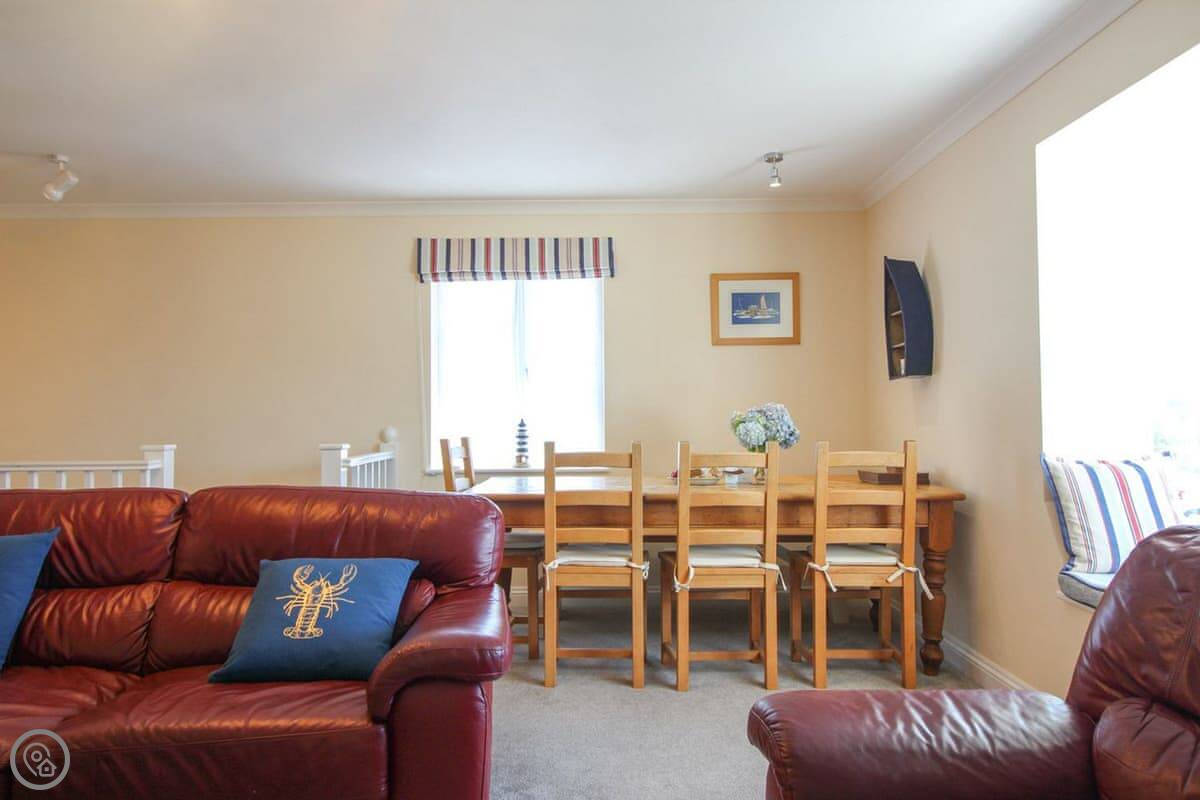 Coppers is about a five minute walk from the harbour in St Mawes. It's up a short hill, but that means the view is very good. You can see right across the bay and over to the Helford from the main living room. It's got its own parking space.