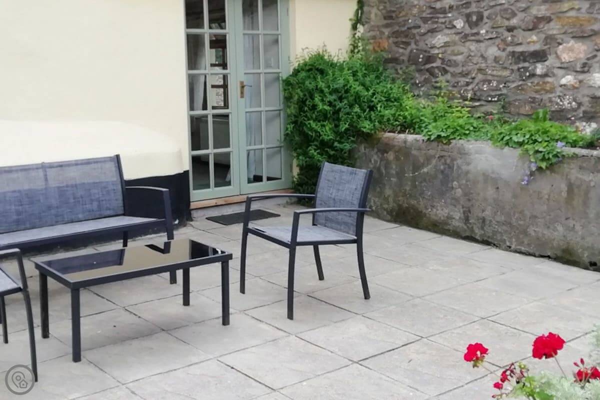 You've got French doors that open onto a patio. It's a private, enclosed garden. It gets the sun. It's a good spot to sit out. The garden is dog-proof for most dogs, I'd say.