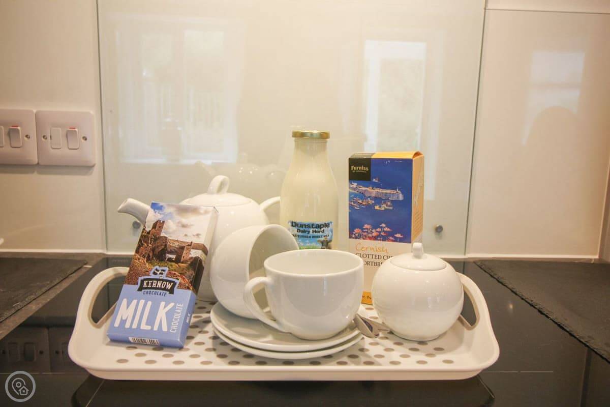 The Hayloft at Tregole Farm is a cosy home away from home, an open plan kitchen/living room with a cosy open fire and the sumptuous leather sofa is a great spot to snuggle up in the evening after a day exploring the dramatic coastline. Enjoy a peaceful breakfast and morning coffee in the bright conservatory while upstairs is a comfortable bedroom and bathroom with a freestanding roll-top bath. Dog friendly, your pooch will enjoy this holiday home just as much as you!
