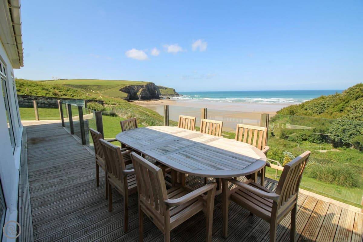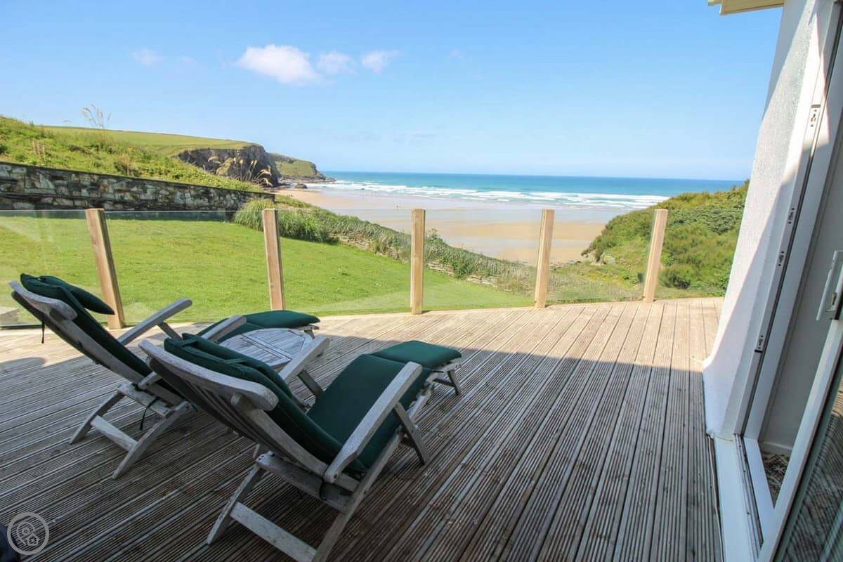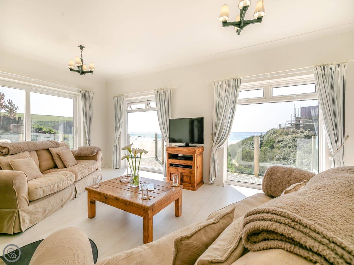 The kitchen, dining room, main living room, and one bedroom all look straight out at the sea. You don't get a better view than that here. There's a second, smaller living room at the back with a TV, which is handy.