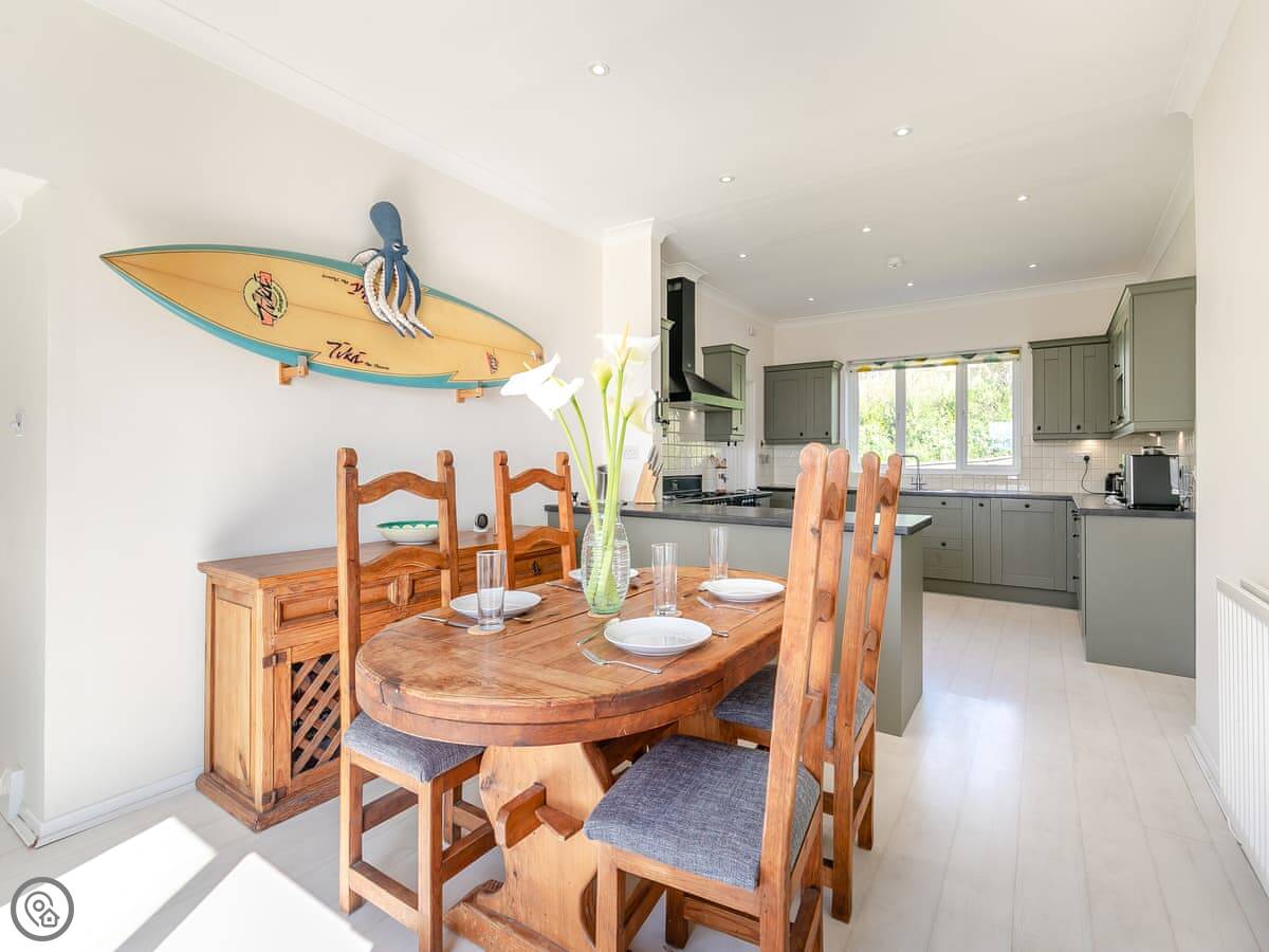 Templeton is in Mawgan Porth, Cornwall. It's our house, and we rent it out when we're not using it. It sleeps ten people. There are four bedrooms and four bathrooms, so a good number for a big group.