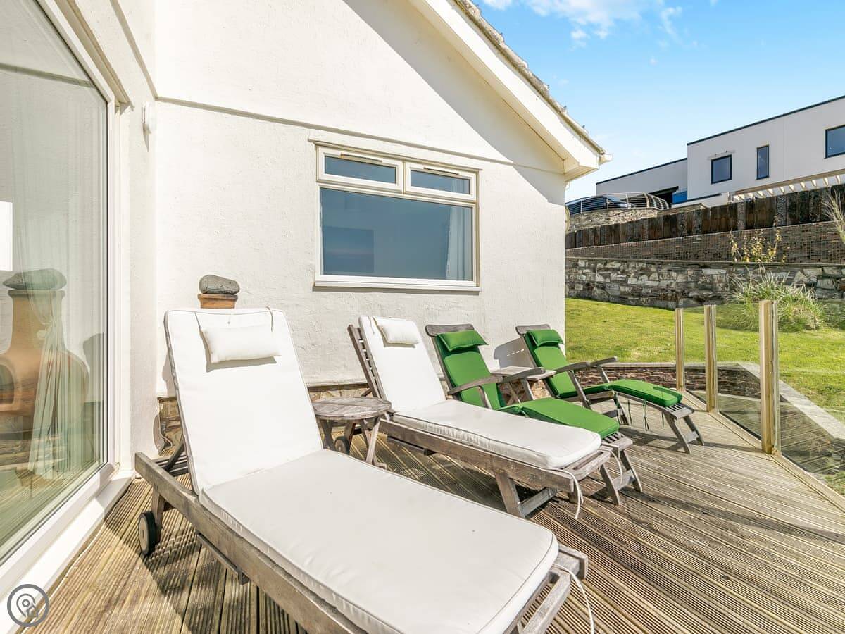 The house is mostly on one level, which people seem to like. It's on a quiet half-acre plot. A balcony runs around it with a dining table and sun loungers.