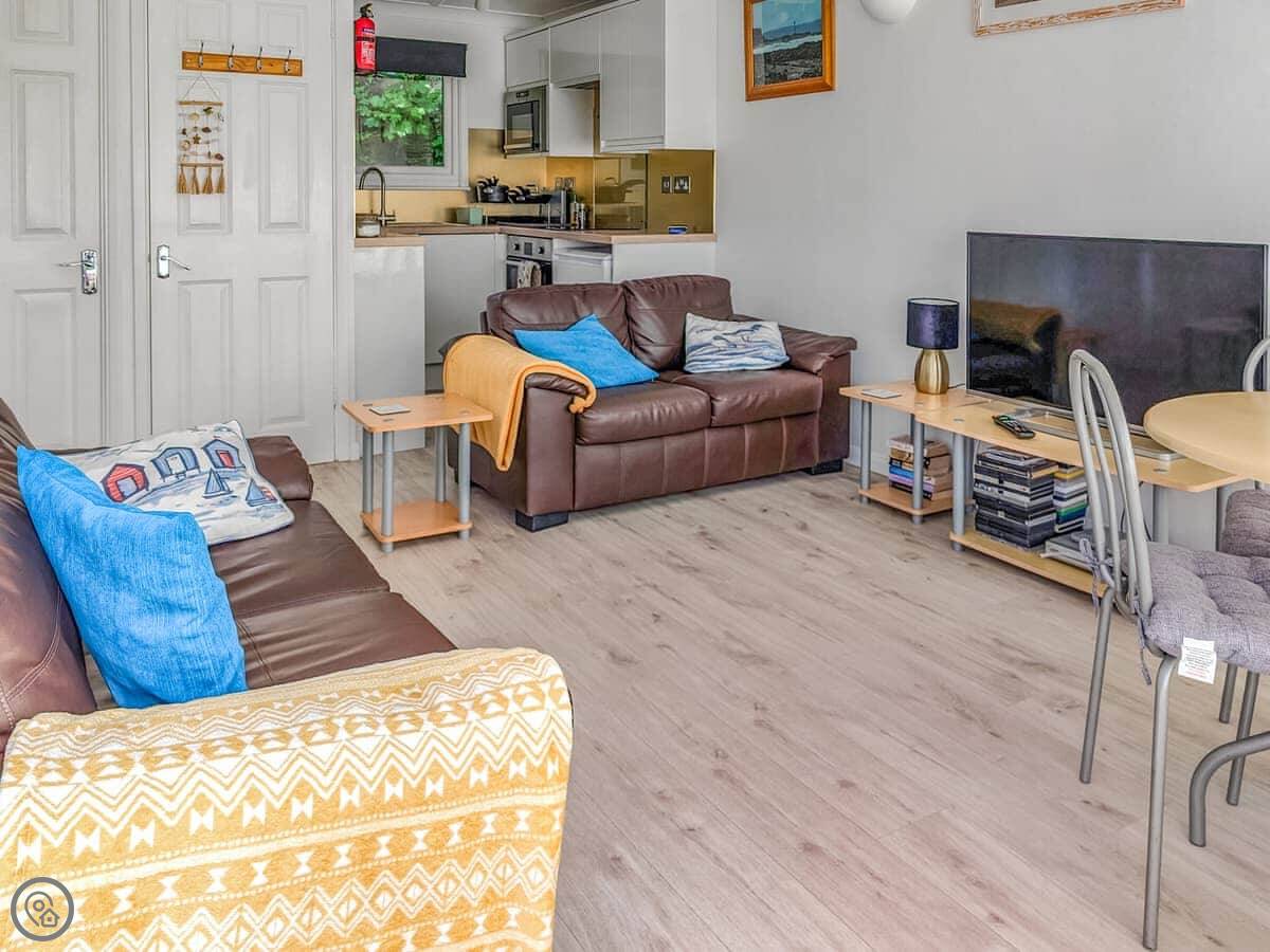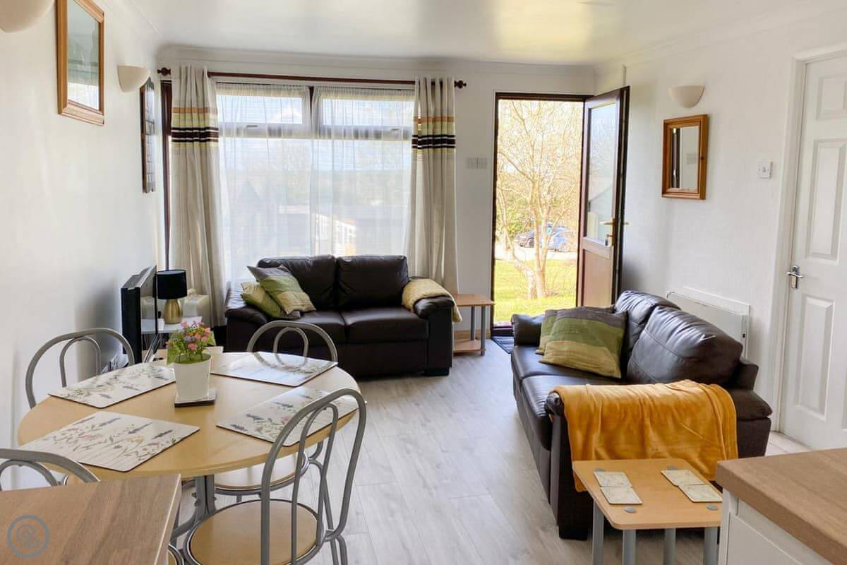Because it's a single-storey lodge and has a wheelchair-accessible entrance, it suits people who can't manage stairs. The park itself has a pub and restaurant, and sometimes entertainment in the main season.