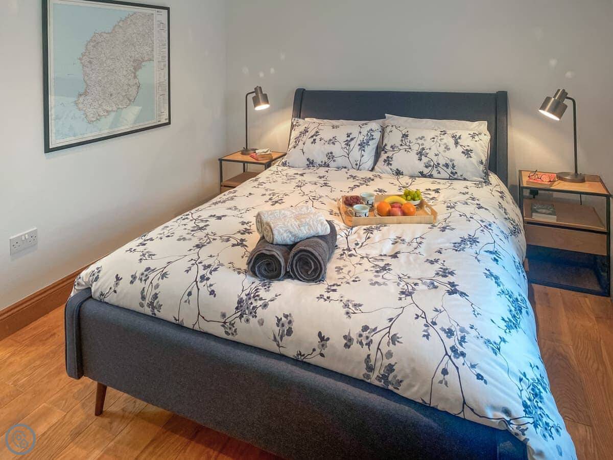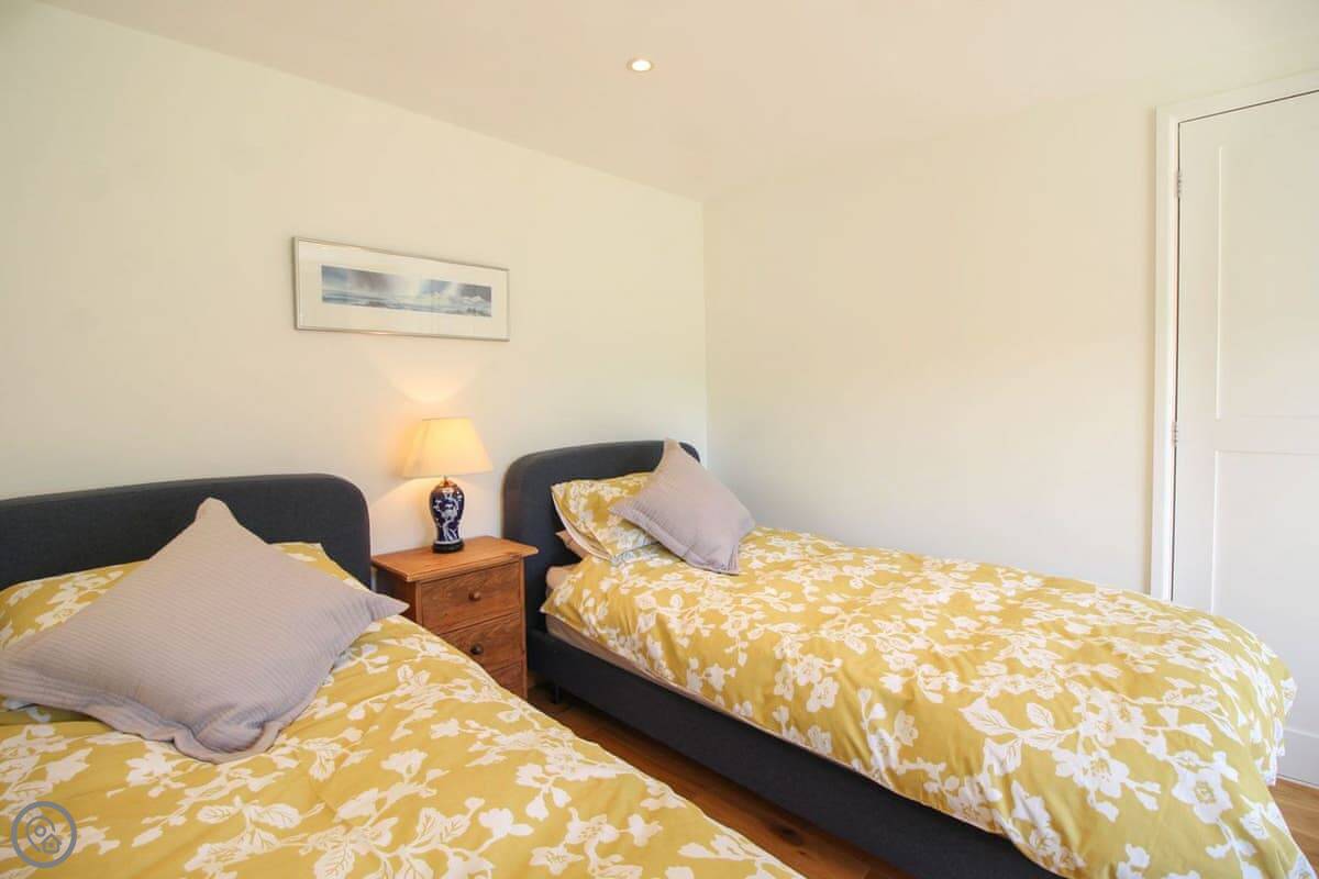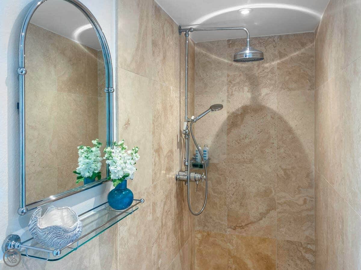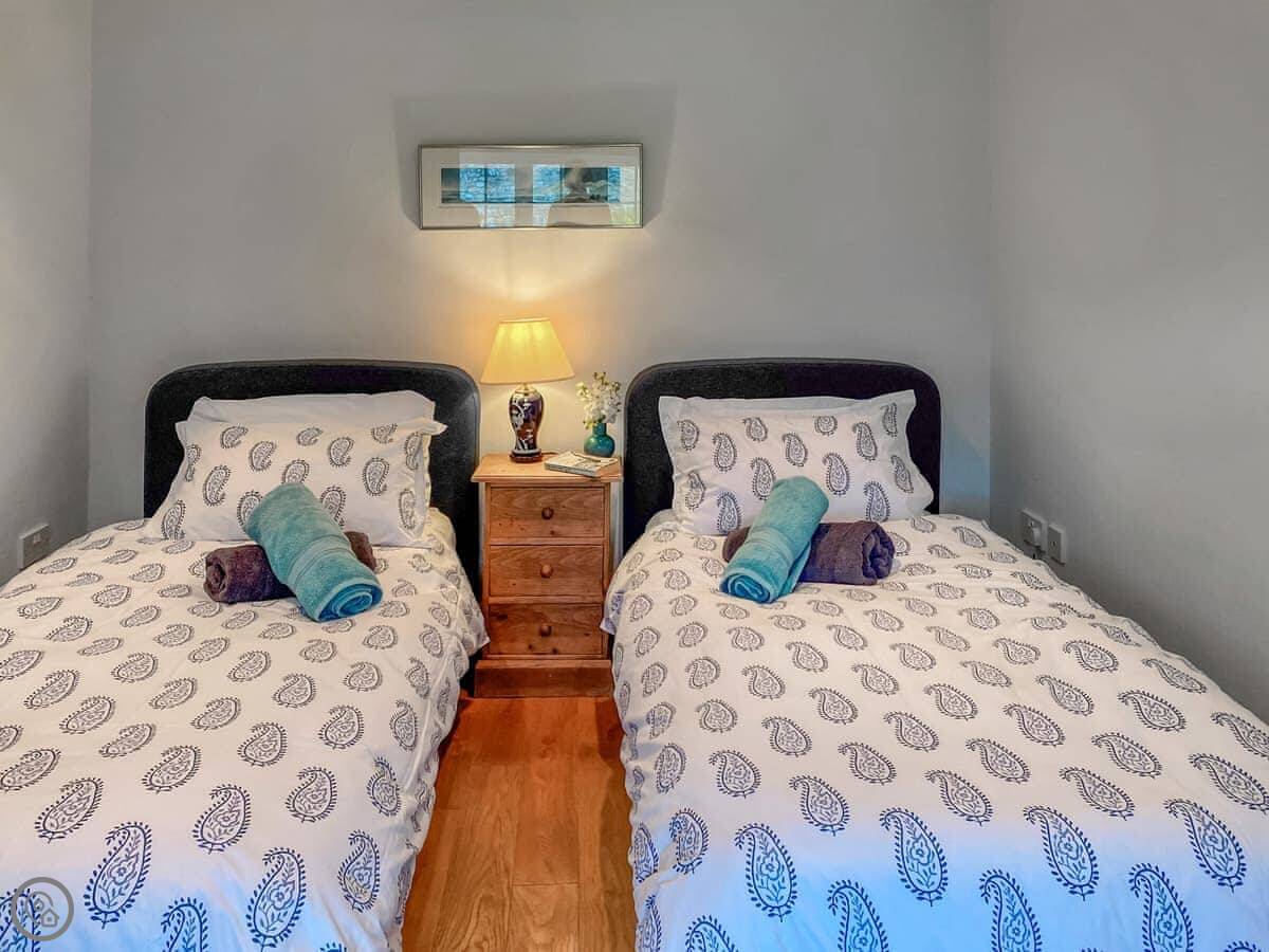 It sleeps four. Two bedrooms, two bathrooms, so no queueing in the morning. One bedroom is a king with an en-suite wet room, the other has twin beds. It's got a 4 Star rating, which means it's comfortable and well-kept.