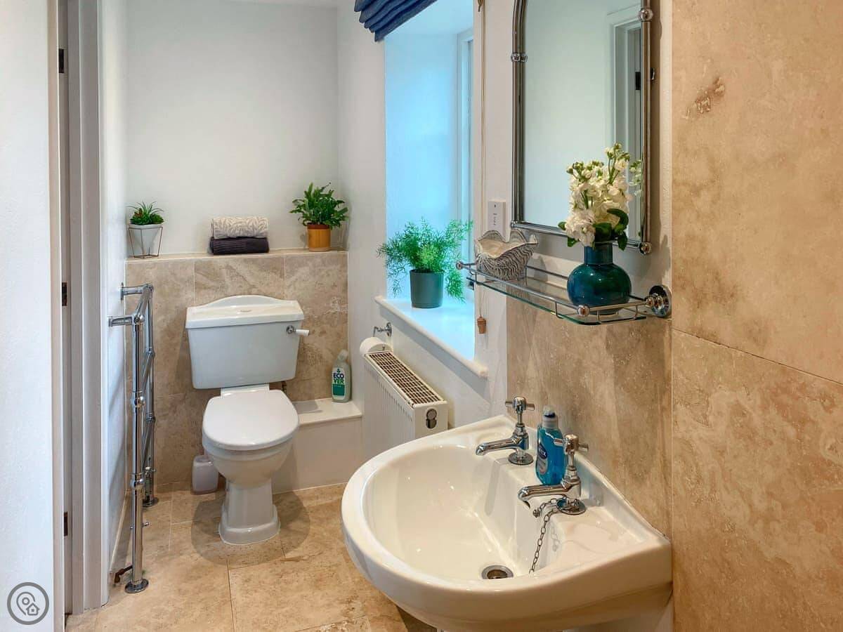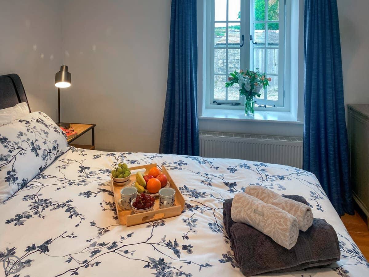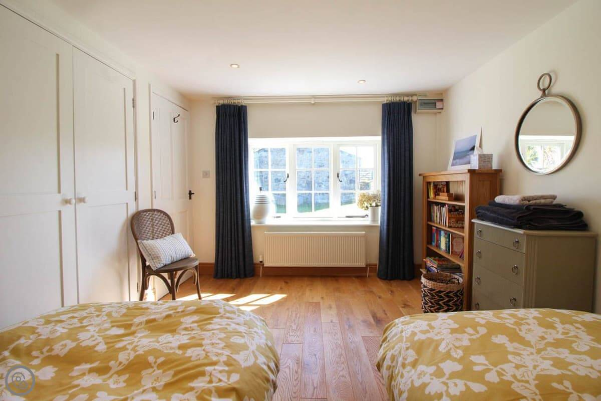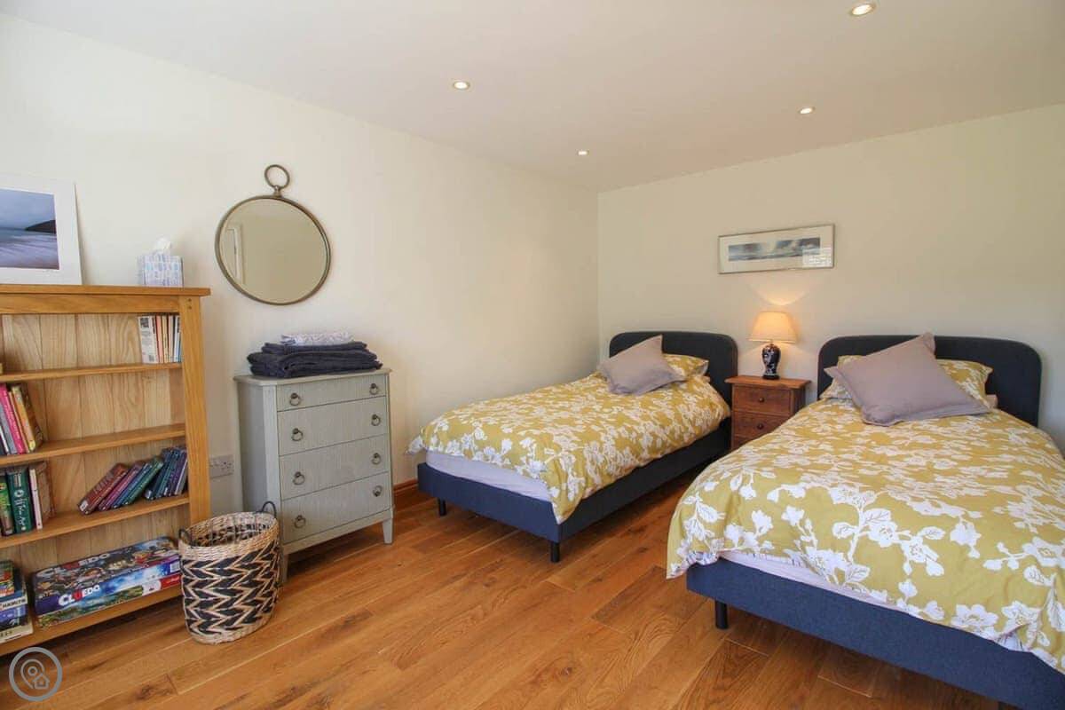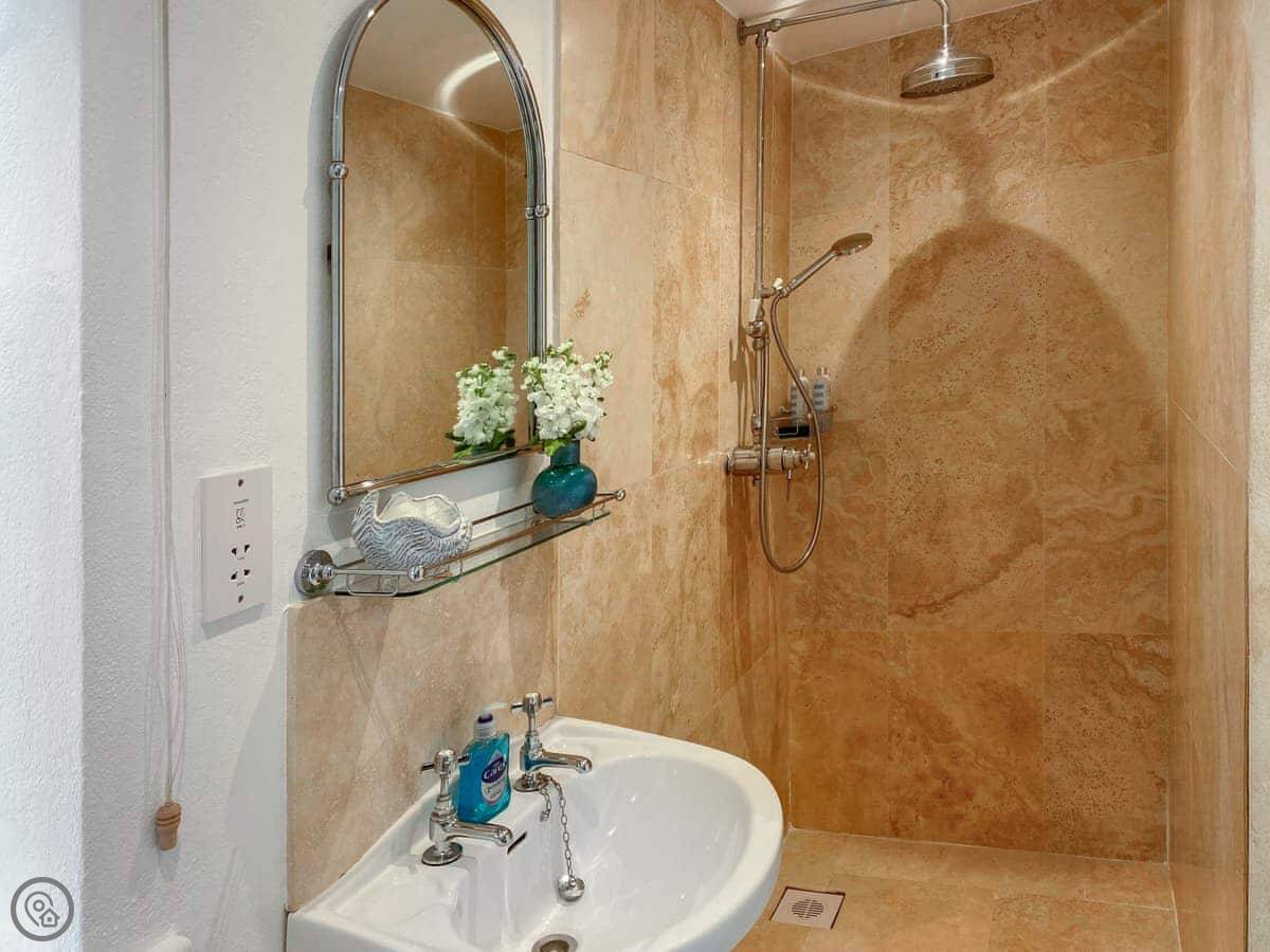 It sleeps four. Two bedrooms, two bathrooms, so no queueing in the morning. One bedroom is a king with an en-suite wet room, the other has twin beds. It's got a 4 Star rating, which means it's comfortable and well-kept.