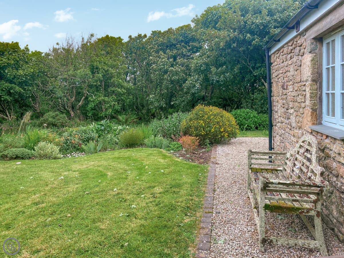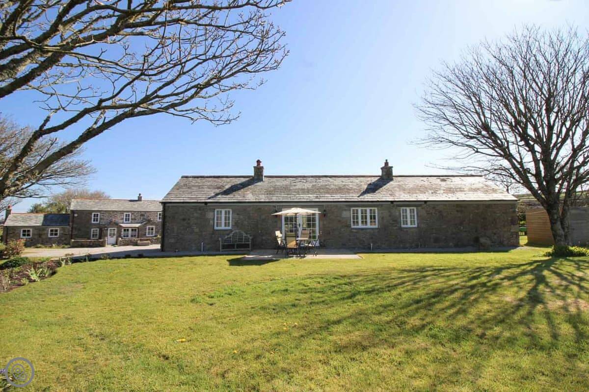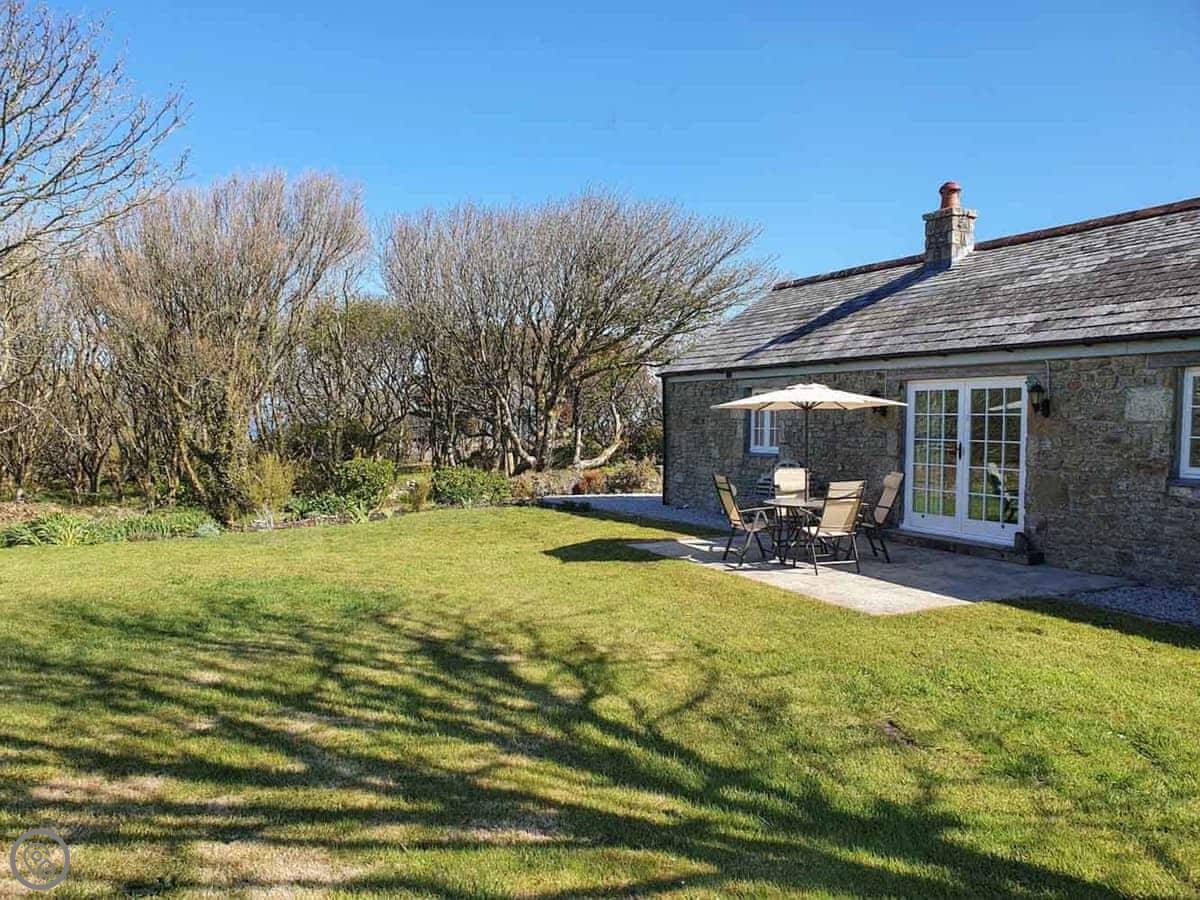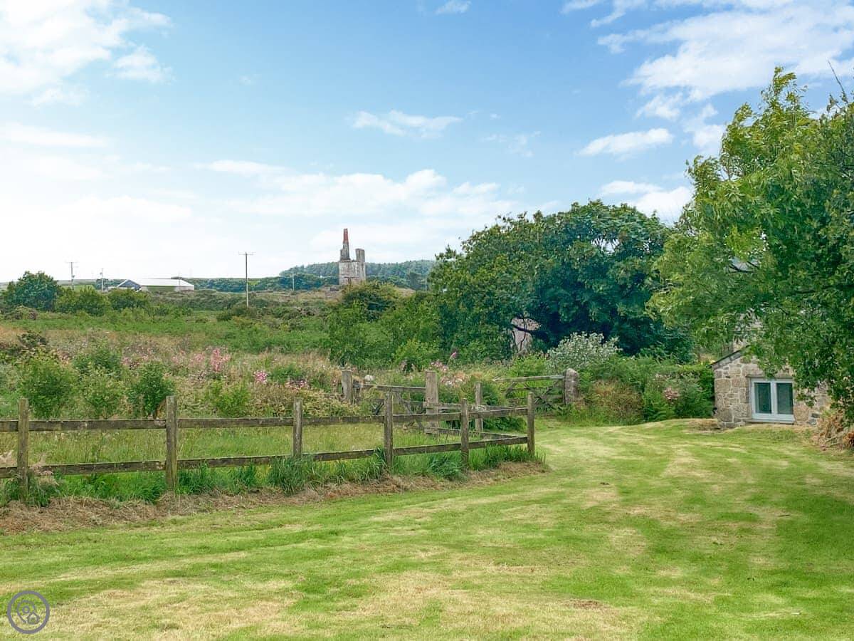 Stone Farm Cottage is in Bojewyan, just outside Pendeen. It's a granite cottage, very solid, looking out over fields with old tin mine engine houses in them. From the top of the garden you can see the sea.