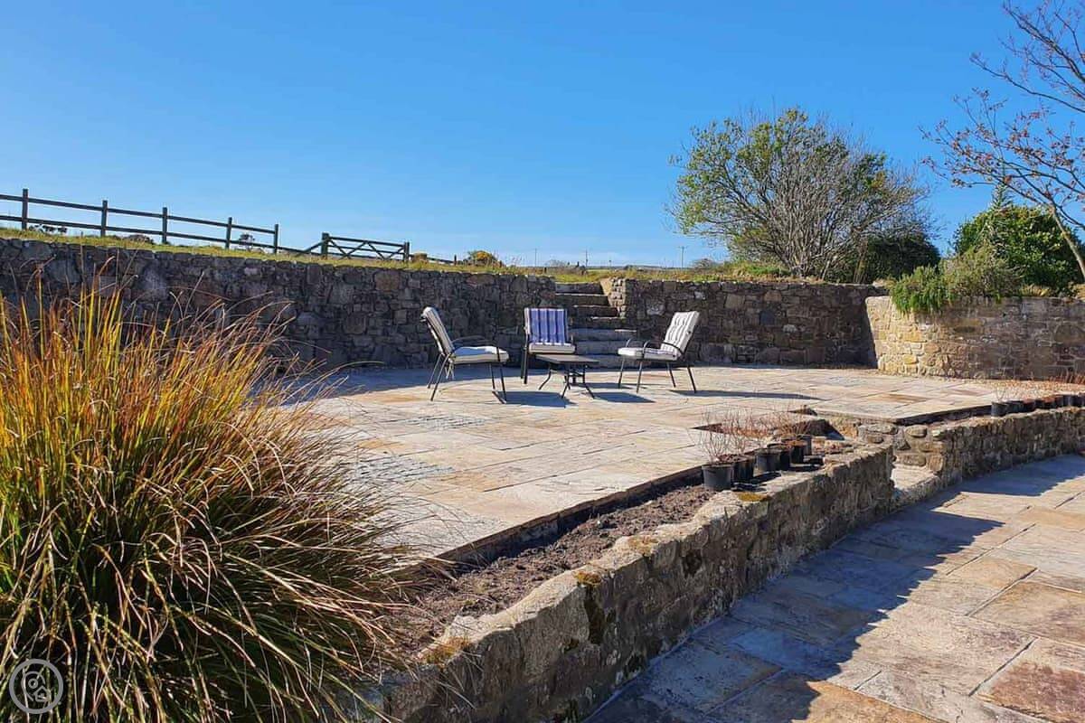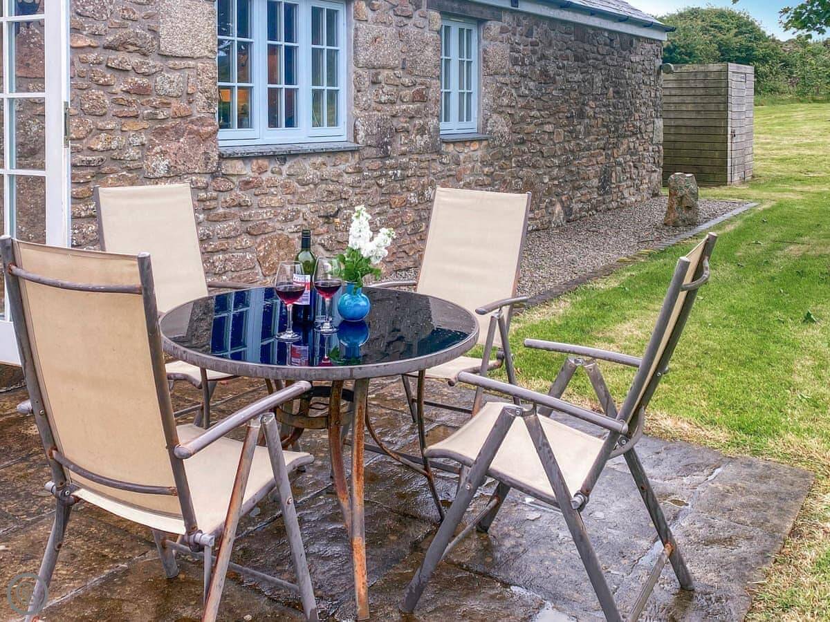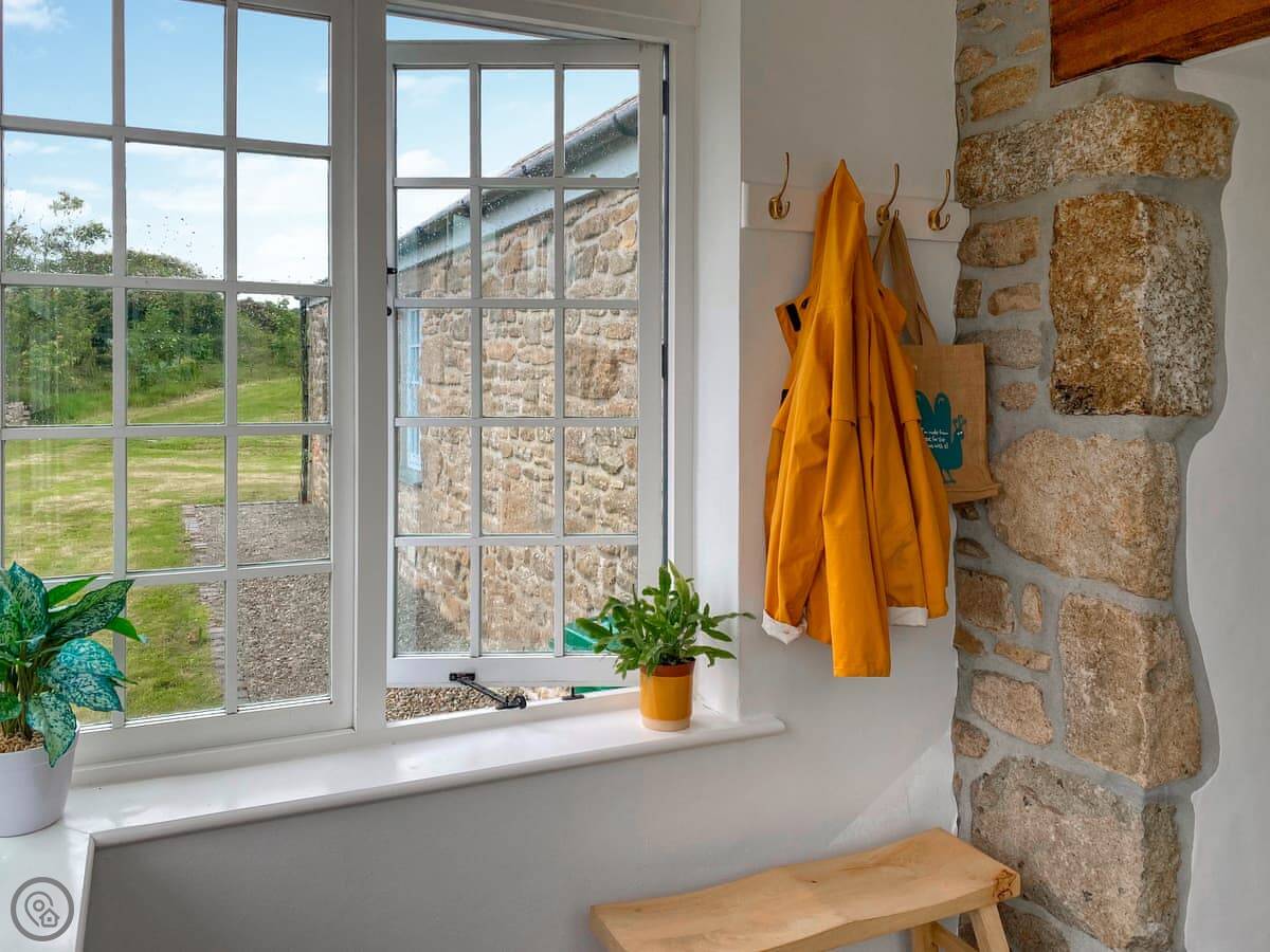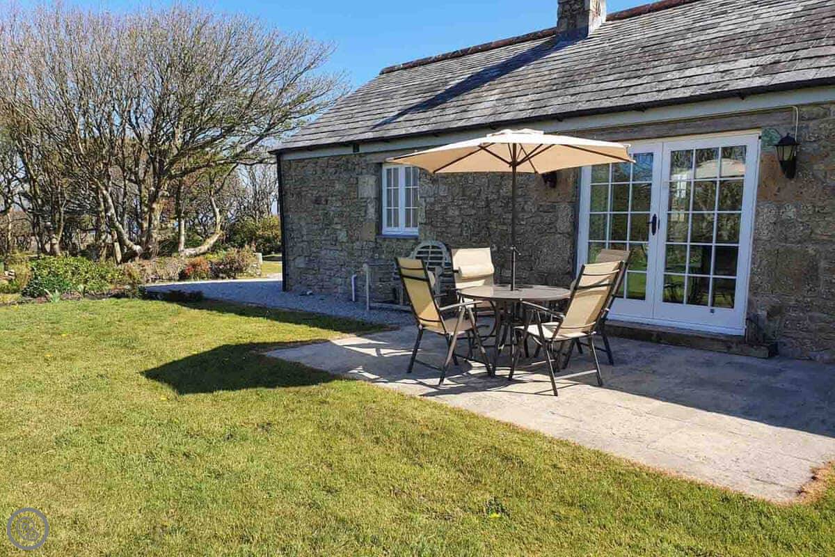 Stone Farm Cottage is in Bojewyan, just outside Pendeen. It's a granite cottage, very solid, looking out over fields with old tin mine engine houses in them. From the top of the garden you can see the sea.