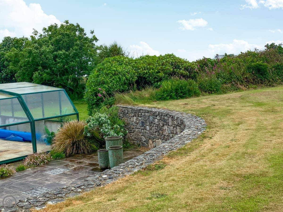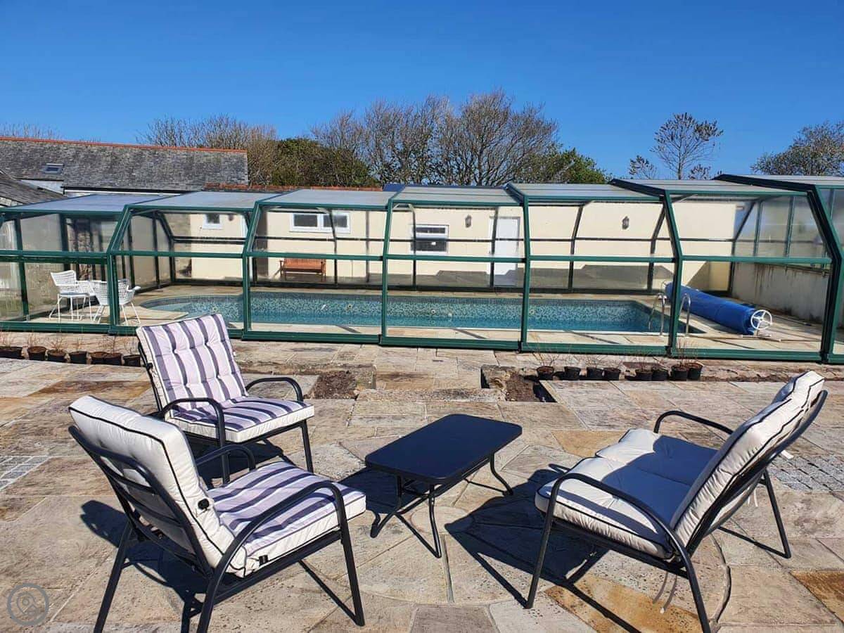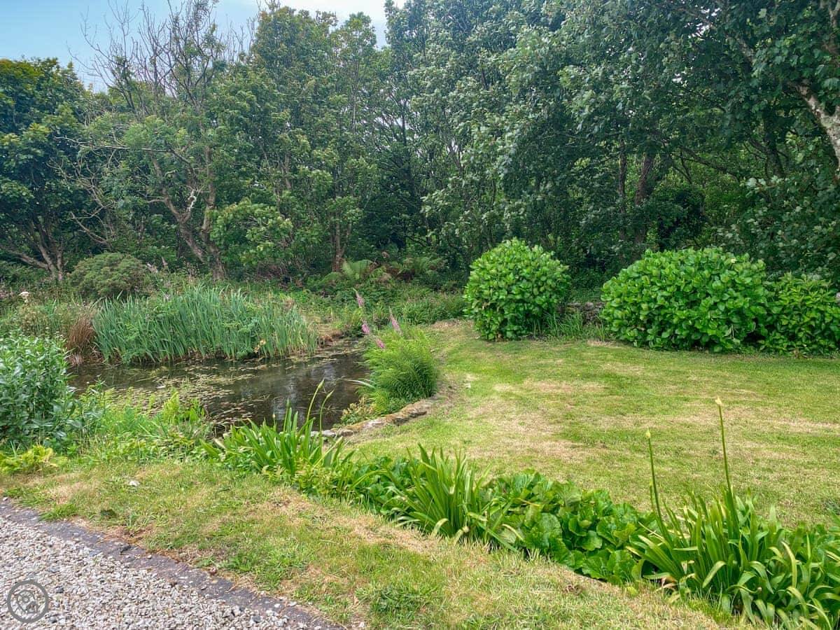 Outside, there's a garden with a little stream running through it, a patio, and a BBQ. You also get use of a shared, covered swimming pool. It's heated and available from the beginning of June to the beginning of September.