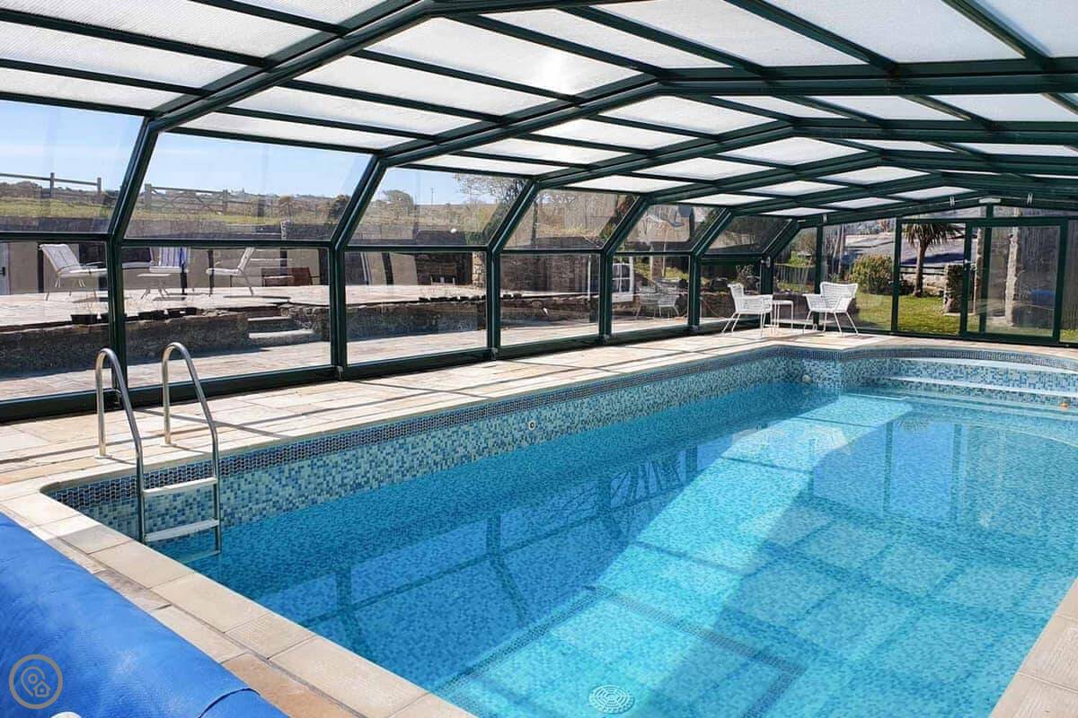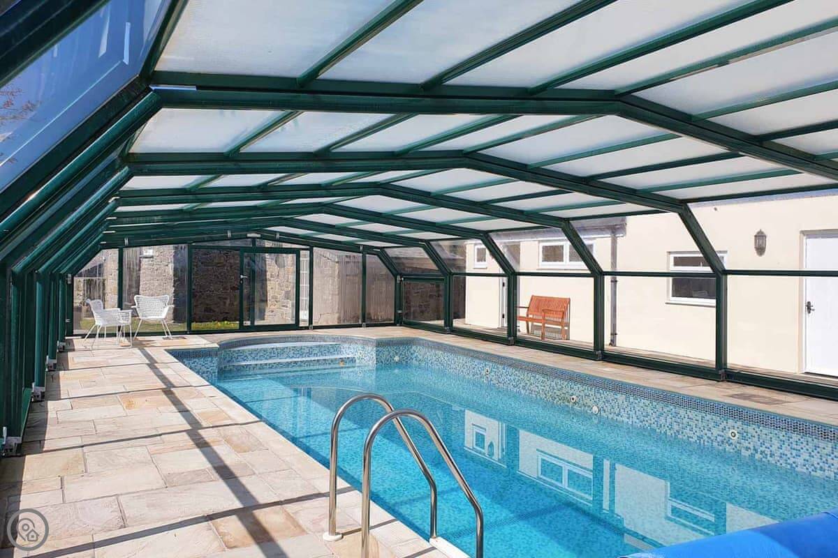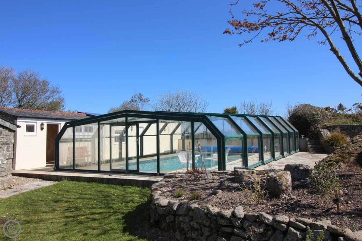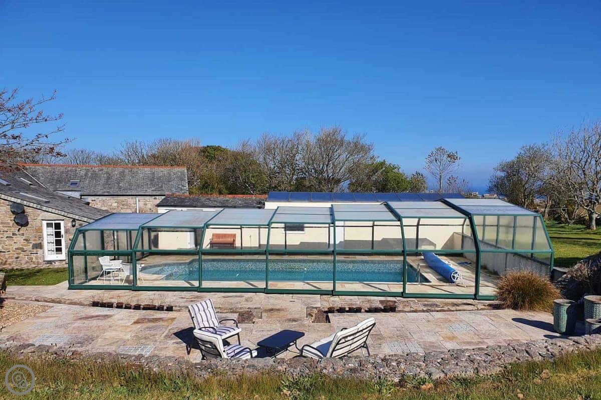 Outside, there's a garden with a little stream running through it, a patio, and a BBQ. You also get use of a shared, covered swimming pool. It's heated and available from the beginning of June to the beginning of September.