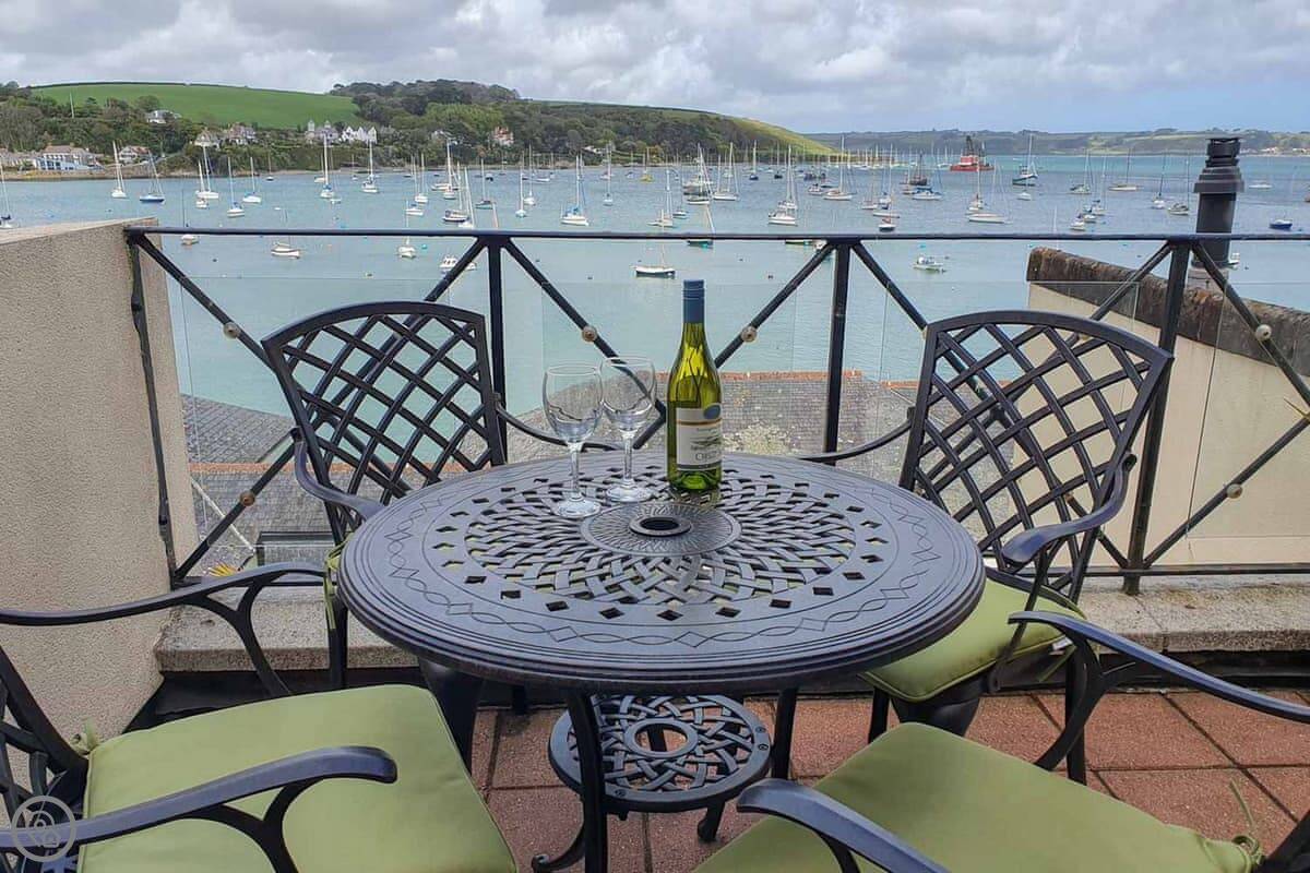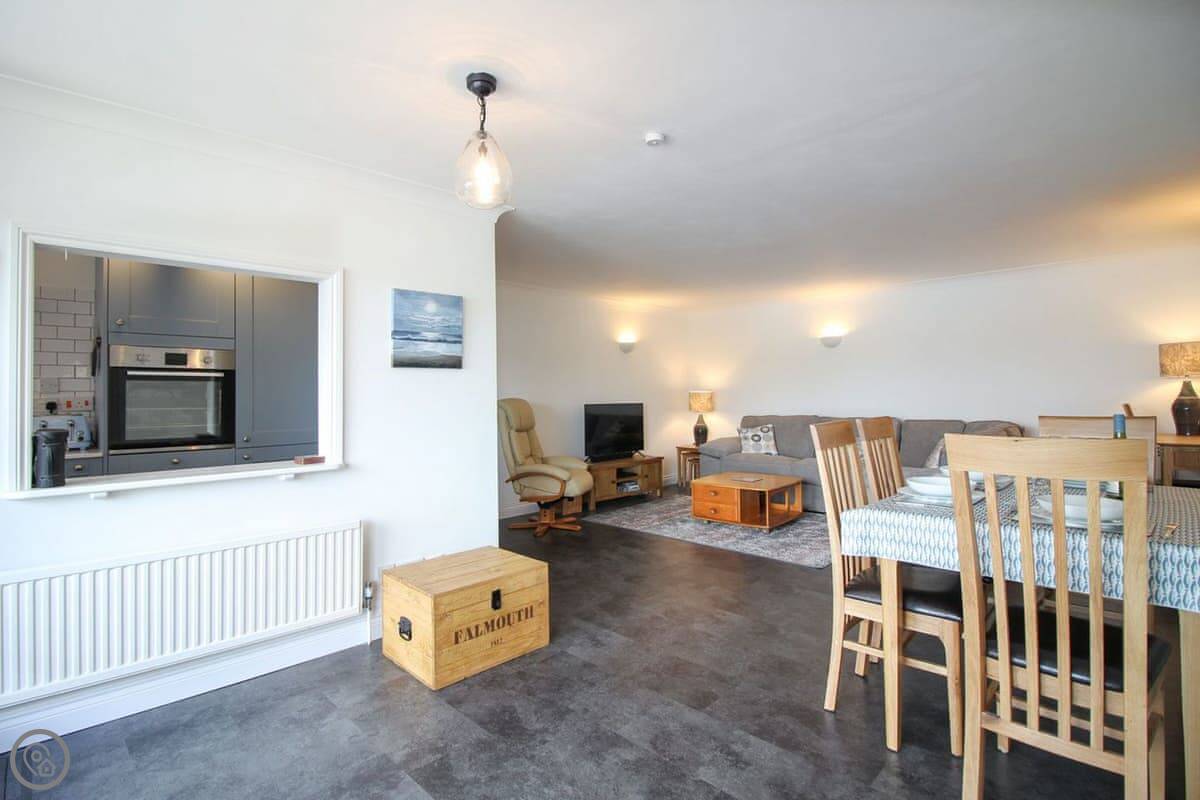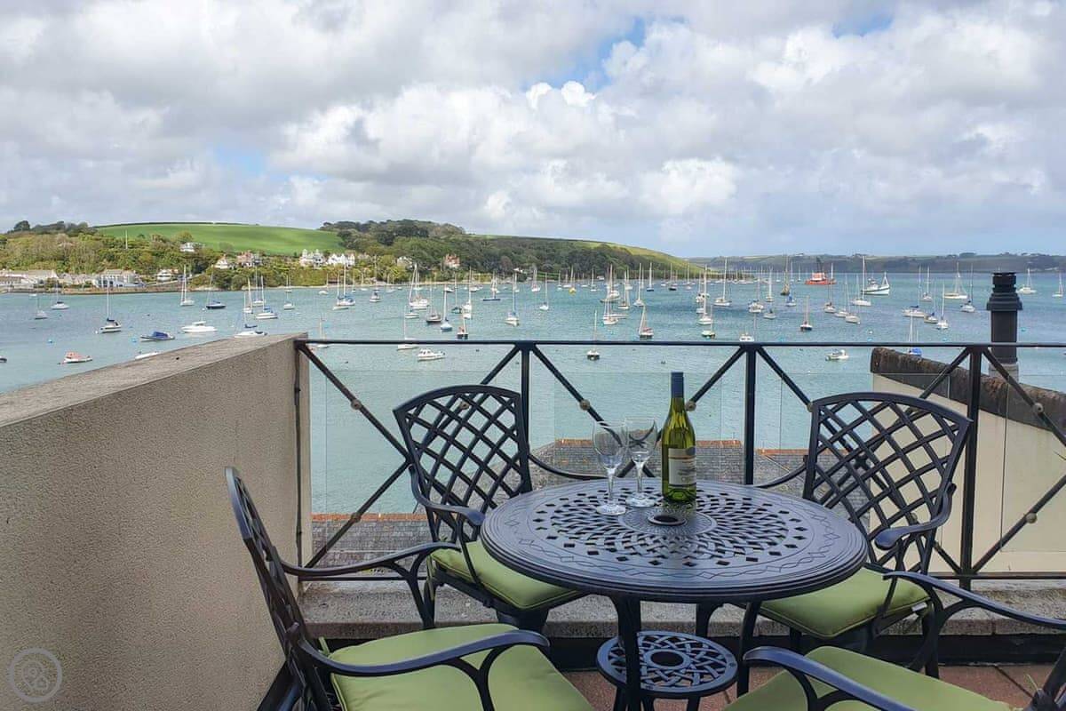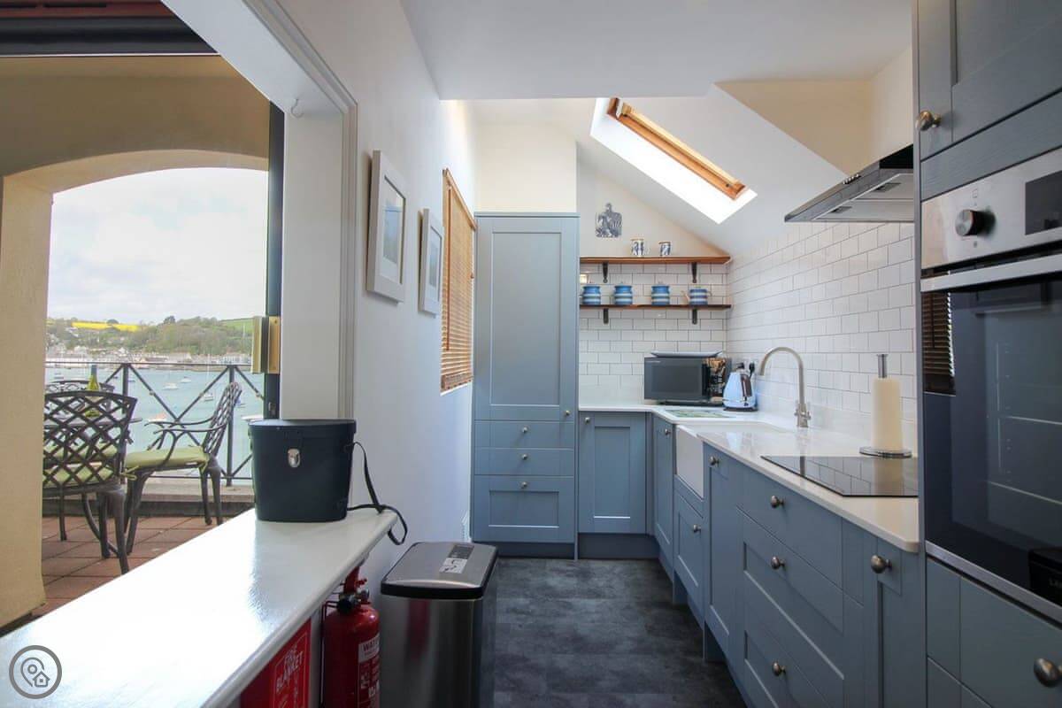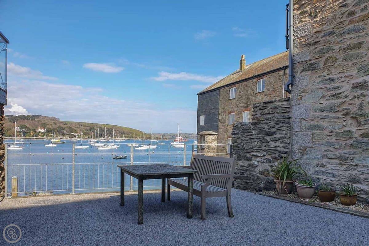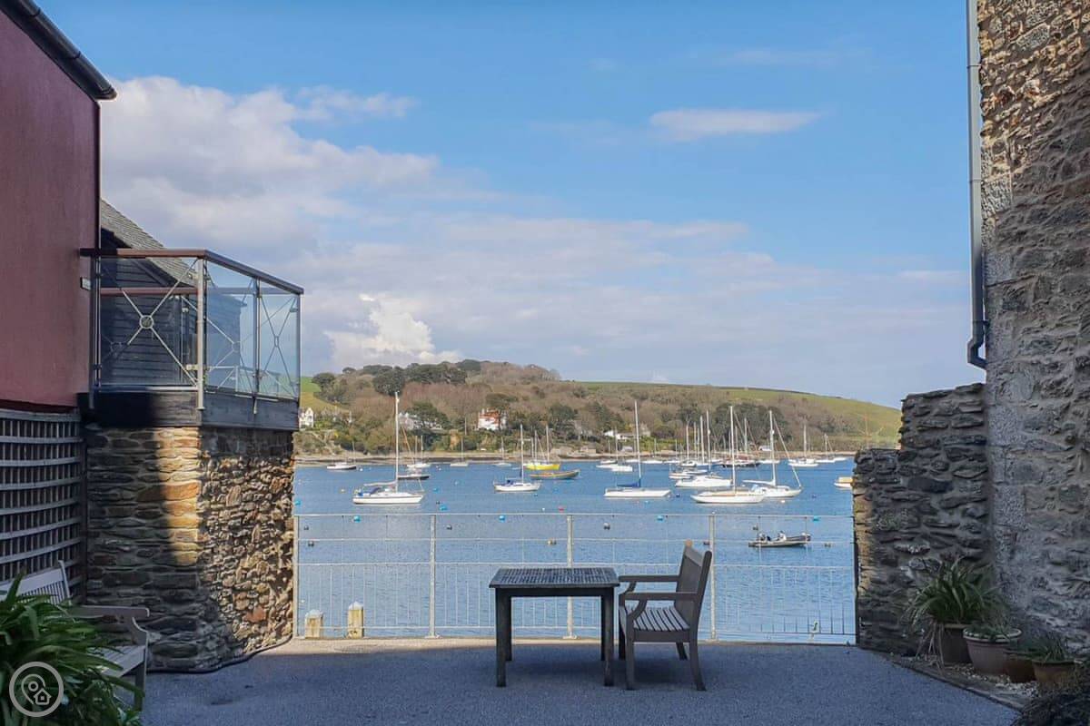 Aggetts Dawn is all on one level, although there are almost 40 steps up to the front door from the secure parking area and a similar number down from the High Street. The living/dining room and balcony take in the wonderful seascape from Flushing across Falmouth harbour, the third deepest natural harbour in the world, and on to the Roseland peninsula in the distance.