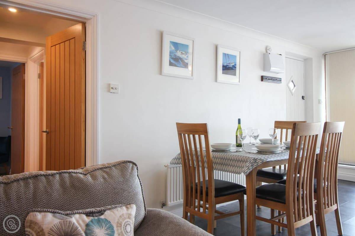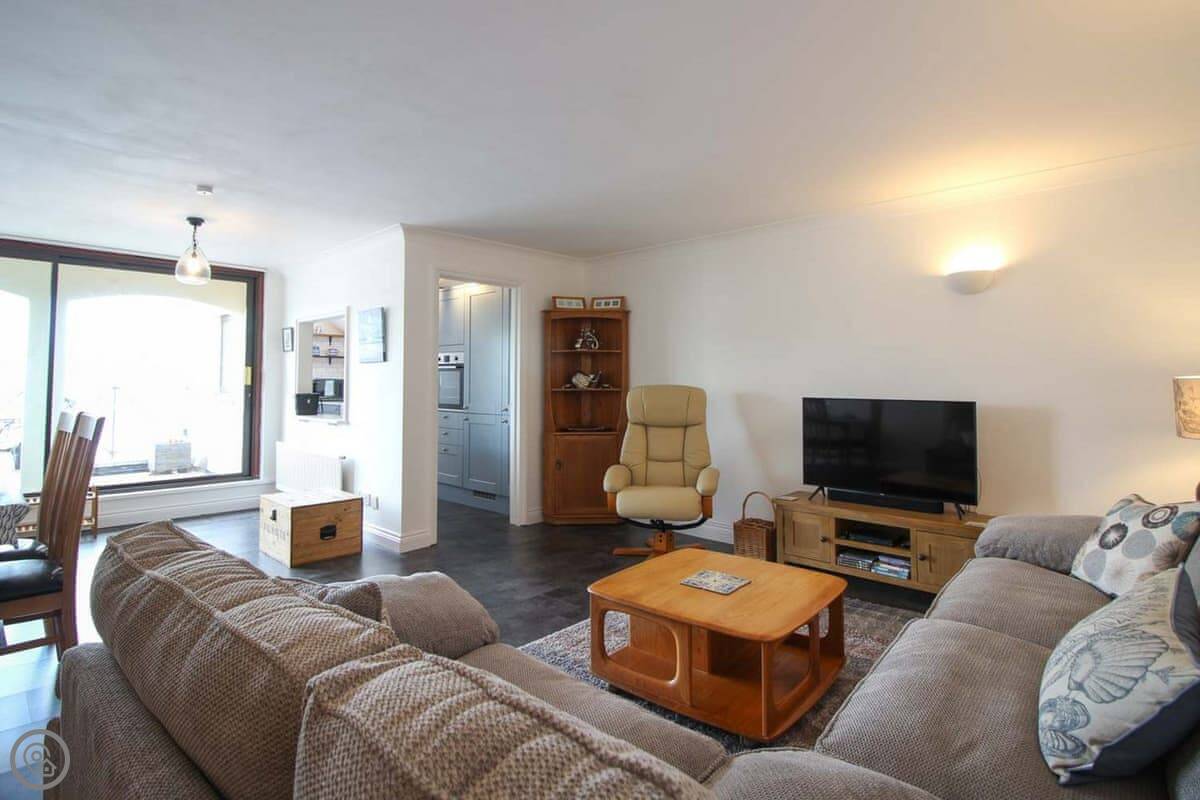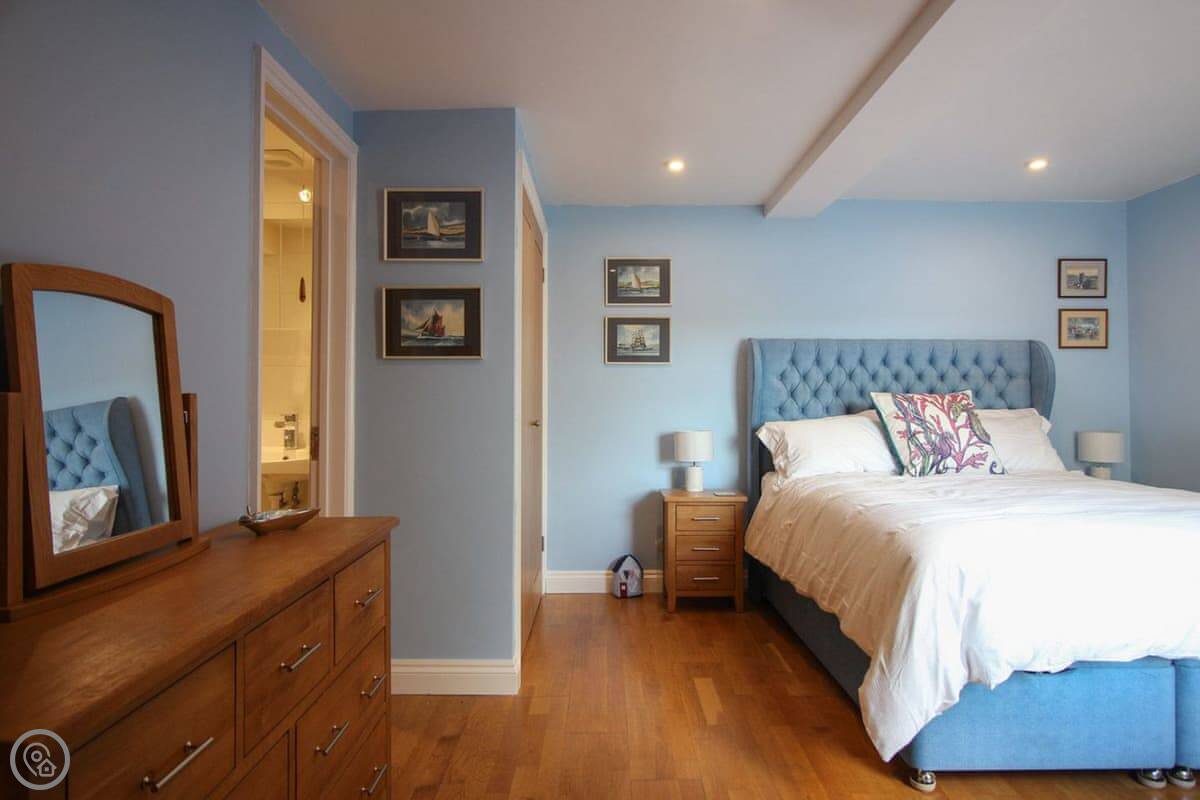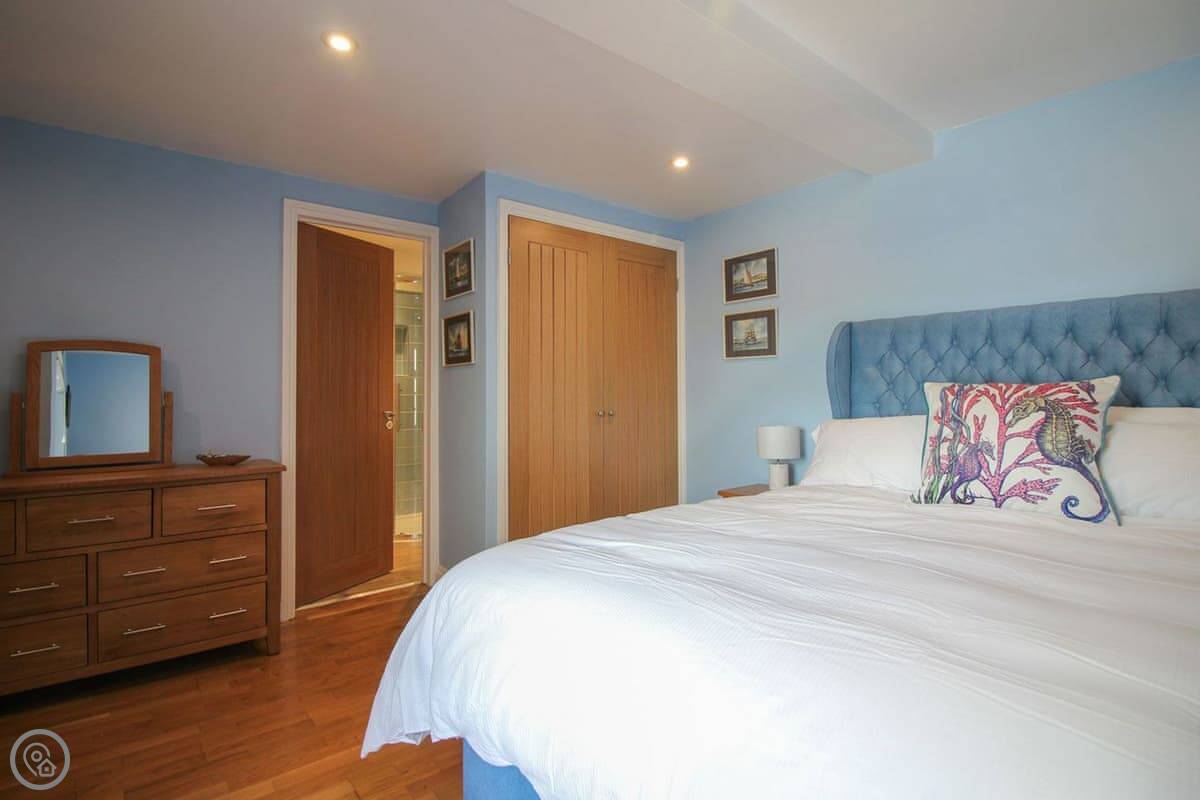 The well-equipped kitchen will be enjoyed by any budding chef on holiday. The apartment is presented to a high standard by the owner and offers comfortable accommodation for up to four guests in two bedrooms. There is a master bedroom with king size bed which has its own balcony along with an en-suite shower room, with the second bedroom having flexible twin zip and link beds which can be set up as a super king size bed on request. It is an ideal holiday home for a small family, friends, or two couples. Within the development there is small communal garden with seating overlooking the ever-changing inner harbour and private beach. Both this and the private slipway which is close by can be used by guests during their stay and is shared with other residents.