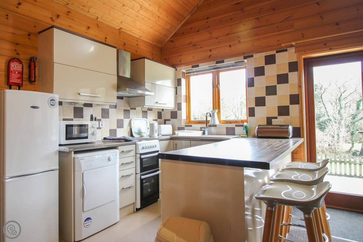 Trevarno is a bright and substantial Scandinavian style lodge with a modern contemporary feel. Perfect for families, two bedrooms, all spacious with a particular emphasis on children to make their stay as perfect as possible there is a spacious playroom fully stocked with a plethora of toys. A private veranda with views over the most picturesque valley, the river Camel trickles along bisecting the farm, and the myriad of animals, the dappled sunlight twinkles off the surface of the water, during the summer this is a perfect place for children to splash about. Should you wish to spend your holiday on-site there is plenty to do but the location is also superb to explore Cornwall.
