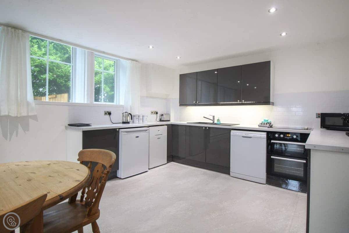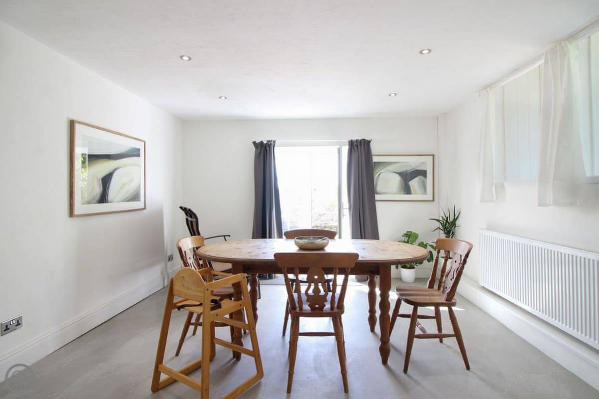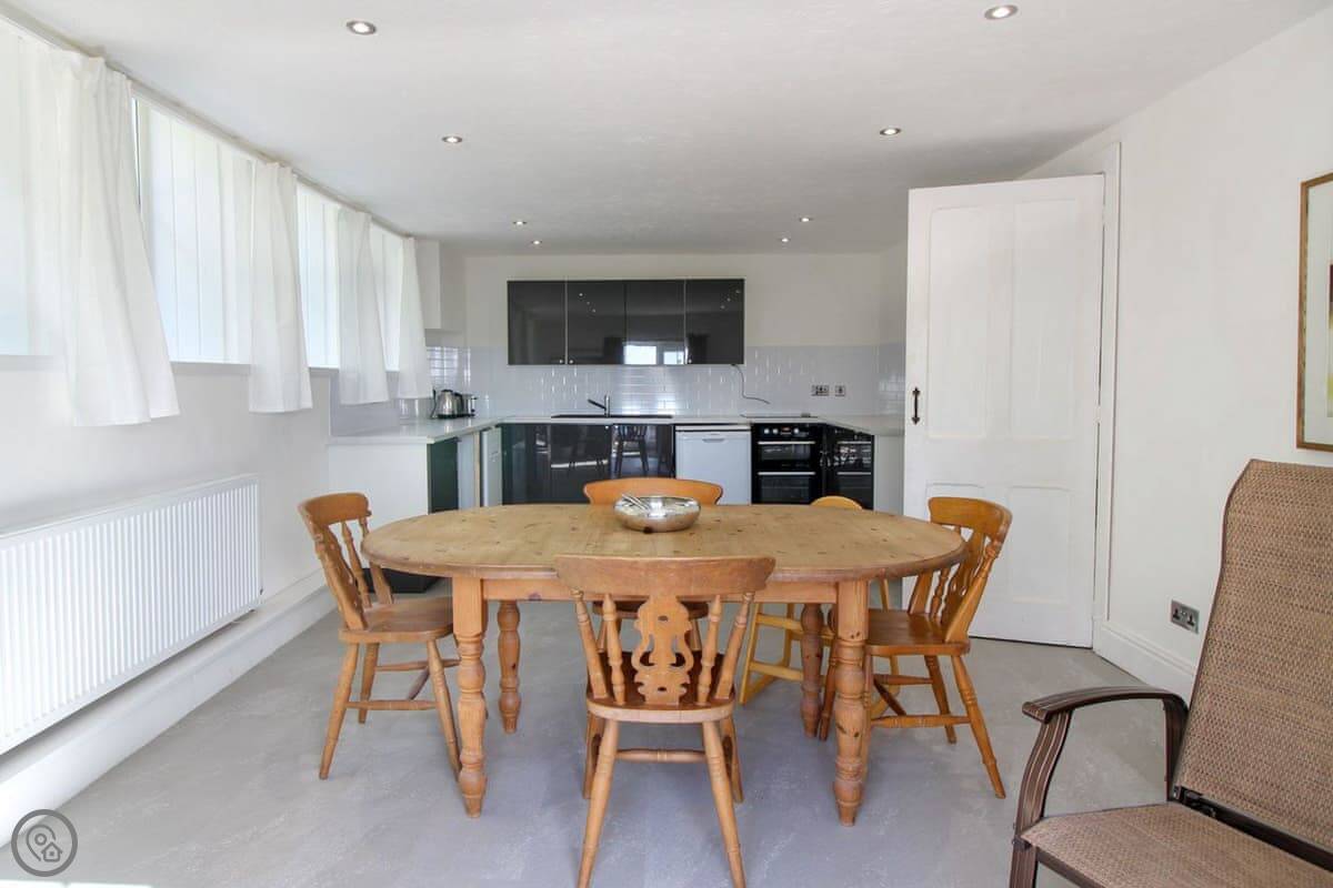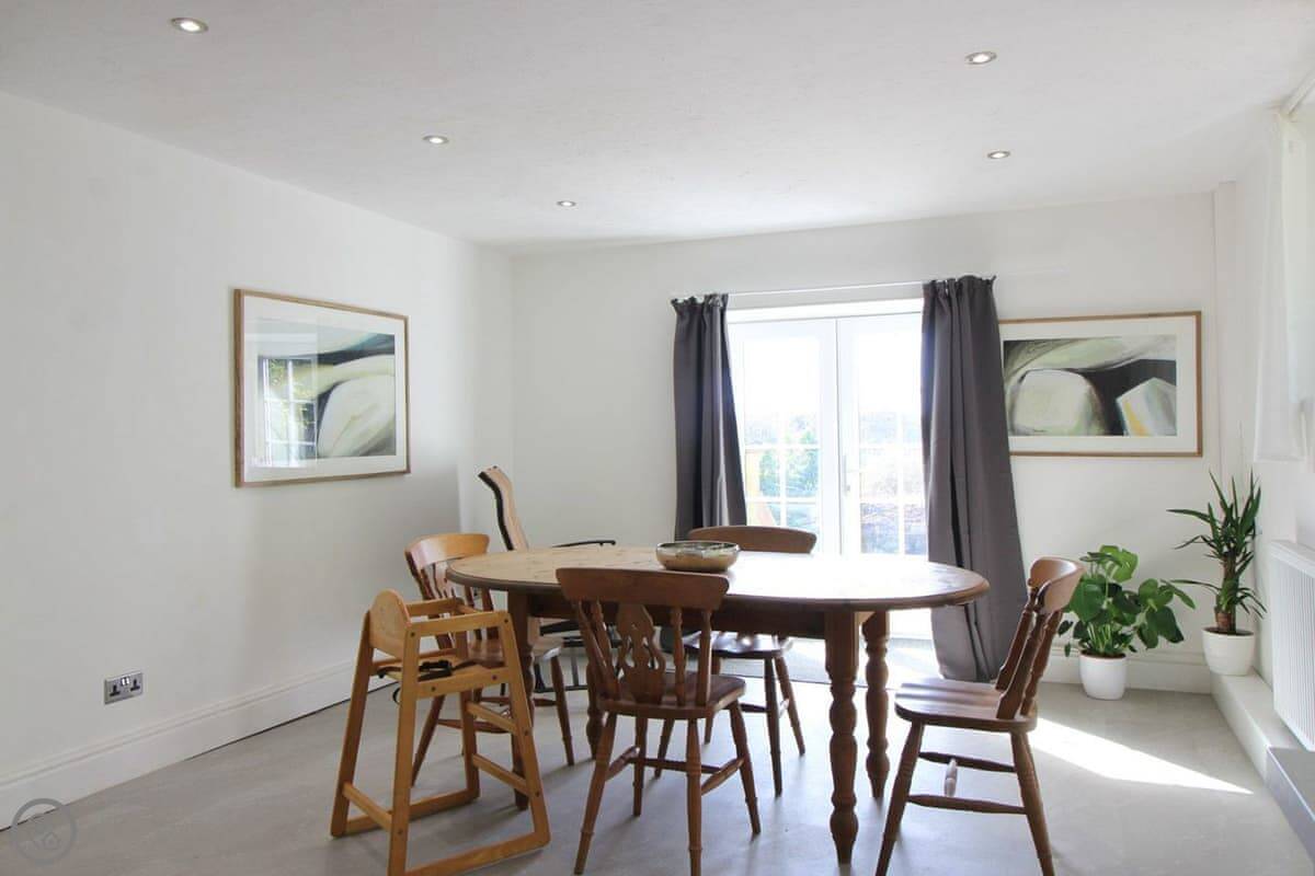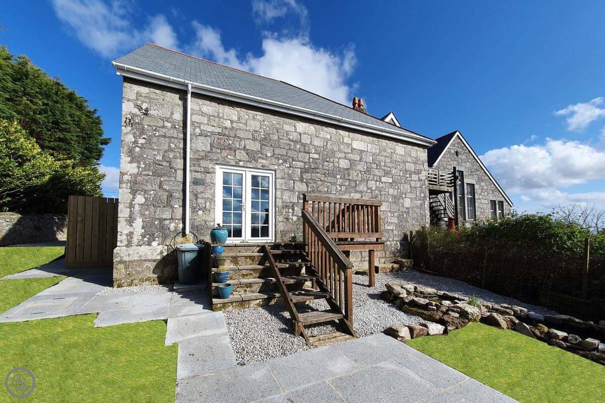 The Old School Rooms is a roomy, semi-detached character property with a large, double aspect kitchen dining room with French patio doors that open onto the garden. In the living room, a cosy electric fire in an impressive granite fireplace will warm you up after a day of exploring the walks on the north or south coasts, that are all within easy reach. A double and twin bedroom with low beams and a very spacious bathroom with a separate shower ensures a comfortable stay in this delightful cottage. The cottage is dog friendly and a superb spot for many varied walks.
