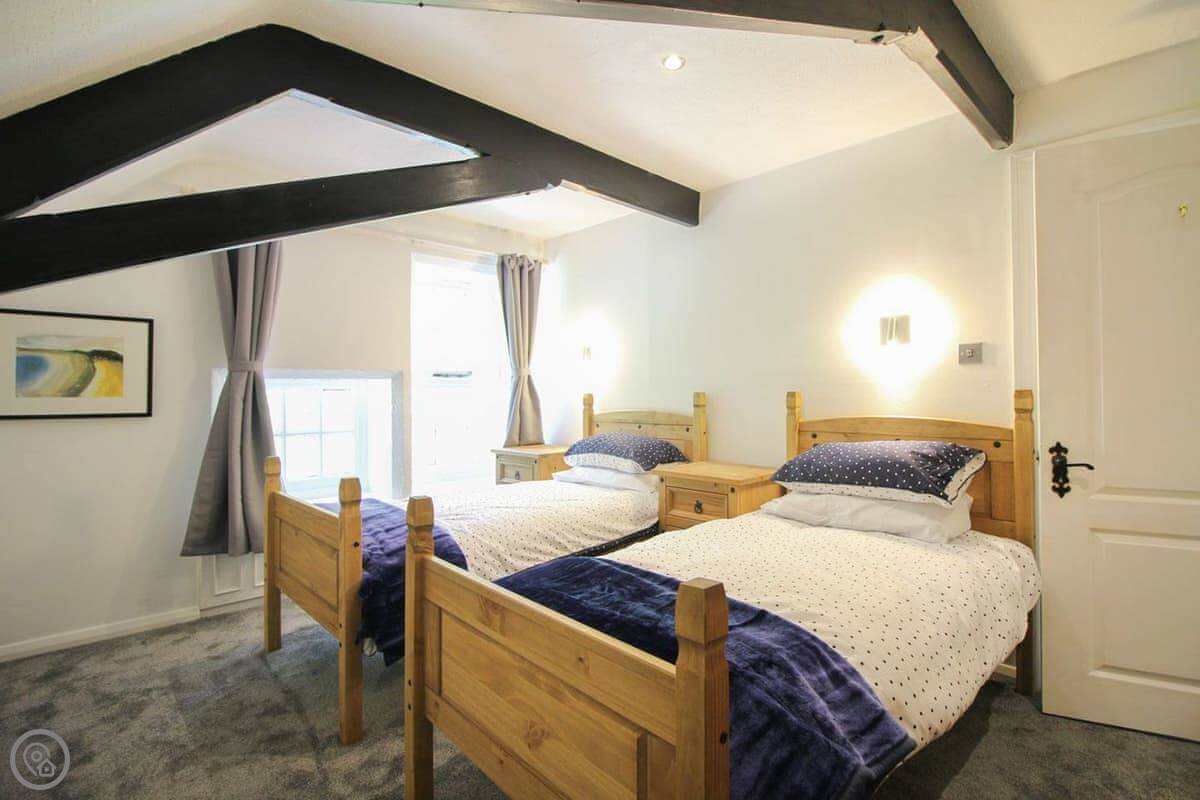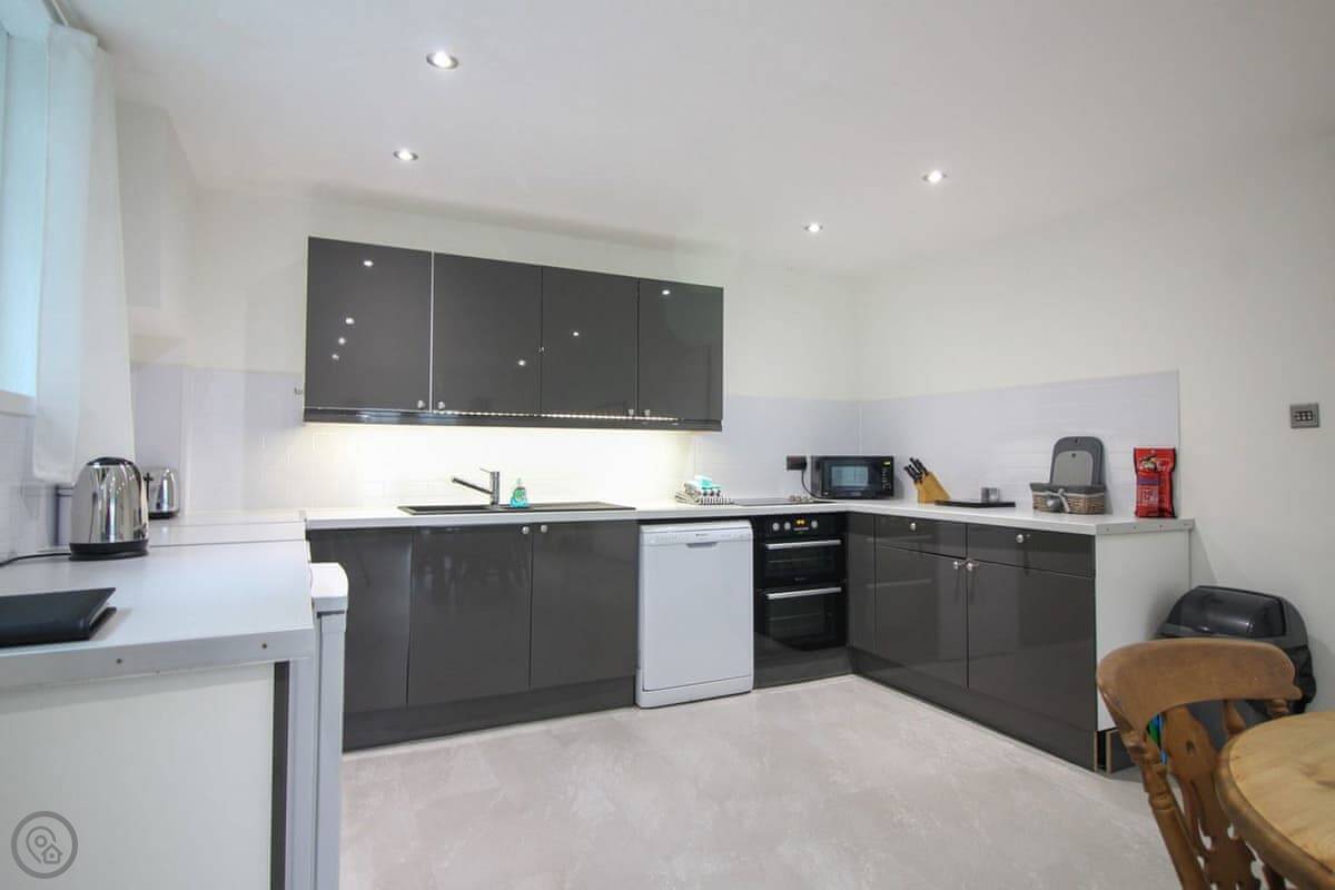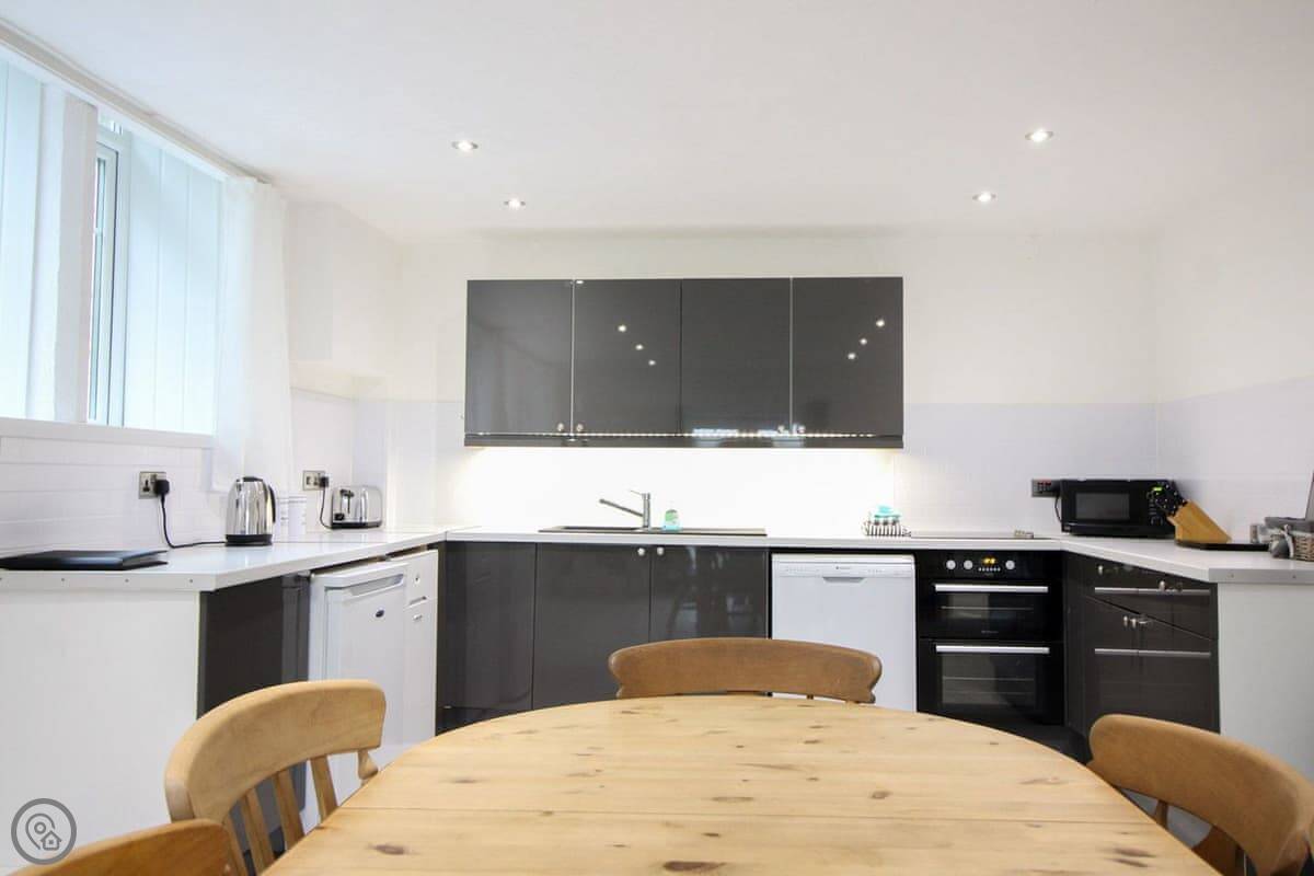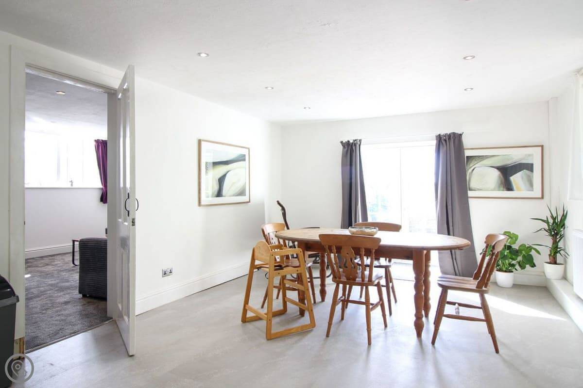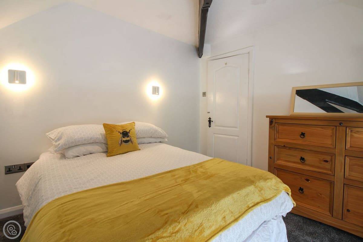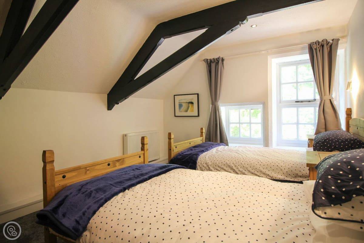 The Old School Rooms is a roomy, semi-detached character property with a large, double aspect kitchen dining room with French patio doors that open onto the garden. In the living room, a cosy electric fire in an impressive granite fireplace will warm you up after a day of exploring the walks on the north or south coasts, that are all within easy reach. A double and twin bedroom with low beams and a very spacious bathroom with a separate shower ensures a comfortable stay in this delightful cottage. The cottage is dog friendly and a superb spot for many varied walks.