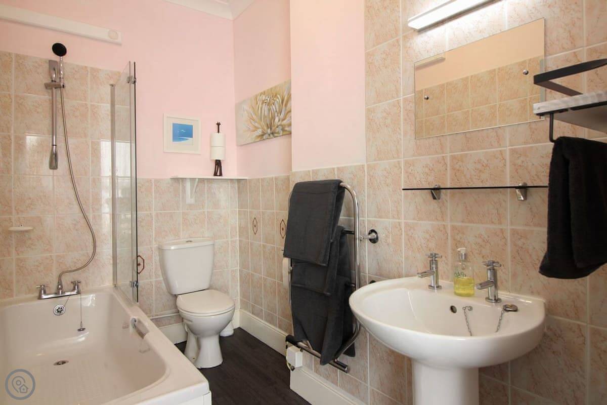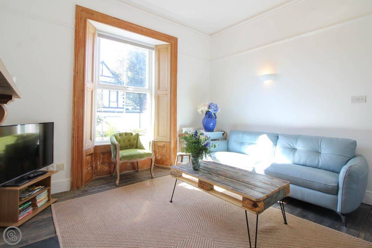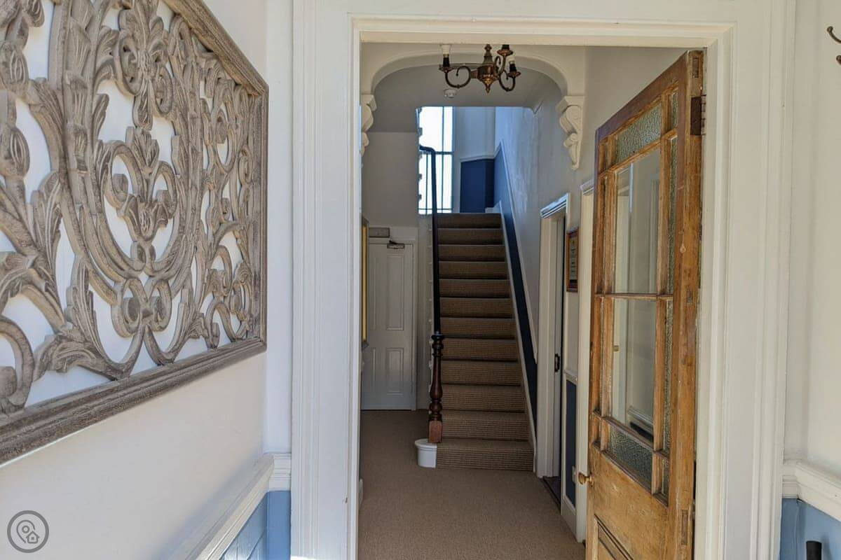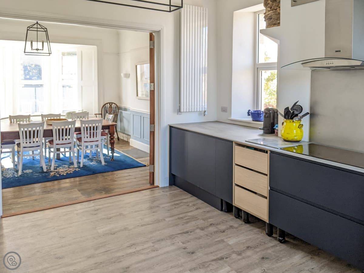 Melvill House is a bright, Victorian house that has been sympathetically converted to a self-catering holiday property. Six bedrooms sleeping up to thirteen people with various formats, all of which have en-suite facilities, great views from the bedrooms to the rear of the property down to Falmouth harbour and docks and over to the Roseland Peninsula in the distance. On the ground floor are two reception rooms so the guests’ age groups can be segregated if required, both with beautiful decor, a large dining room with bay window, and a very well-equipped kitchen with ample capacity to cook for larger family groups.