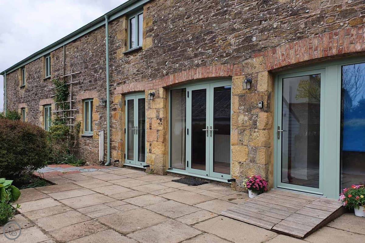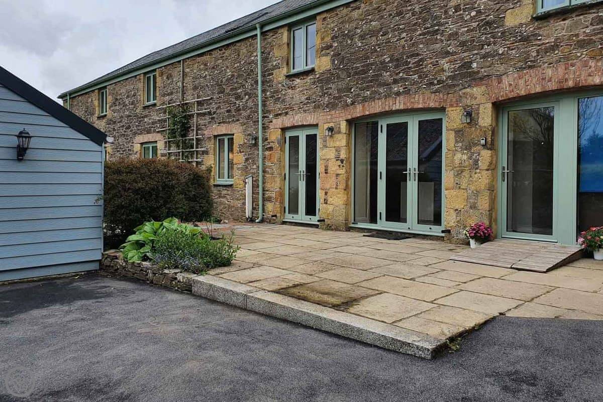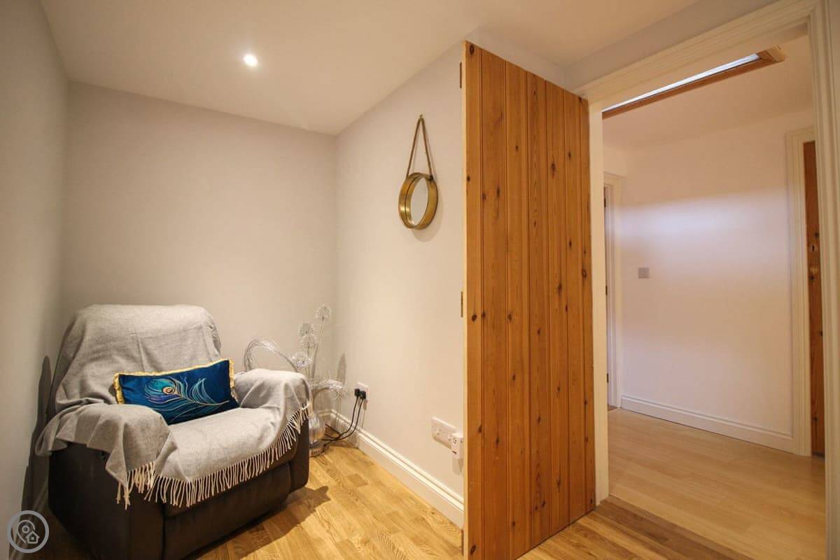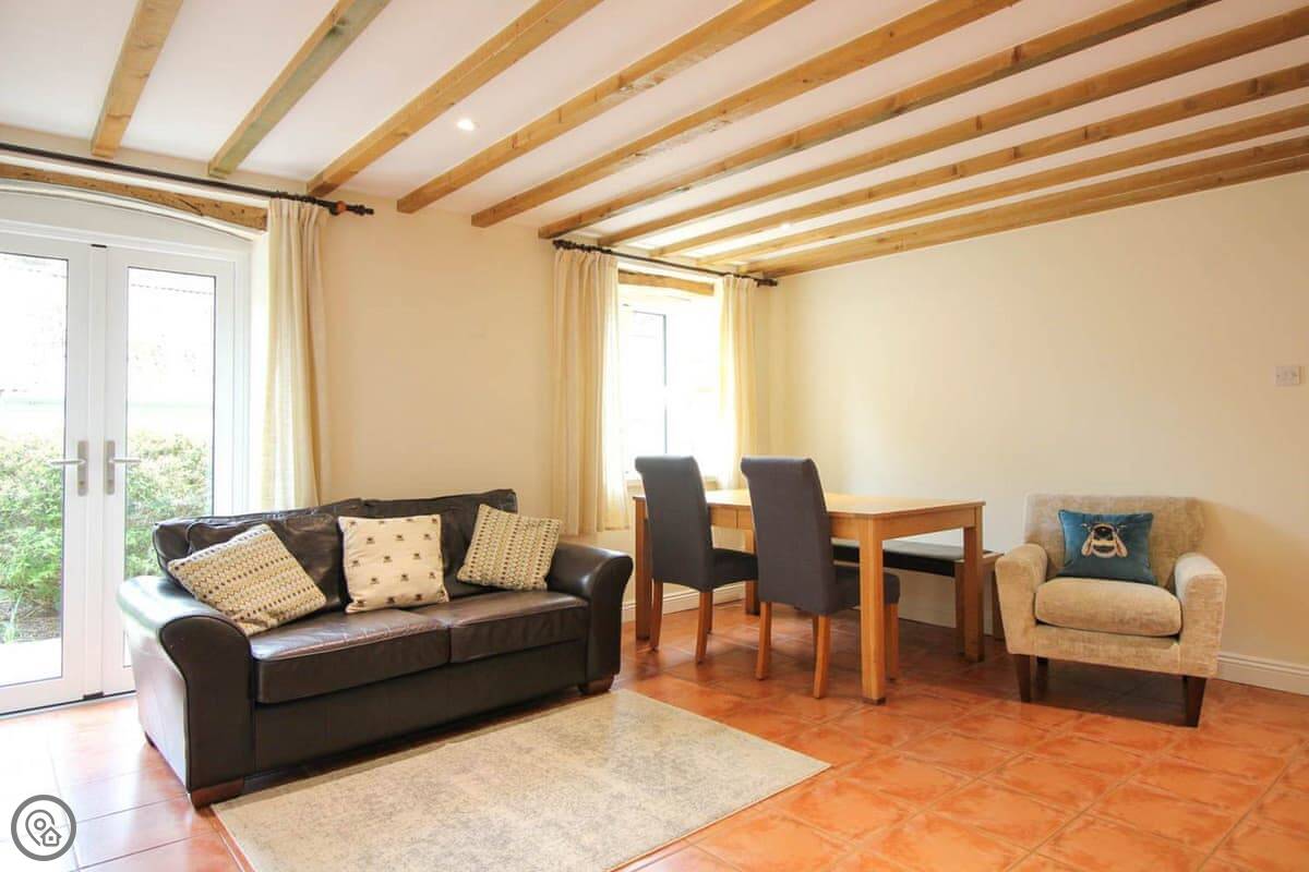 A couple of things. It's ground floor and the entrance is step-free, but the bathroom isn't specifically adapted, so it might suit someone with limited mobility but it's not a full accessible property. And because it's a conversion, the ceiling is the old barn floor for the flat above, so you do hear the family living their life up there. Normal stuff.