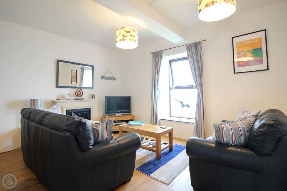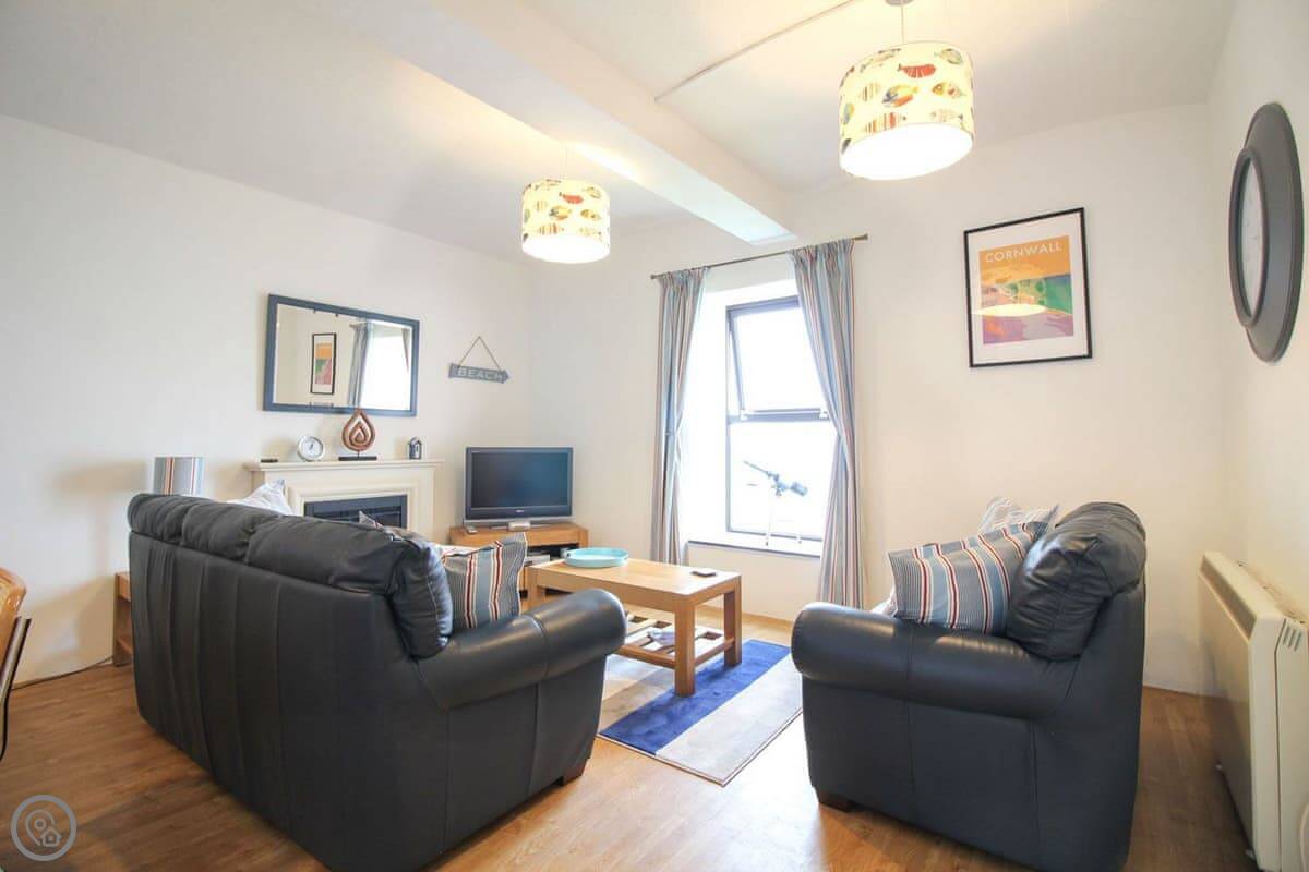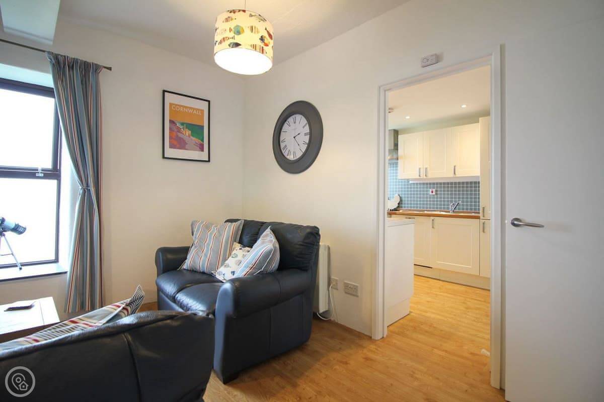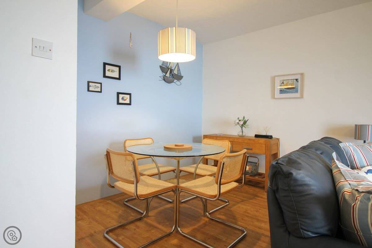 Mor View is in St Just, right on the west coast of Cornwall. It's a ground-floor apartment. The main thing, honestly, is the view. The living room, kitchen, and dining area are all one open space, and they all look straight out over the Atlantic.