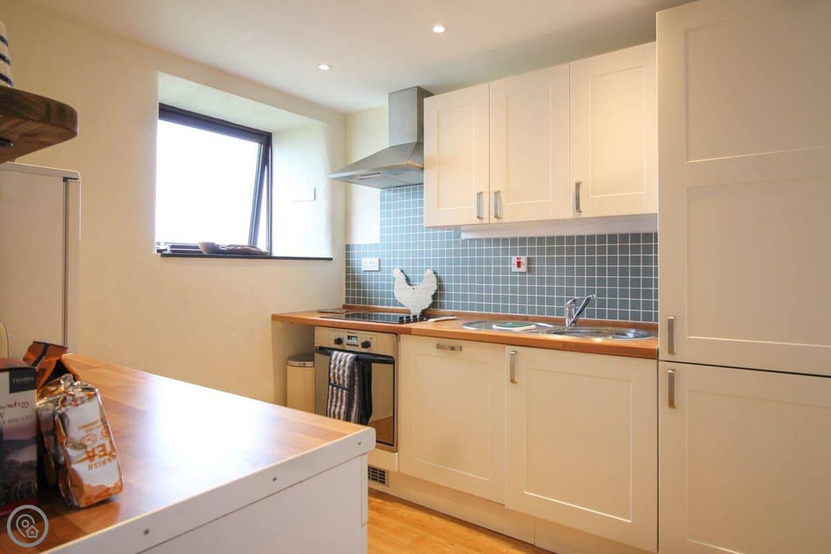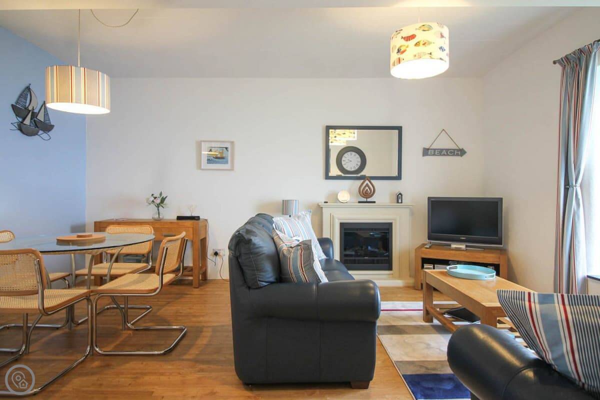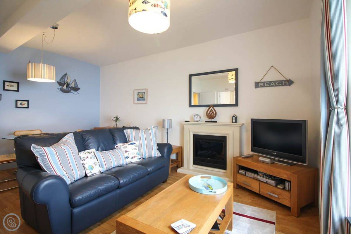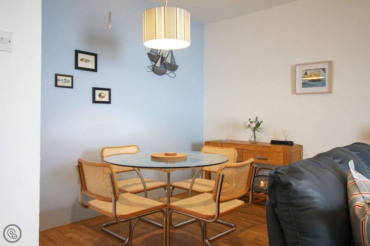 Mor View is in St Just, right on the west coast of Cornwall. It's a ground-floor apartment. The main thing, honestly, is the view. The living room, kitchen, and dining area are all one open space, and they all look straight out over the Atlantic.