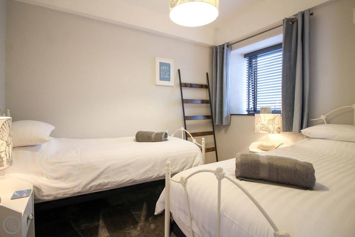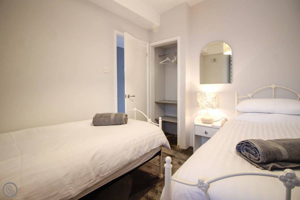 It sleeps four. Two bedrooms, one bathroom. The rating is 4 Star, so it's comfortable and well-equipped. It has its own parking space.