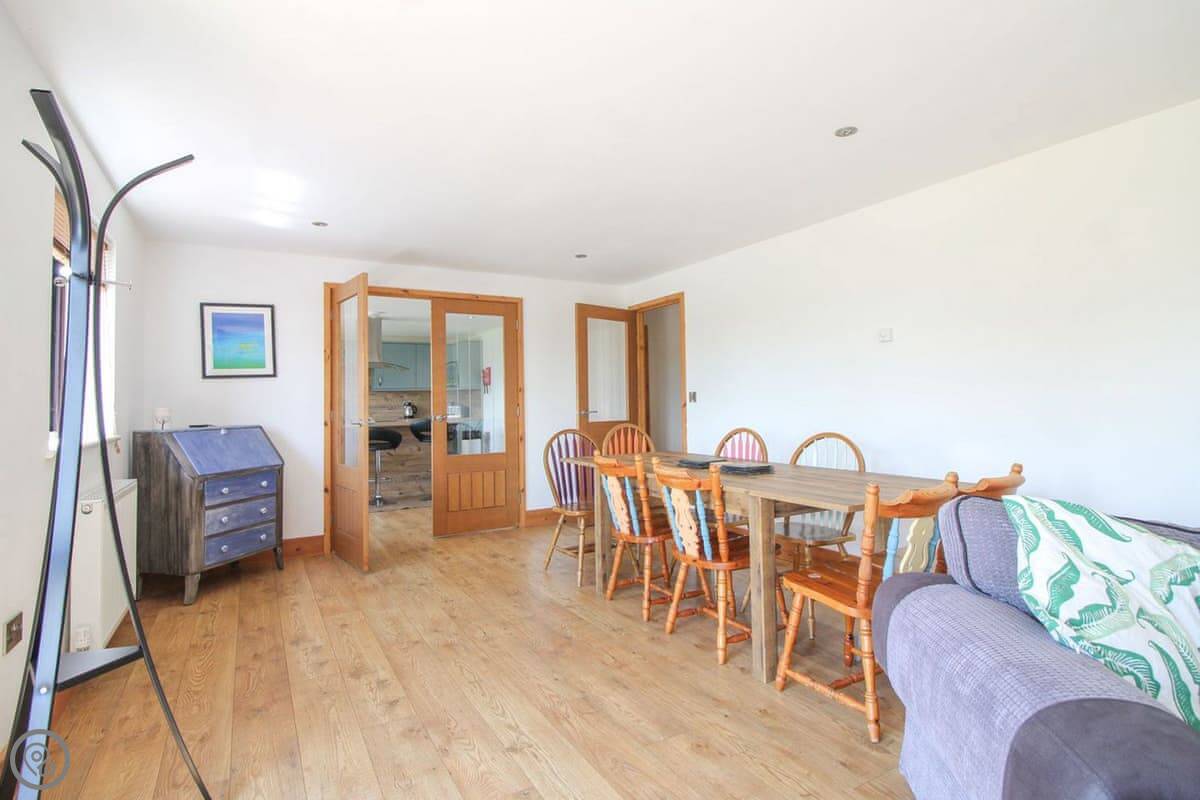 Cedar Creek is one of nine detached holiday cottages on this fabulous development on a south-facing hillside. All on ground floor level, the cottage has a modern, open plan kitchen and living area with four bedrooms, a family bathroom with toilet. The cottage benefits from its own private parking and a brilliant south facing patio offering extensive countryside views. In the winter, this well-constructed property has modern insulation and central heating to keep things really toasty! This development has a real sense of space with all the cottages being detached and independent from each other, which provides such a feeling of quality. A really superb place to stay. Beach 2 miles.